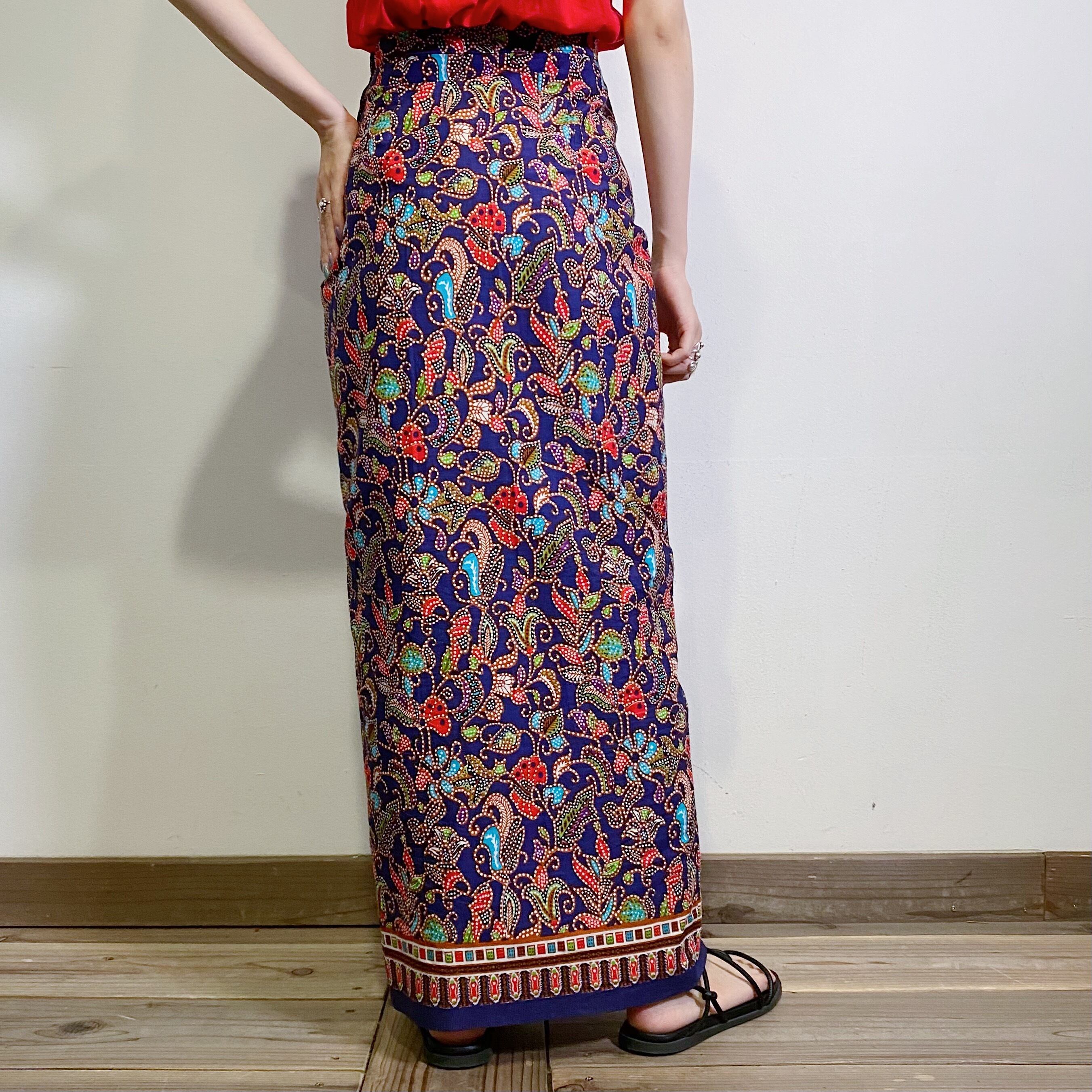 シンガポールの伝統的な模様に似ているボタニカルな柄が可愛い、60年代のロングスカートです。