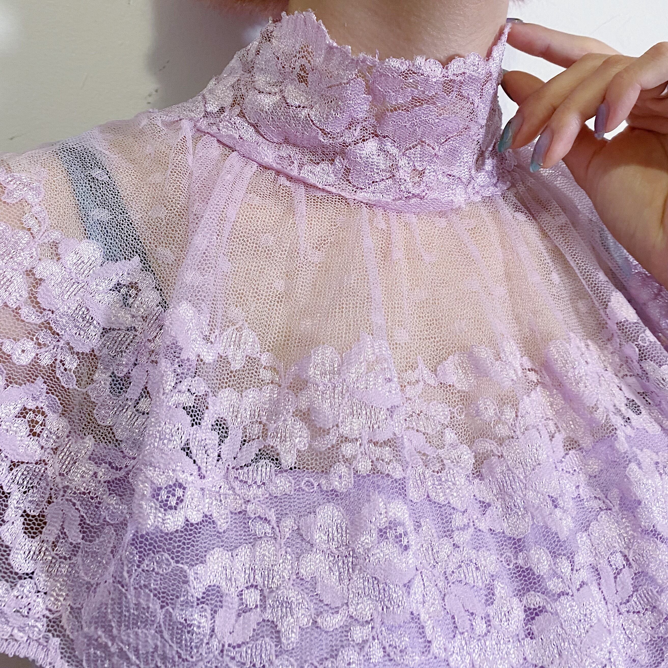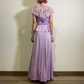 ラベンダーカラーにレースの切り替えがとっておきに可愛い、70年代ころのロングワンピースです。
