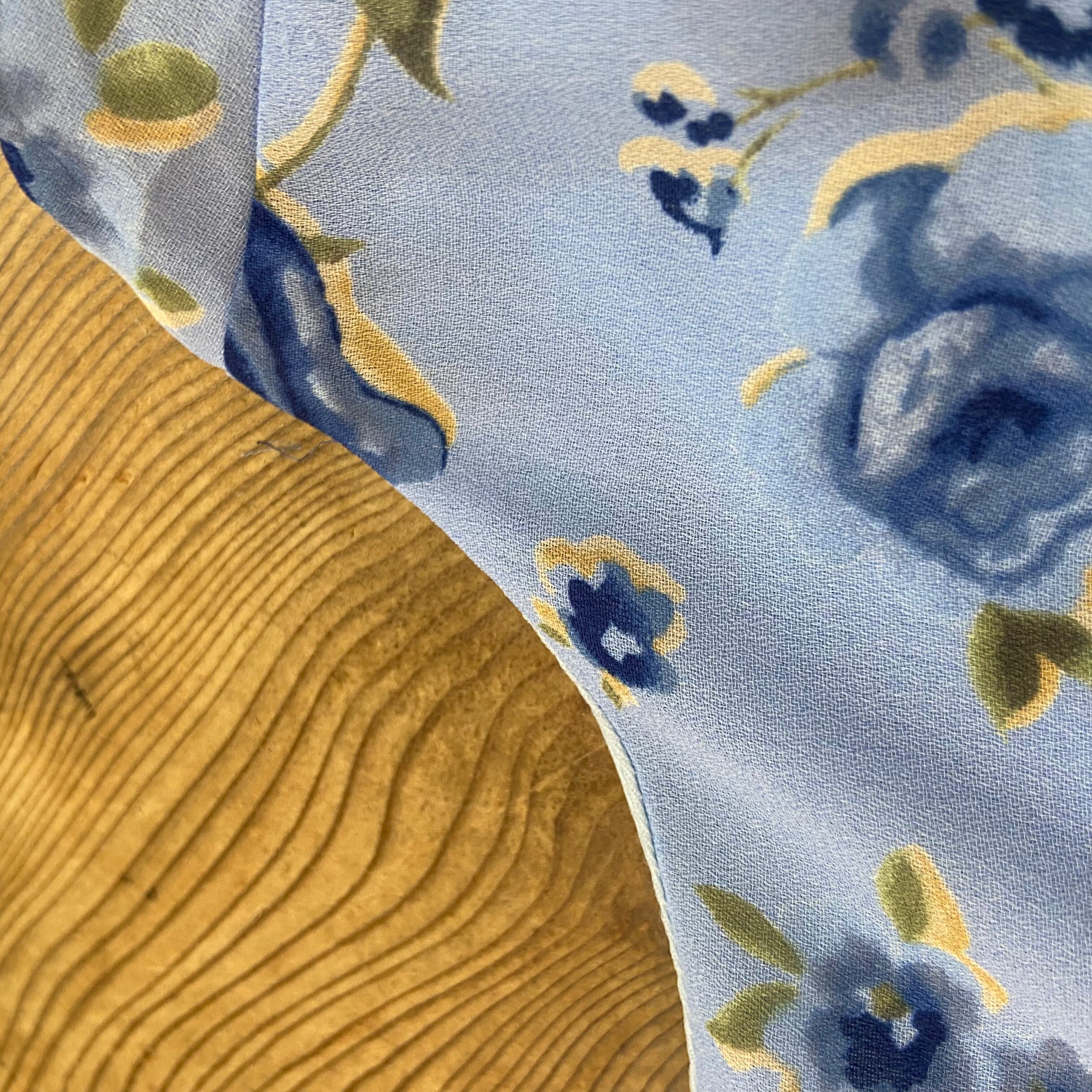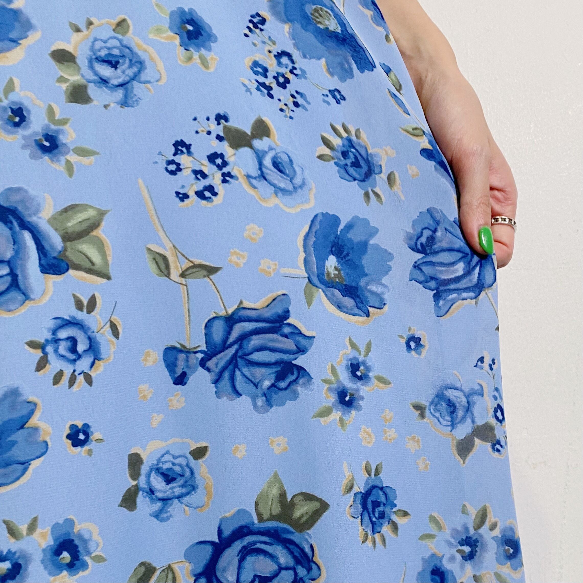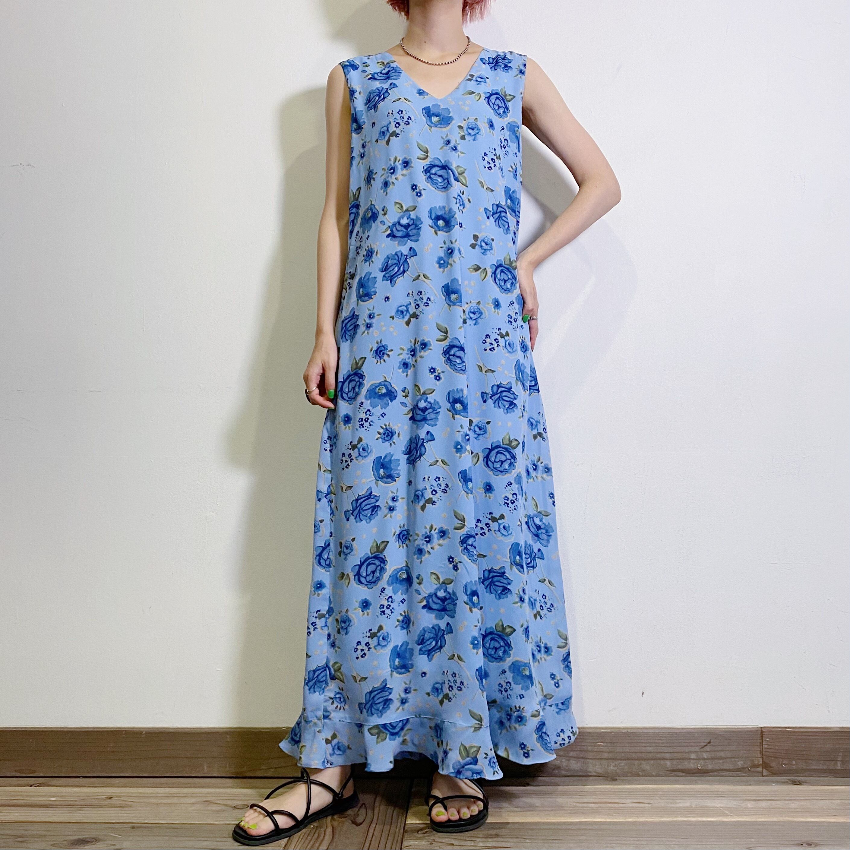 サックスブルーベースにブルーの花柄が可愛い、90年代のロングワンピースです。