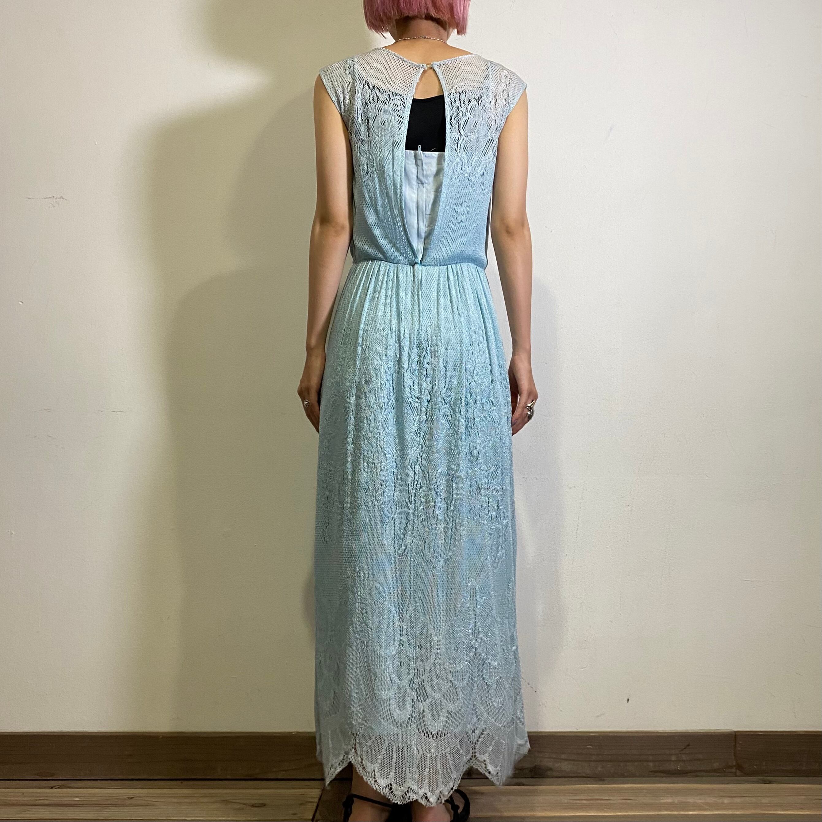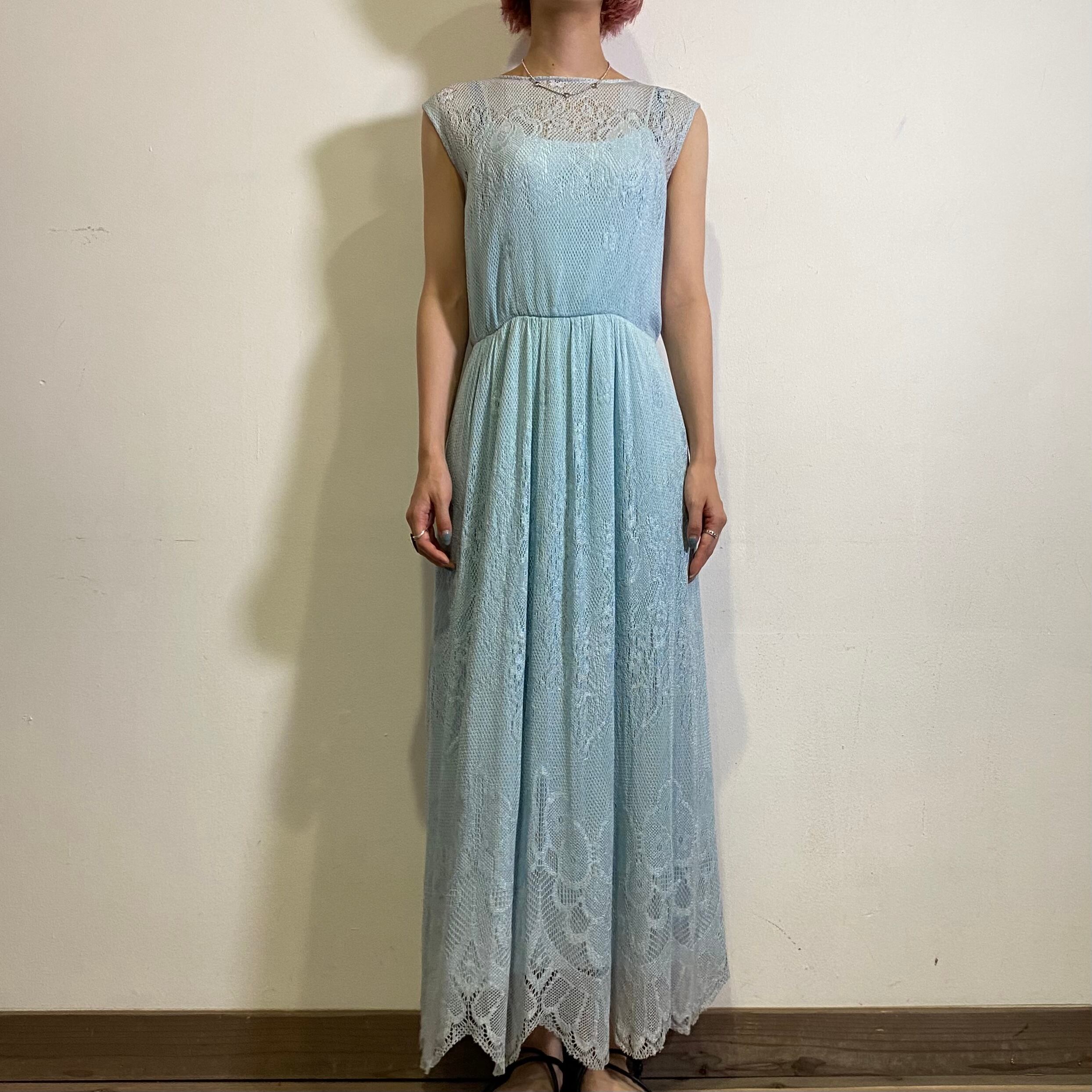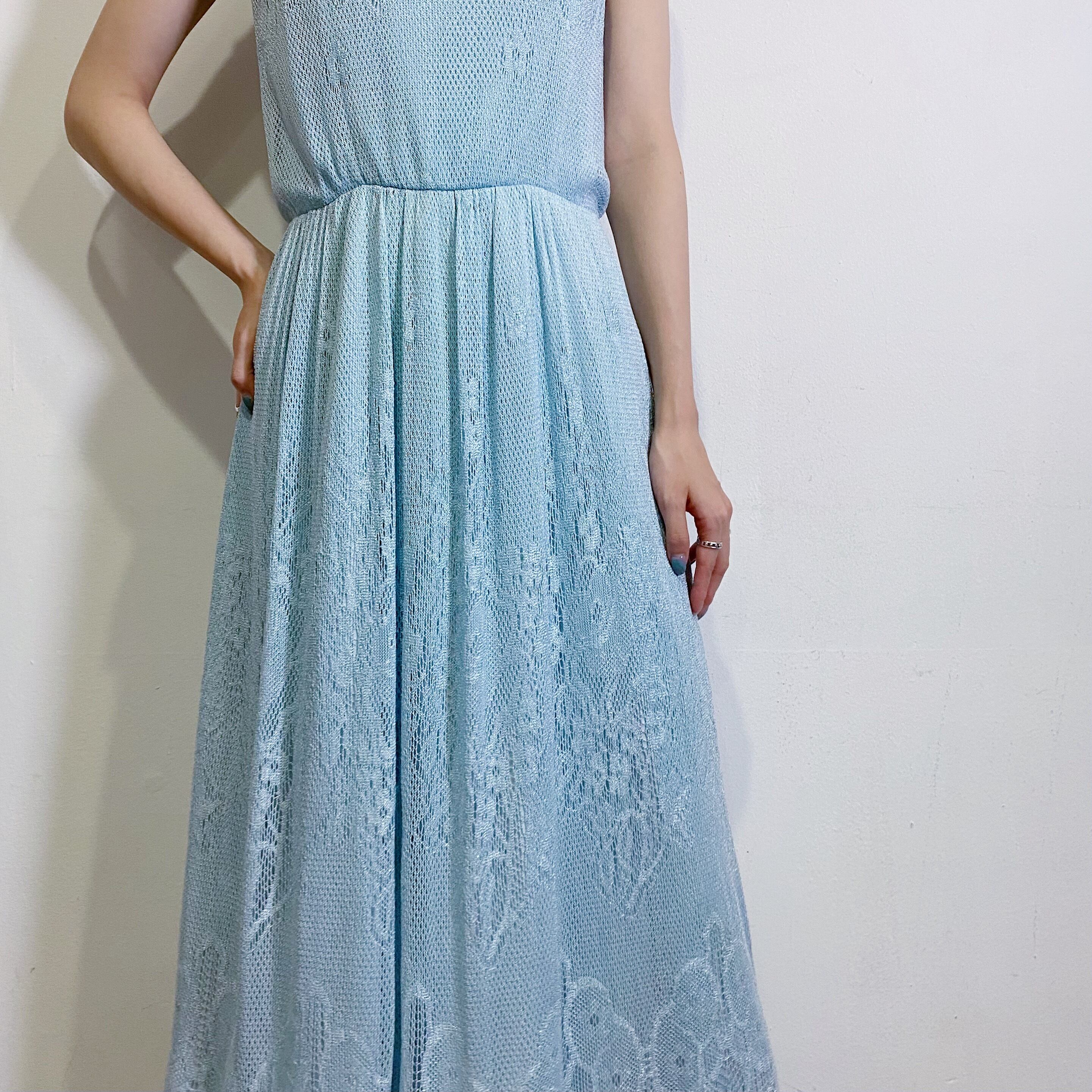 繊細な花模様の総レースが可愛い、70年代のノースリーブワンピースです。