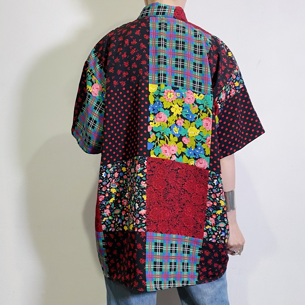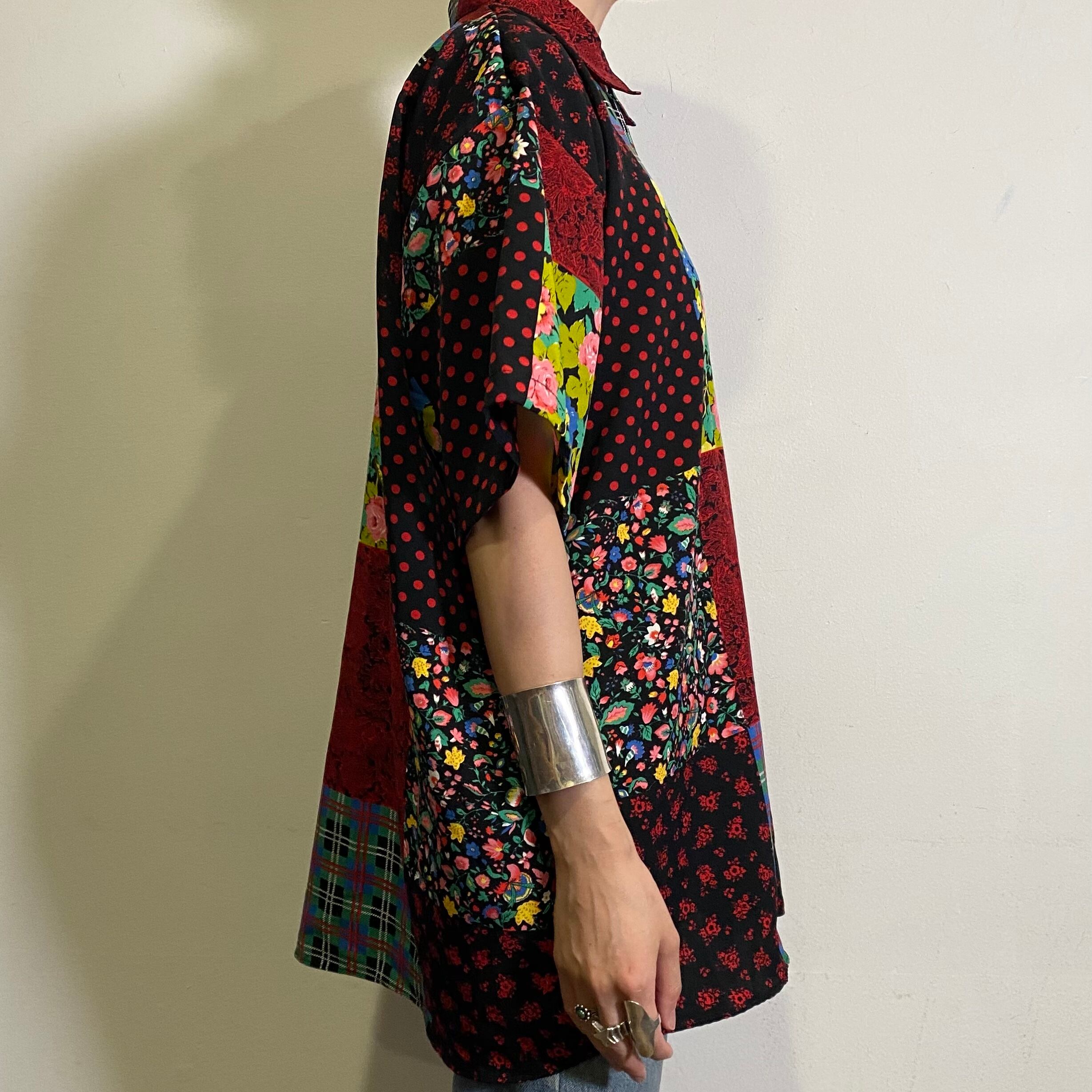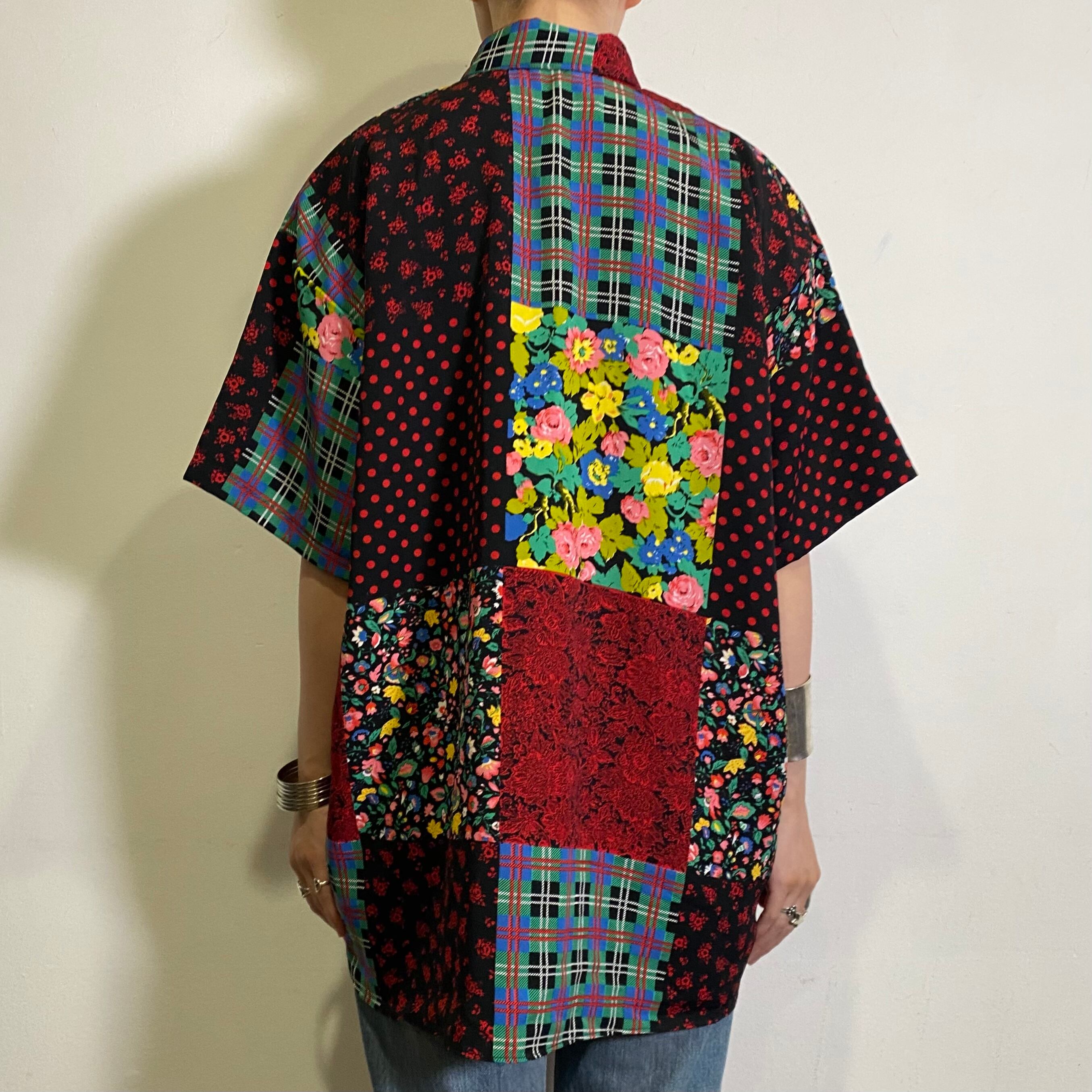 80s patchwork printed short sleeve shirt