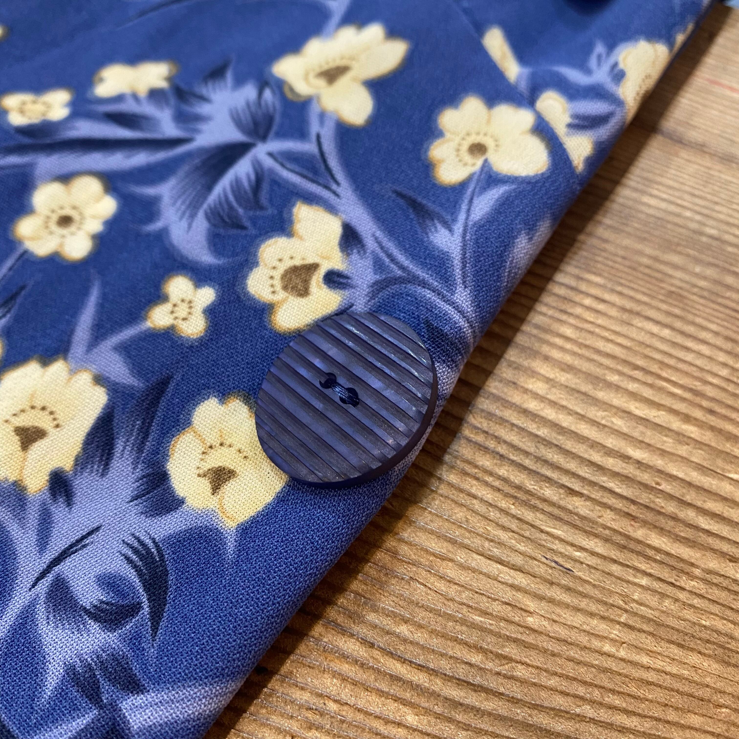 ブルーベースにクリーム色のお花が全体的にプリントされた、ノースリーブワンピースです。