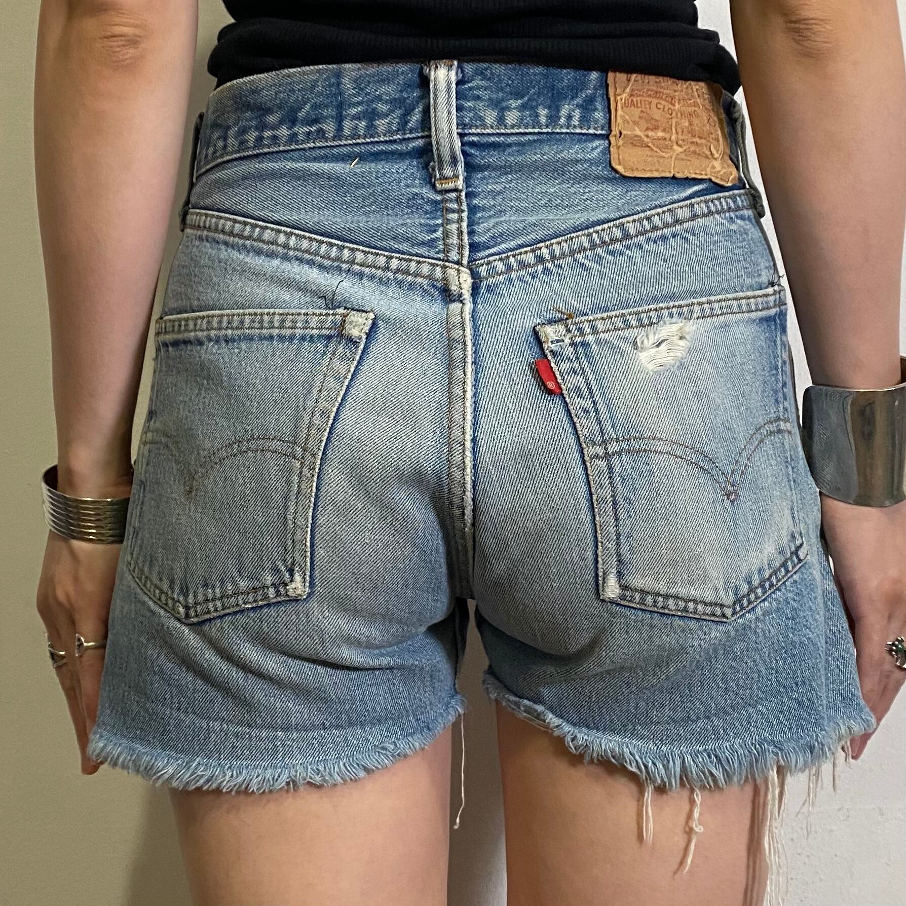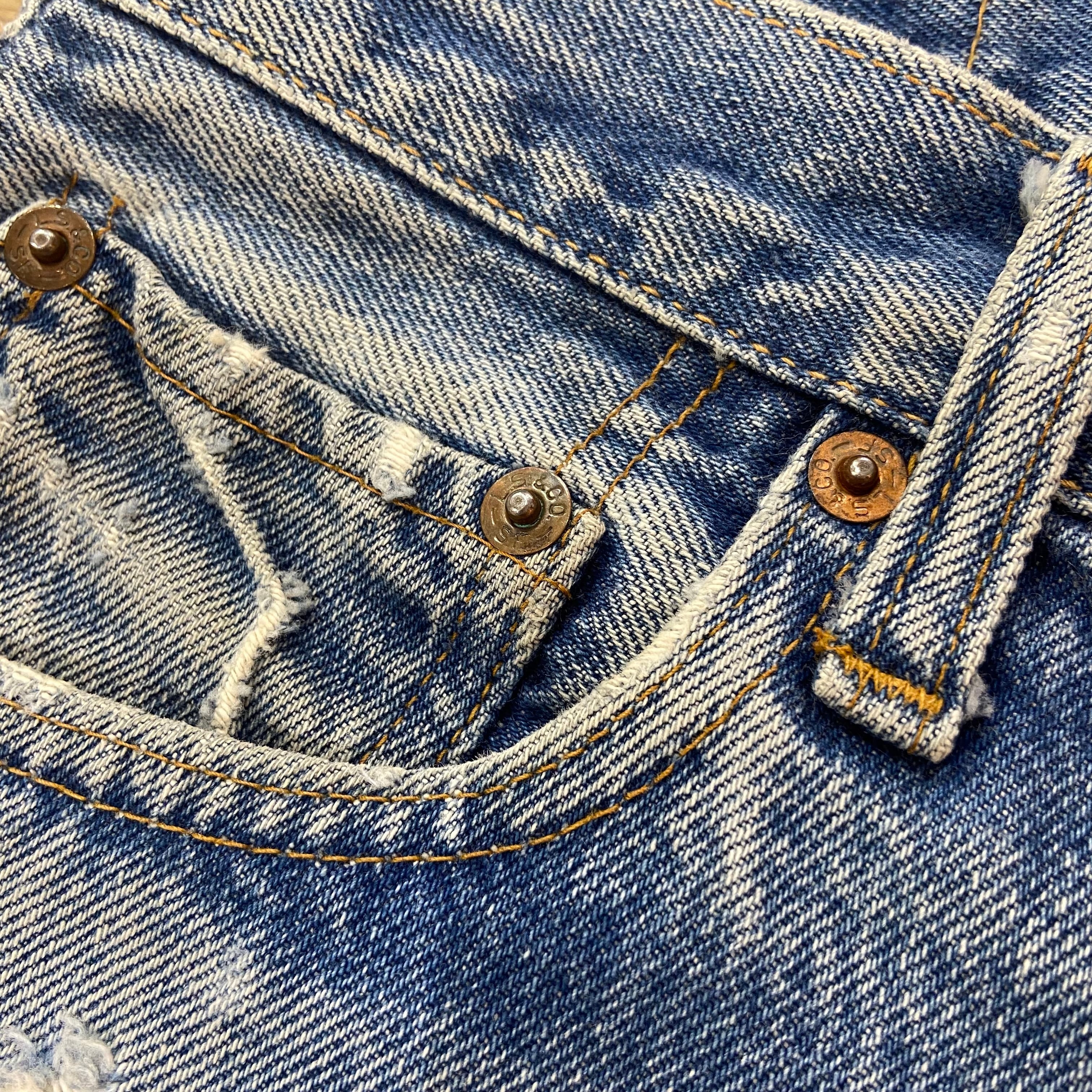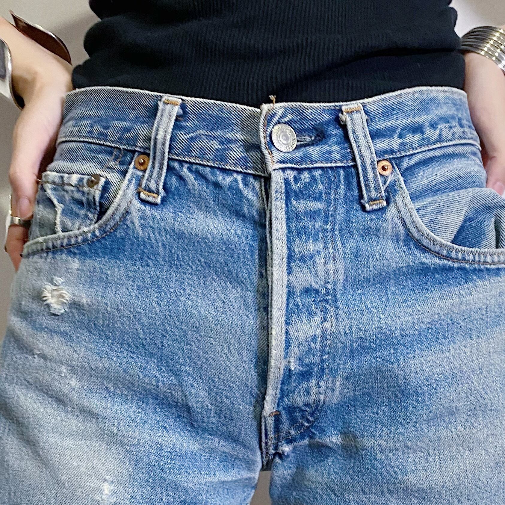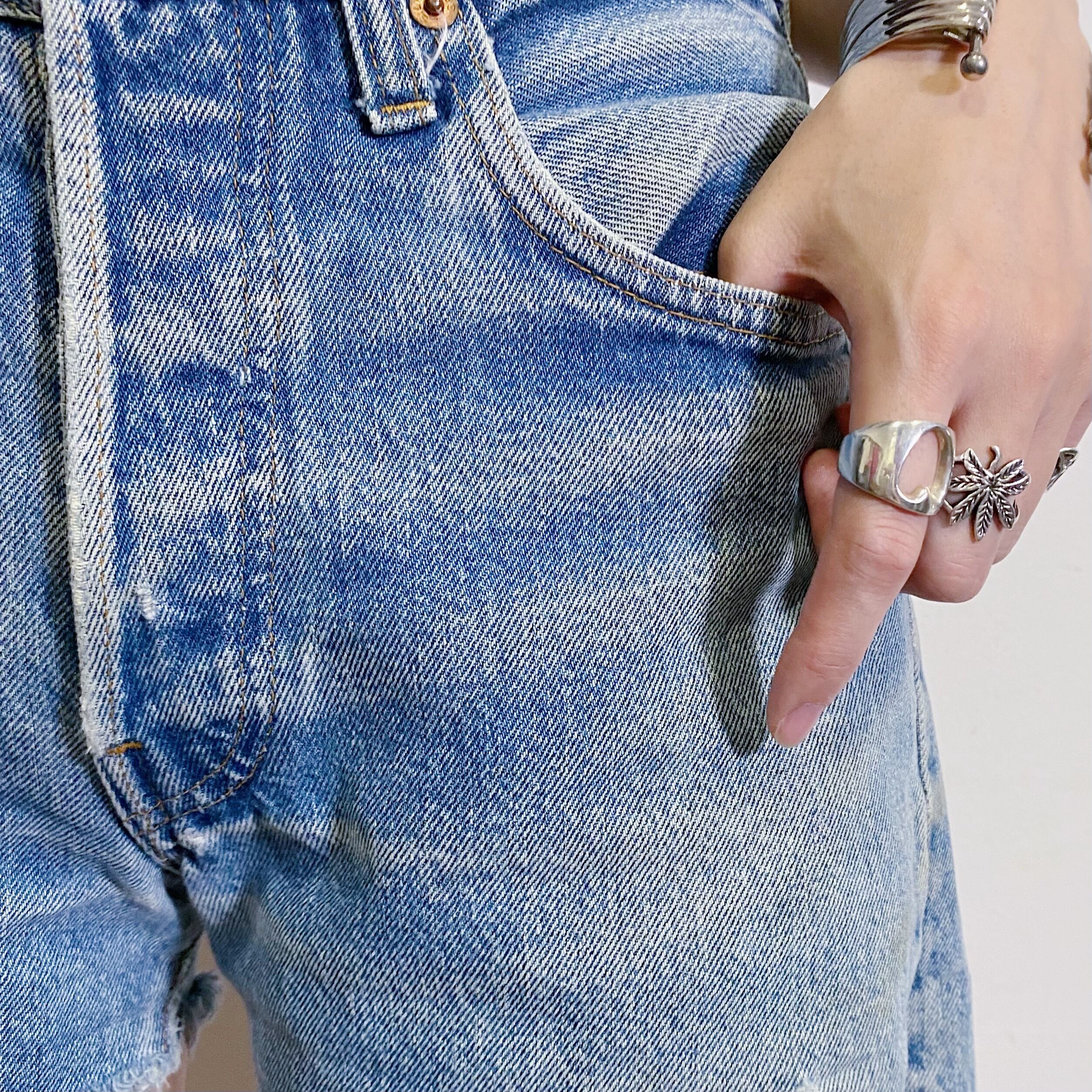 こちらは501の赤耳モデルがカットオフされたもので、程よいやれ感がヴィンテージの雰囲気たっぷり。