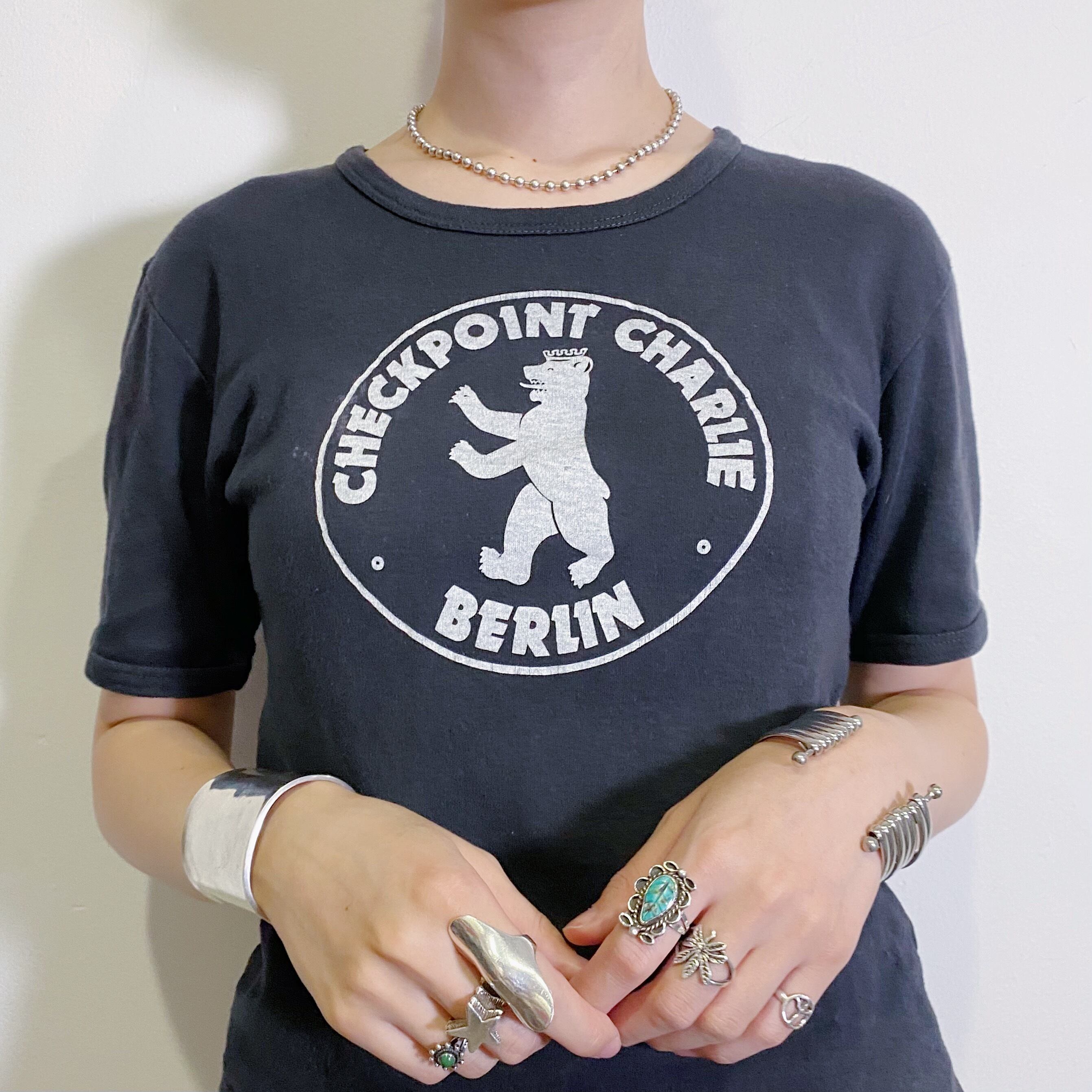 ブラックベースで大変使い勝手の良さそうな、70年代の半袖Tシャツです。