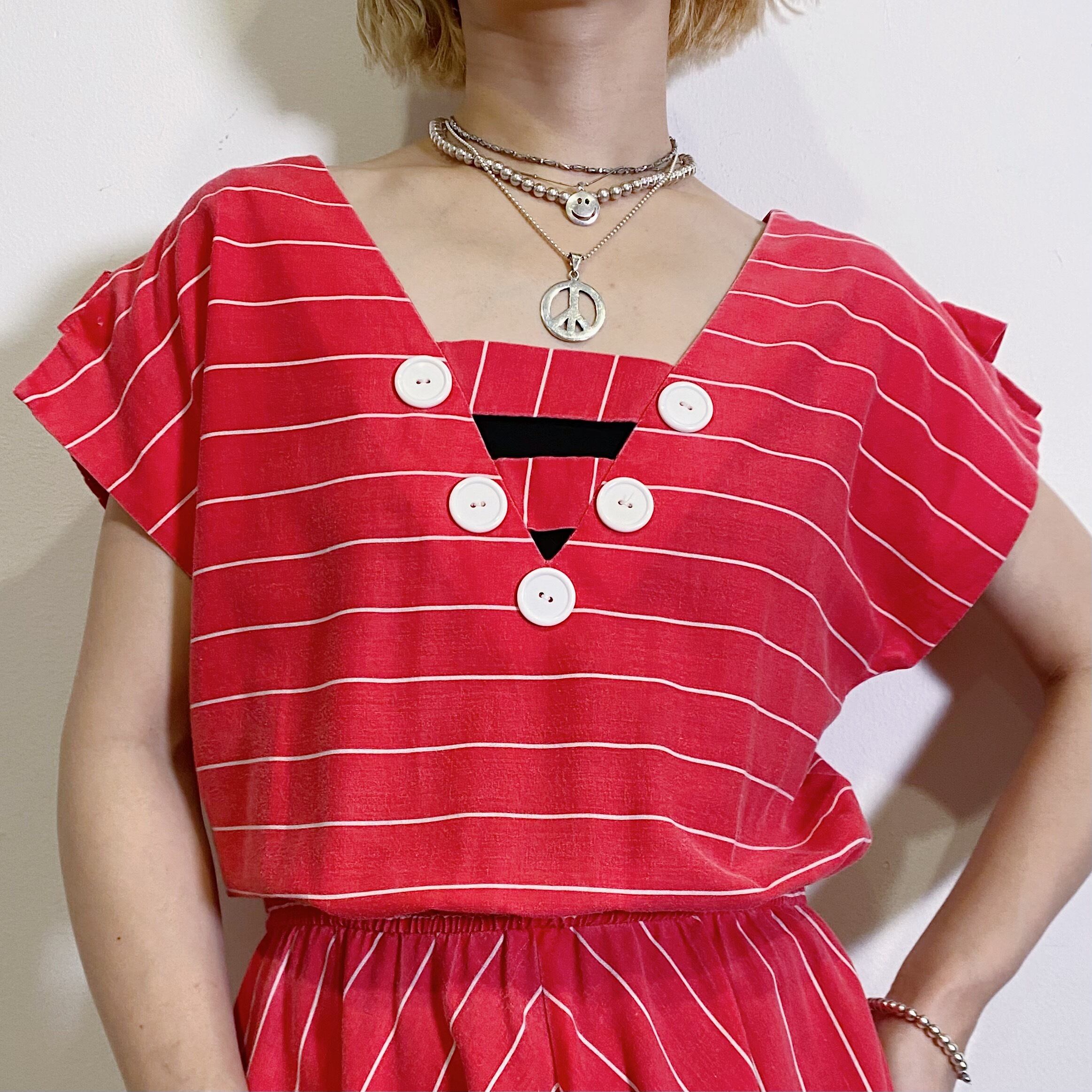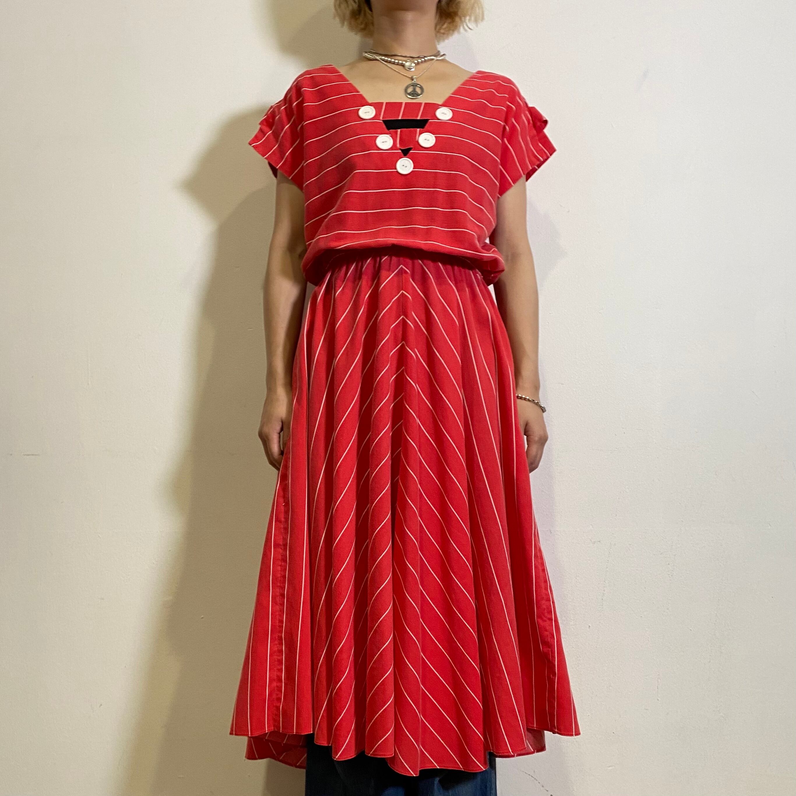 ホワイトとレッドのストライプが可愛い、80年代のワンピースです。