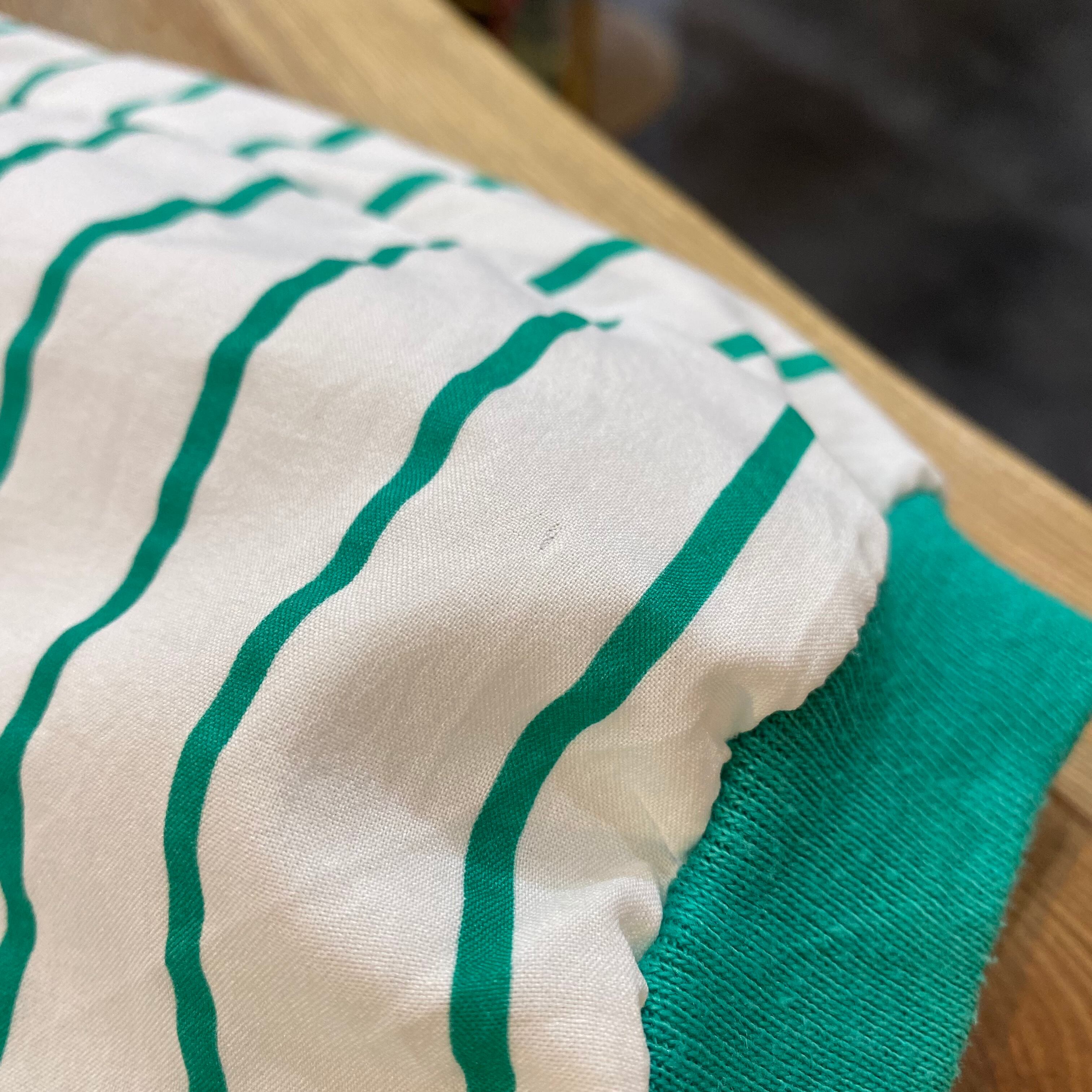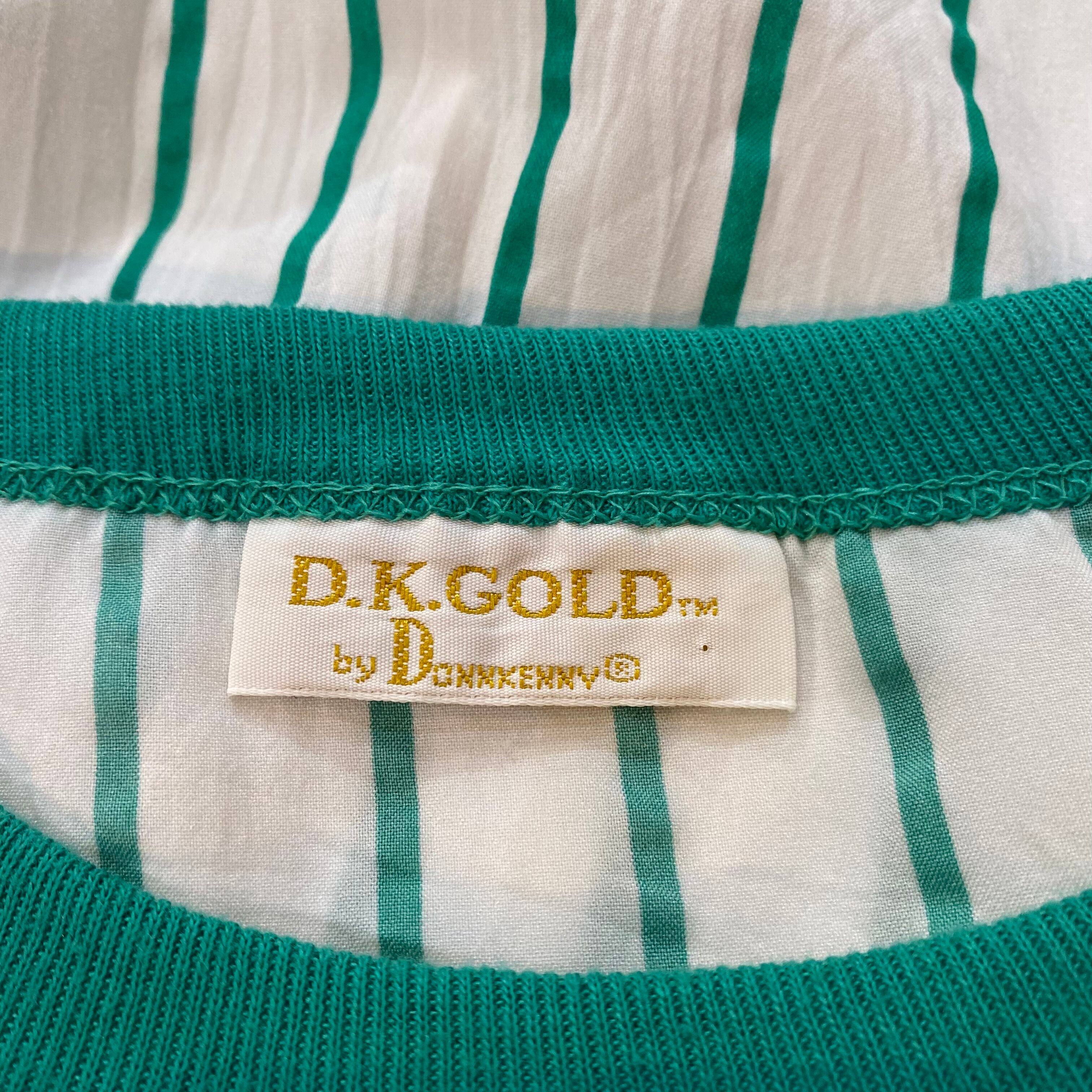 白地に緑のドットやボーダーが可愛い、80年代のプルオーバートップスです。