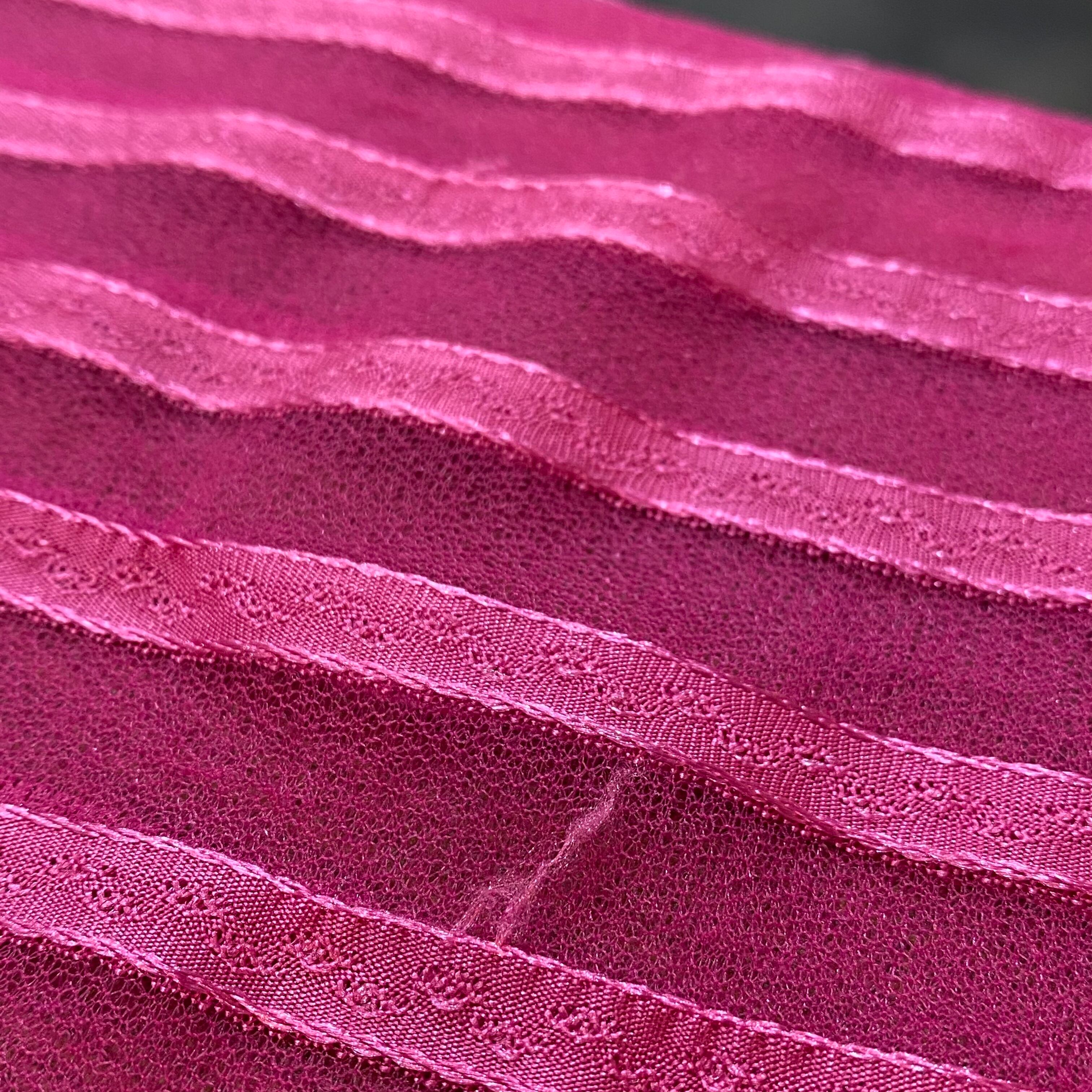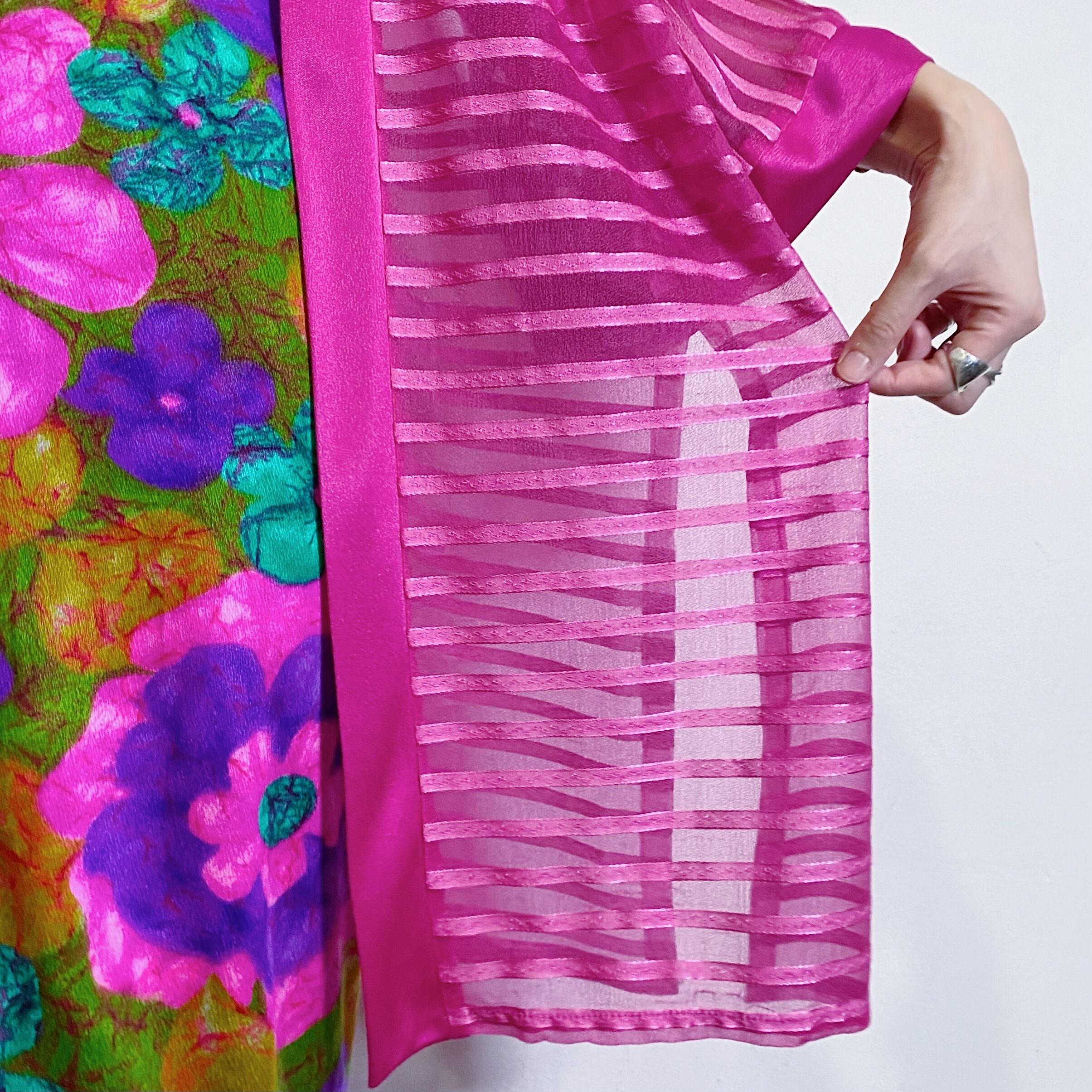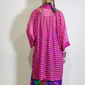 ピンクのシアー素材のボーダー柄が可愛い、ショート丈ガウンです。