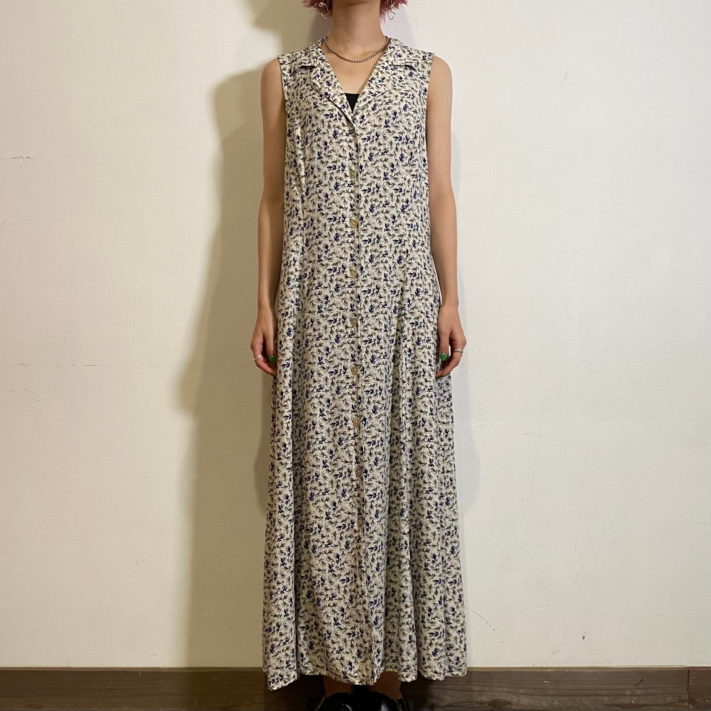 白地に小さな花柄が可愛い、レーヨン素材のノースリーブワンピースです。