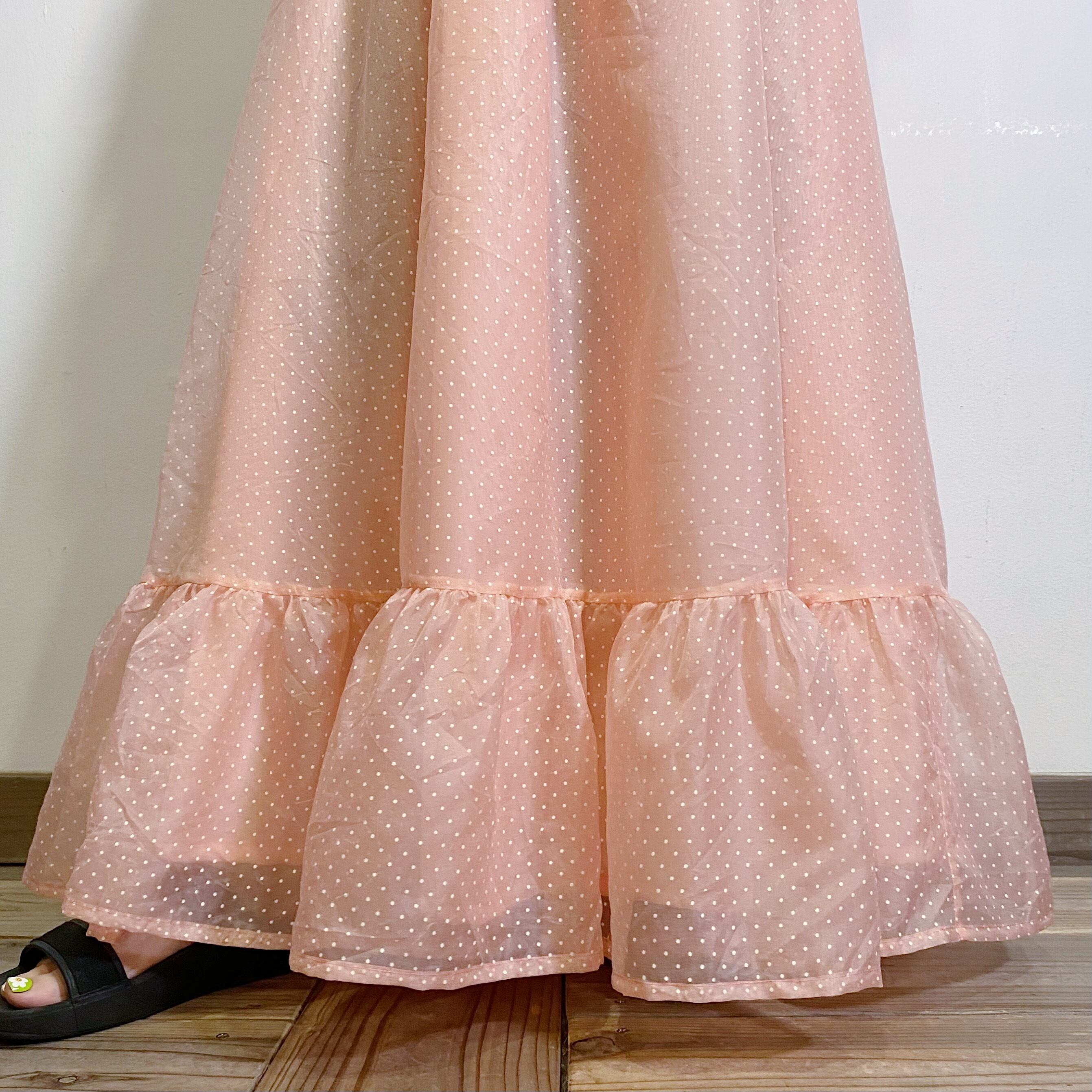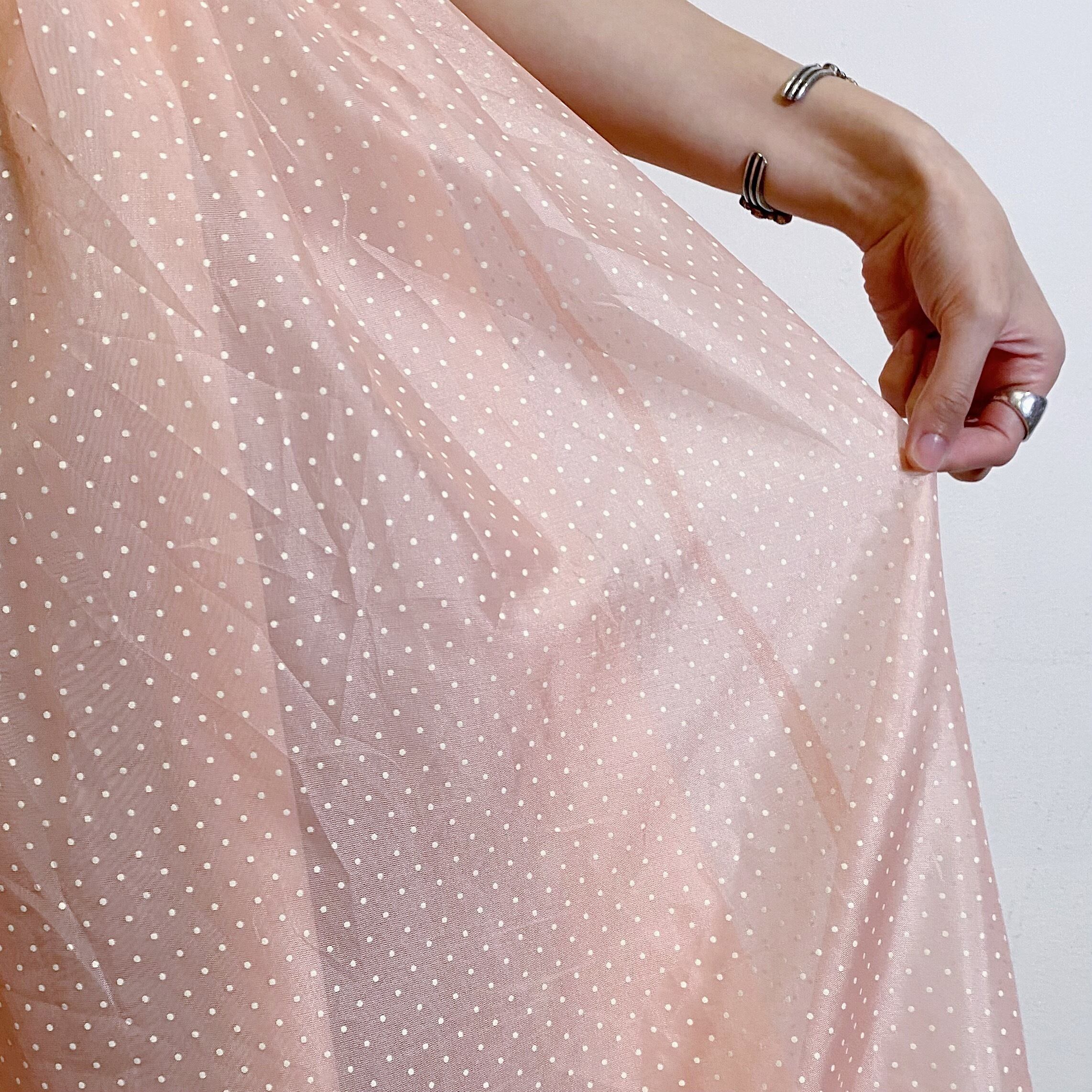 70s salmon pink dot long dress