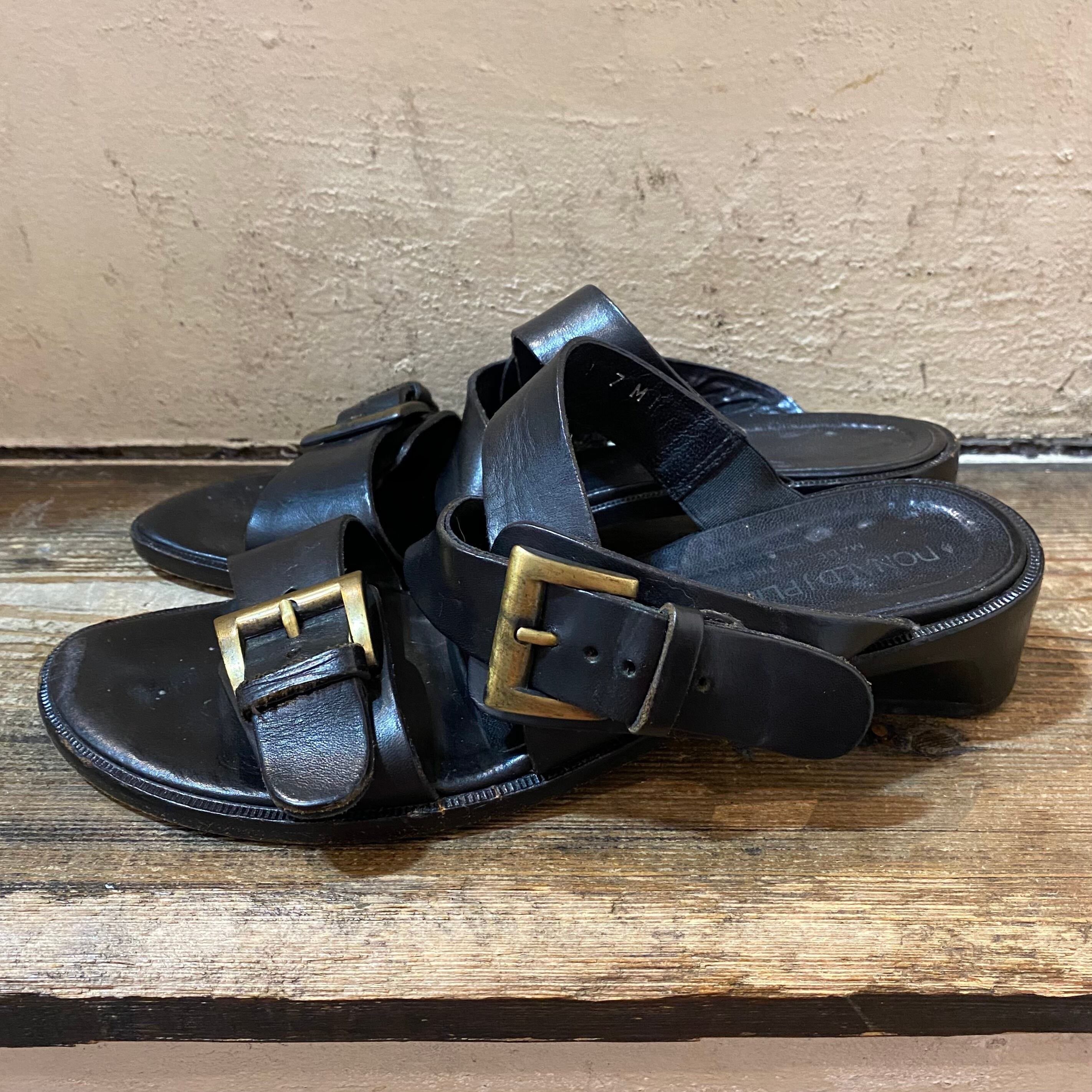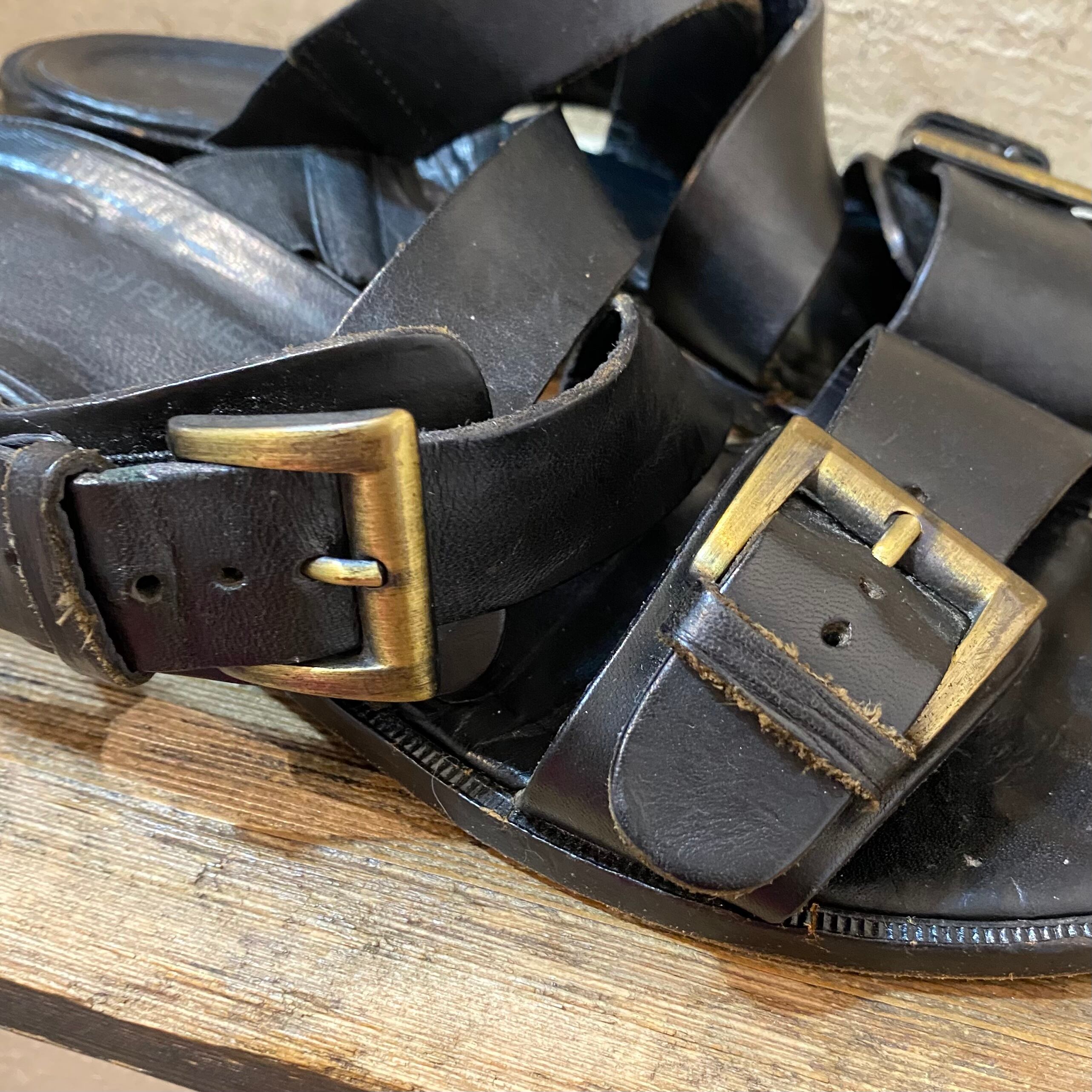 black leather sandals