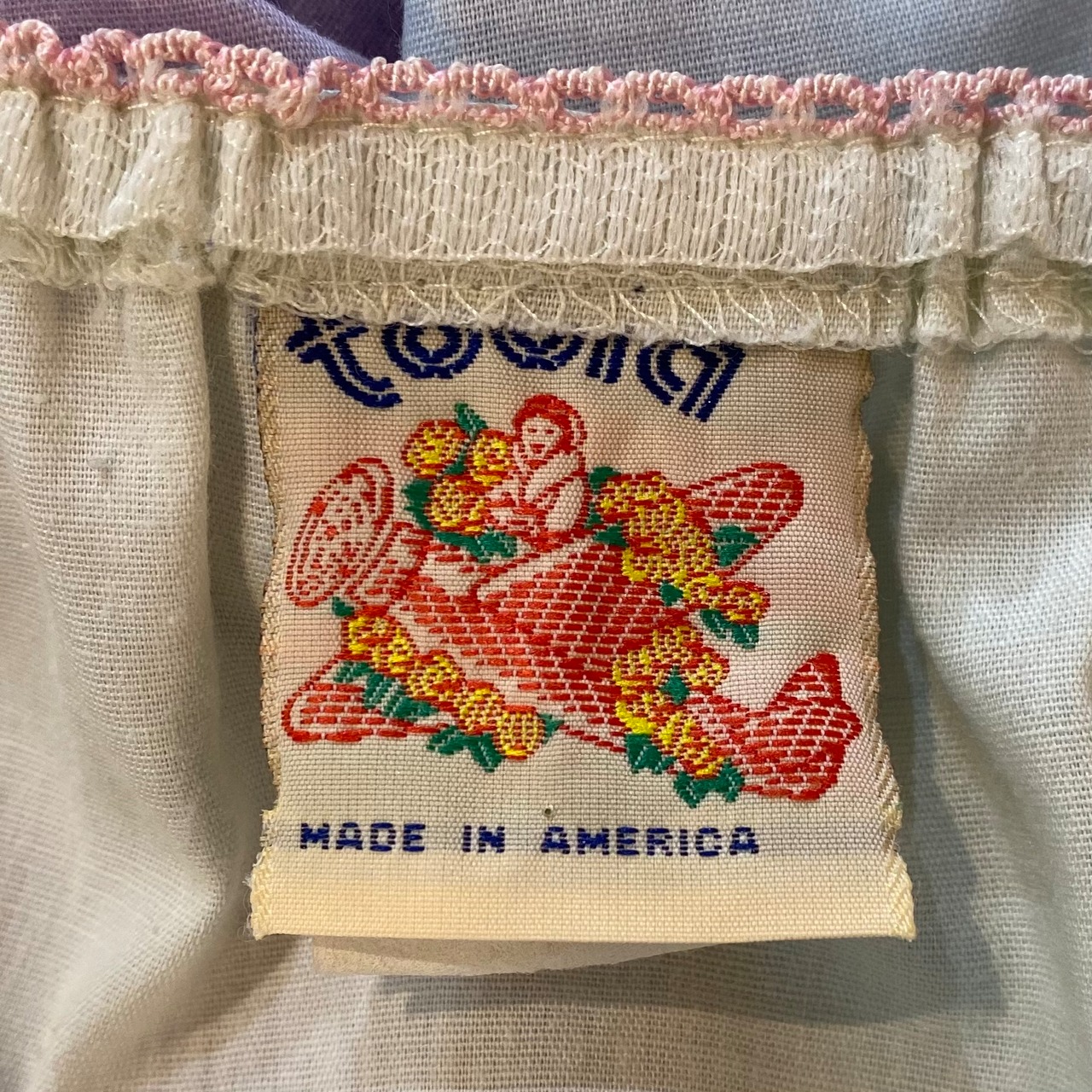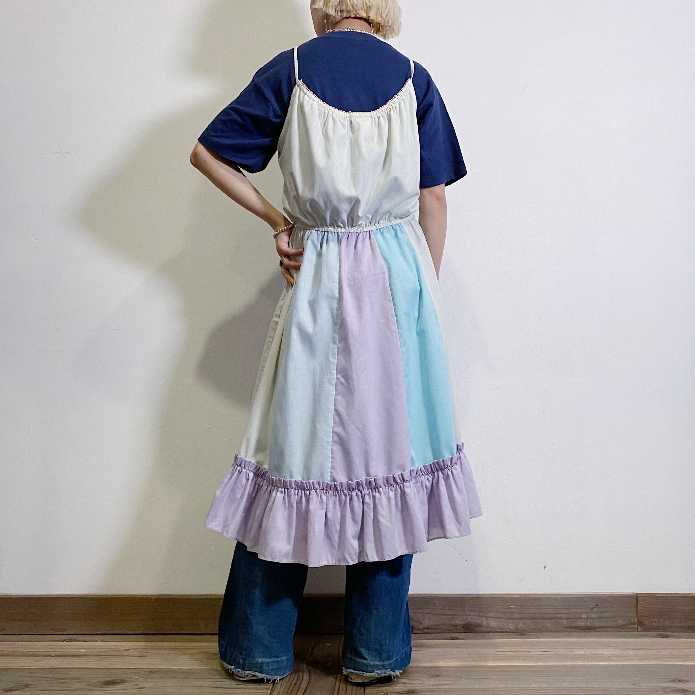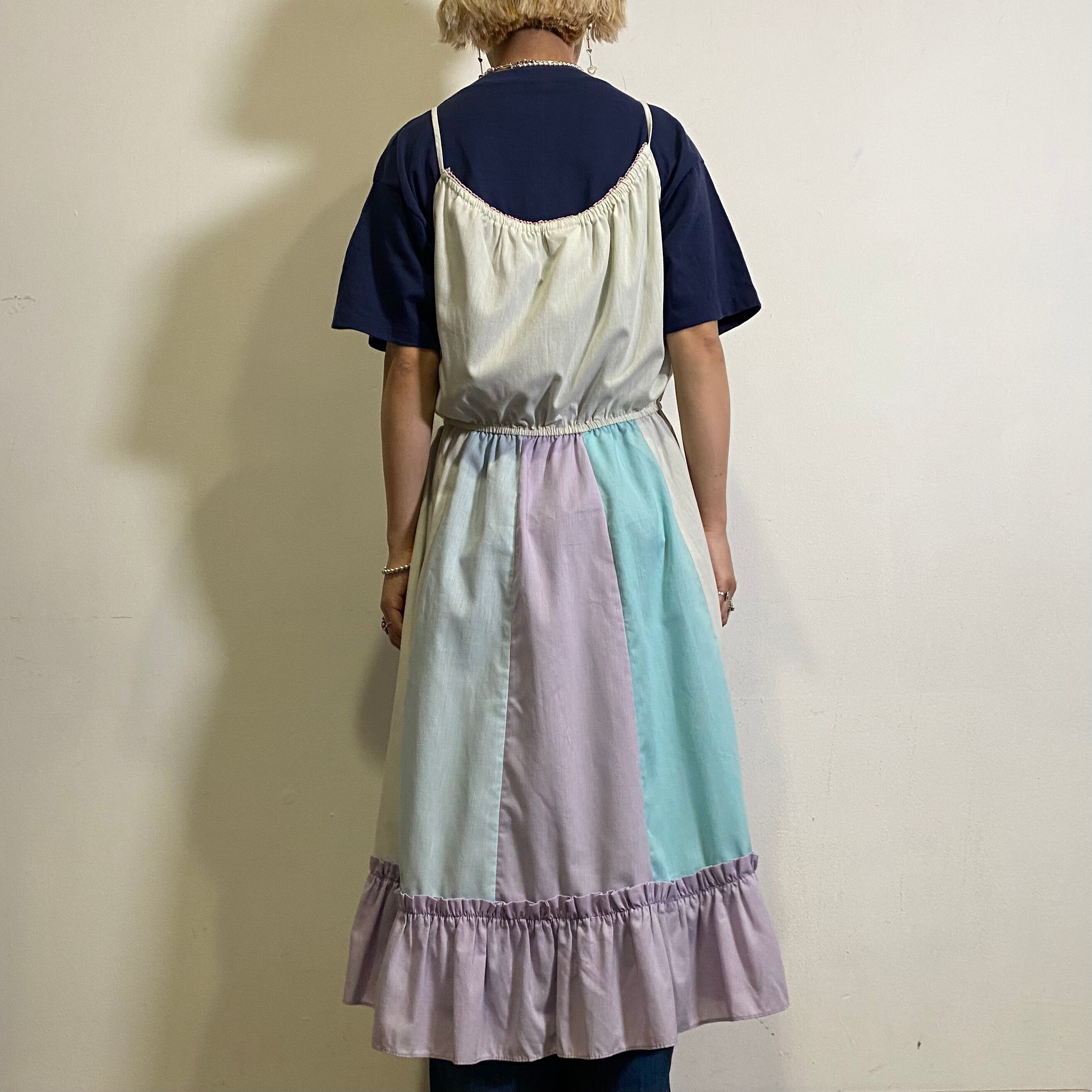 白と紫ベースのパステルカラーが可愛い、70年代後期から80年代初期のキャミワンピースです。