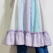 スカート部分の色の切り替えがユニークで、裾のフリルや首のリボンもキュート。