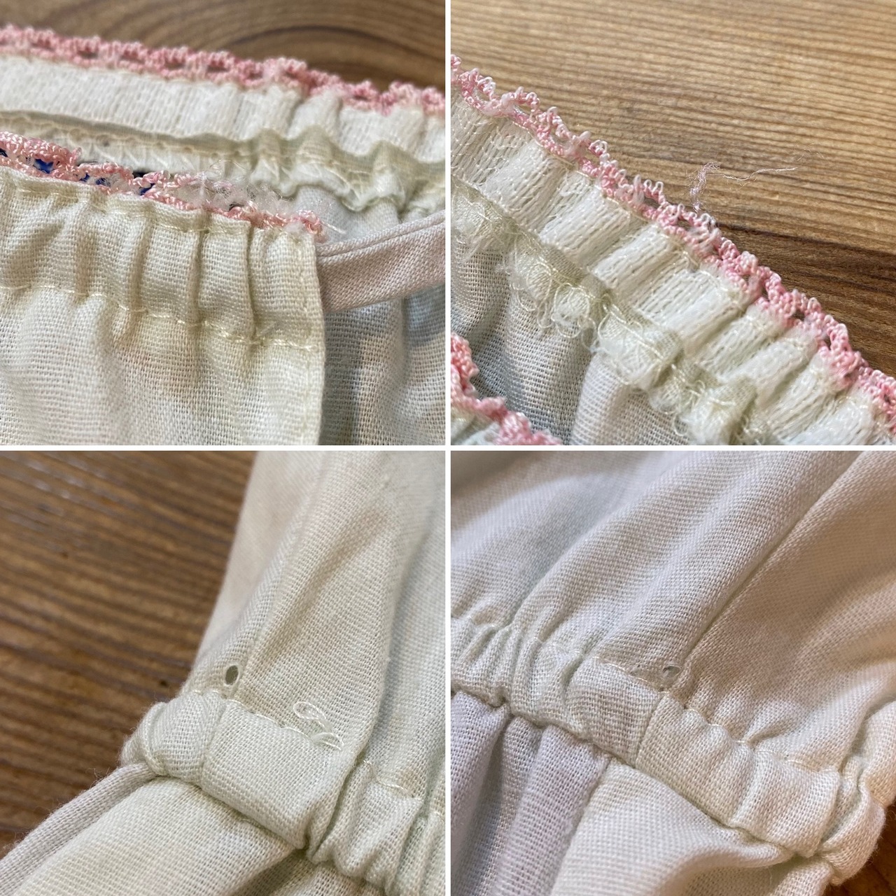 また首回りのレースに軽いホツレ、ウエストにはペン先程の小さな穴が見受けられますが、いずれもあまり気にならない程度かと思われます。
