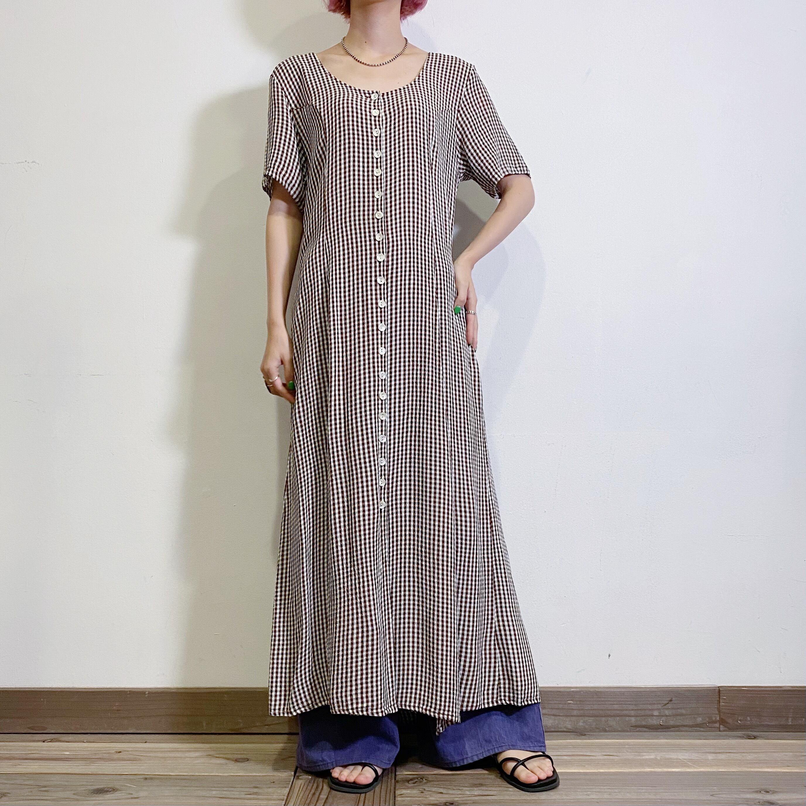 ブラウンと白のギンガムチェックが可愛い、レーヨンワンピースです。