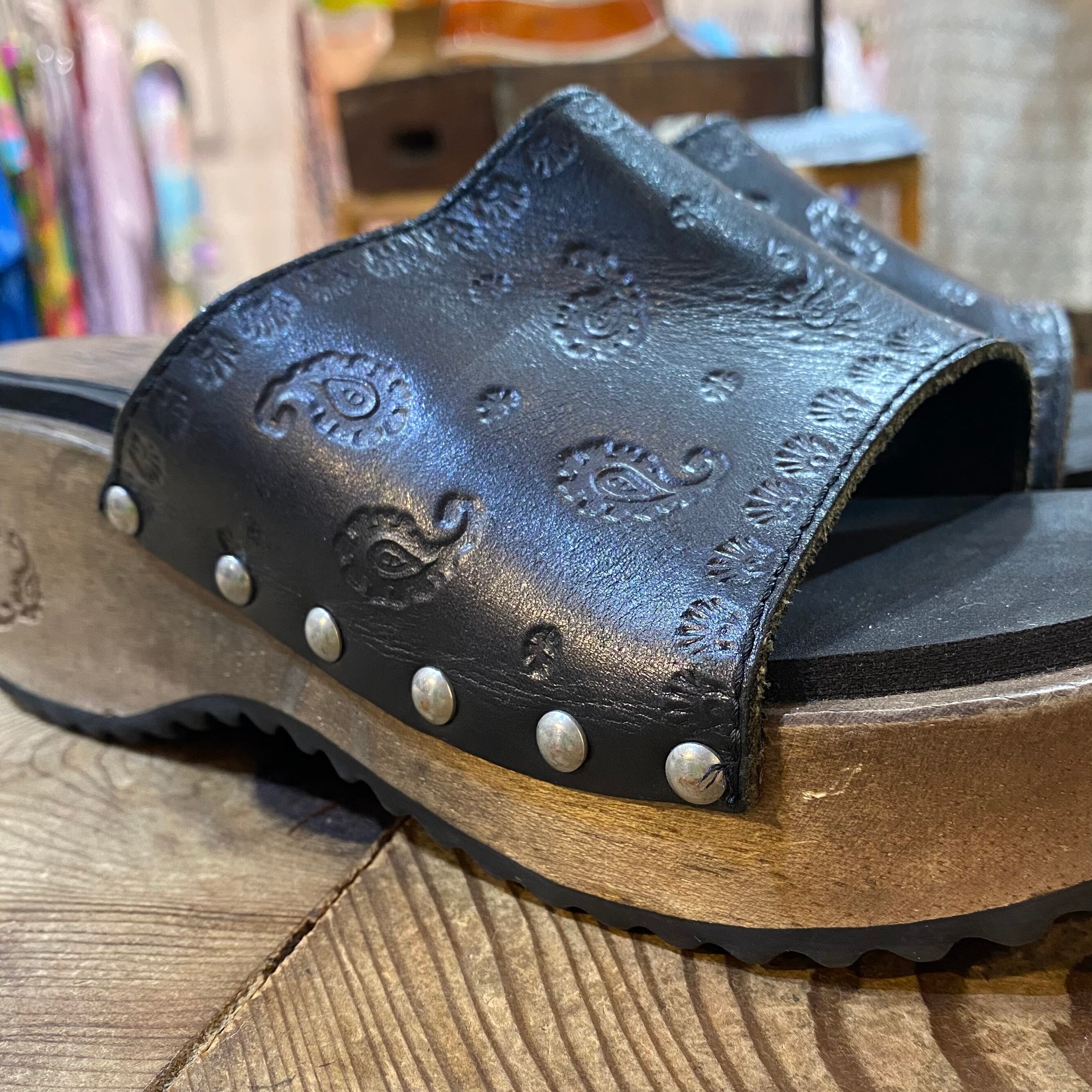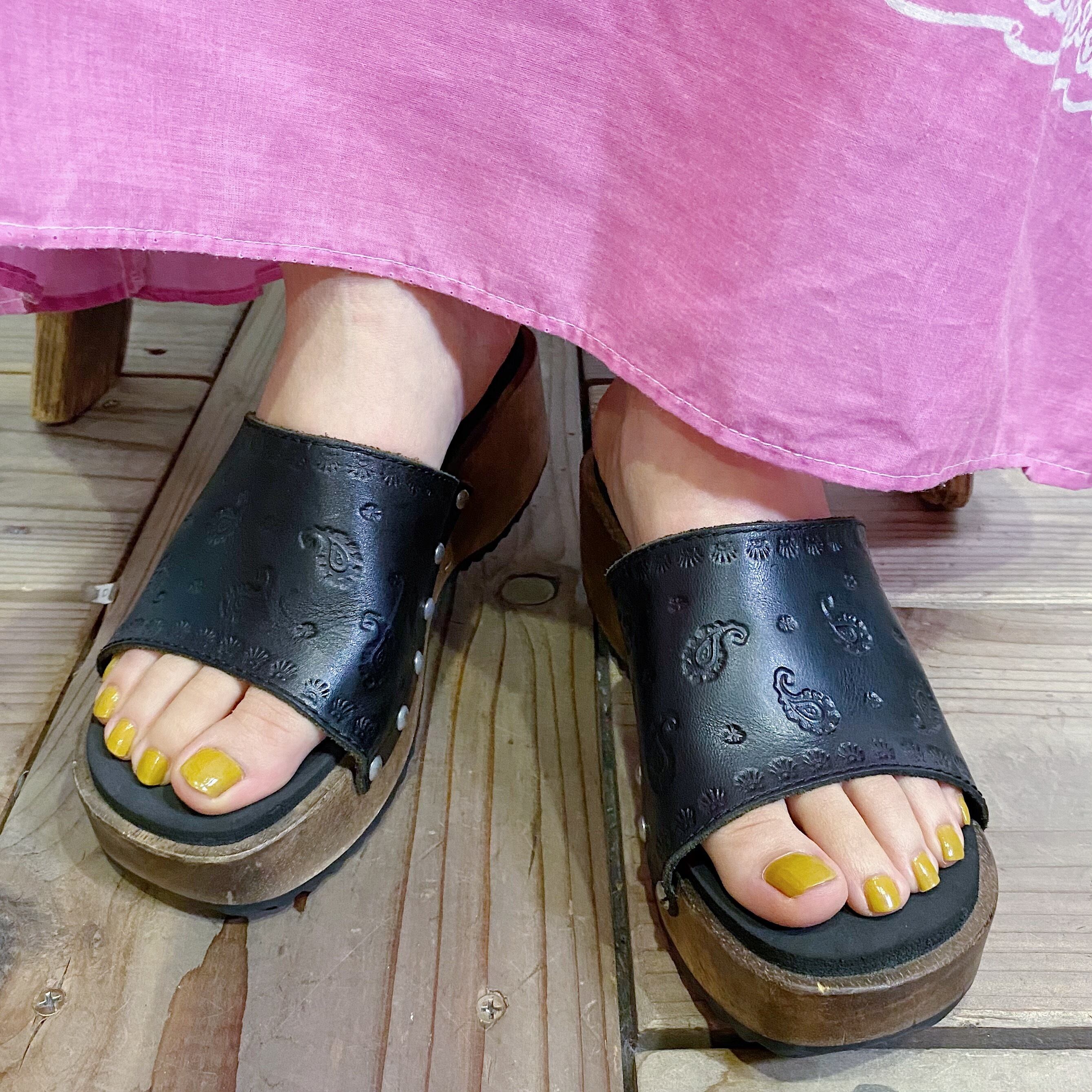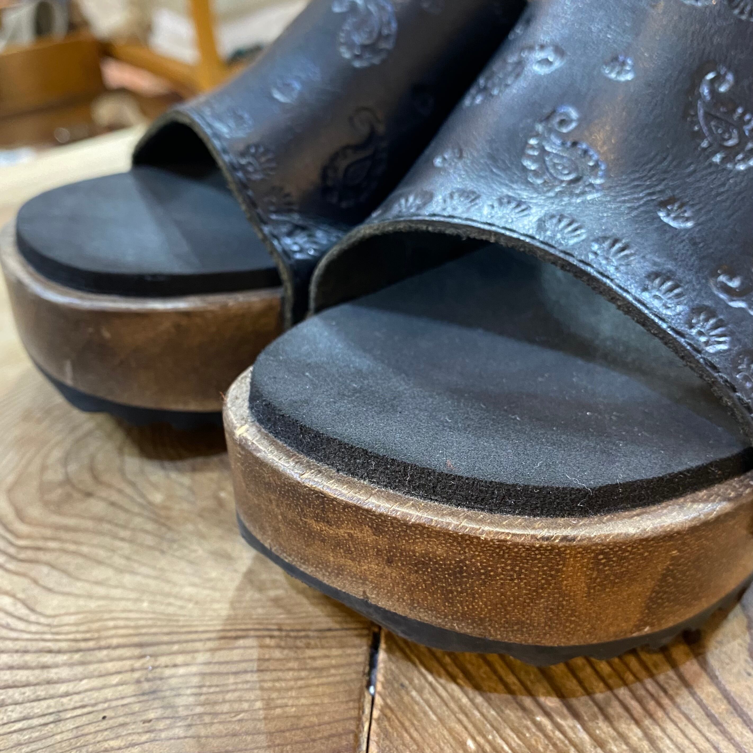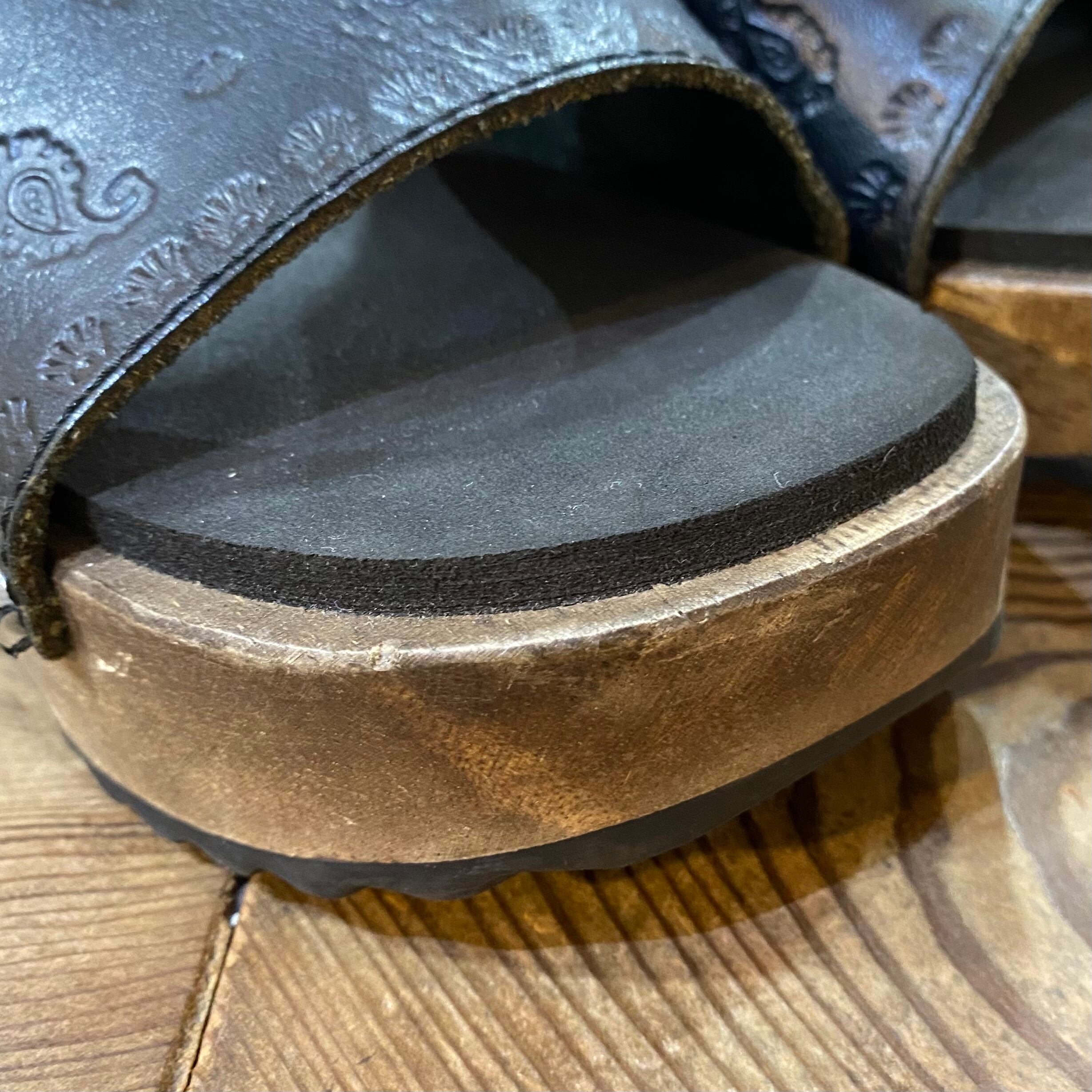 ペイズリーの型押しが可愛い、オールドGAPのレザーサンダルです。