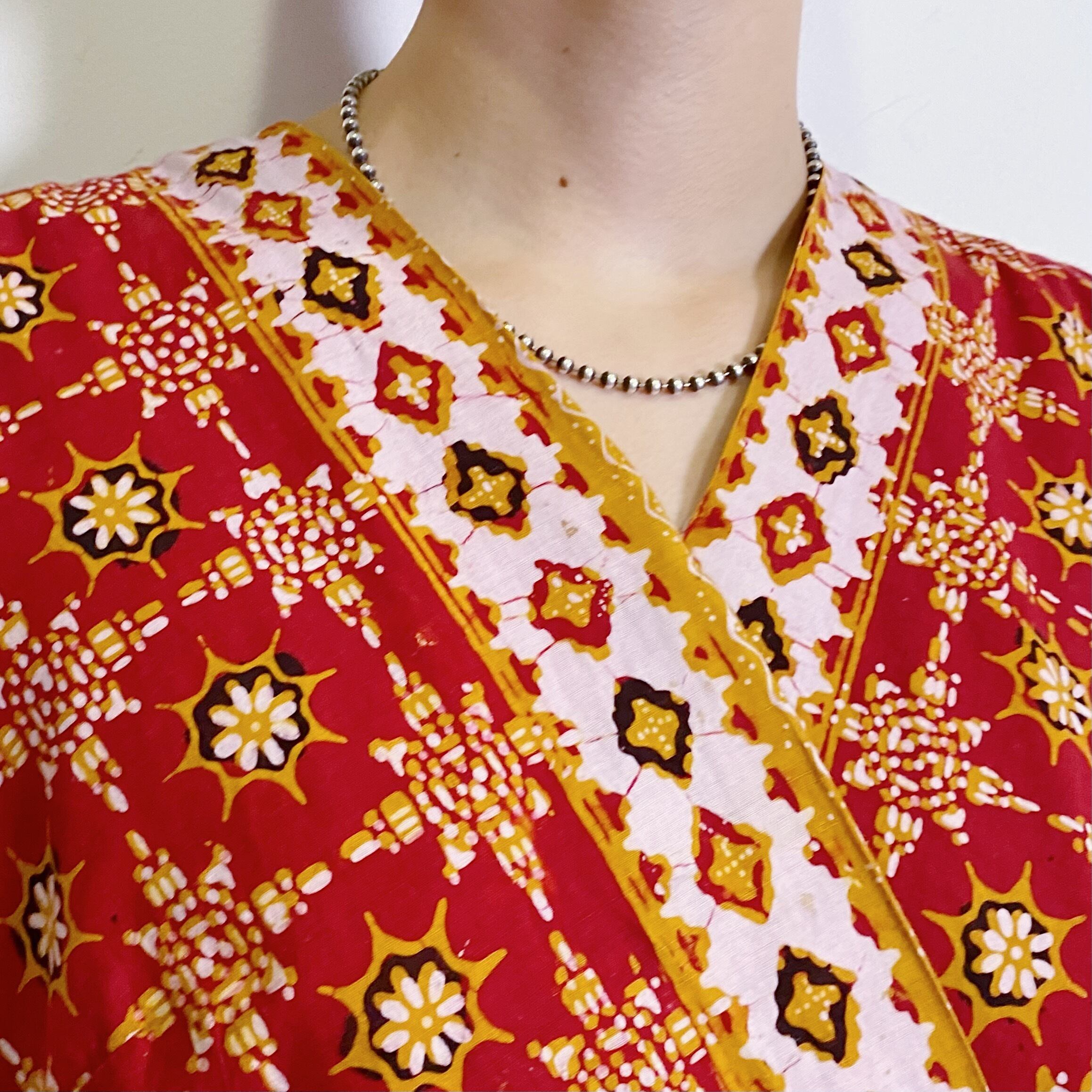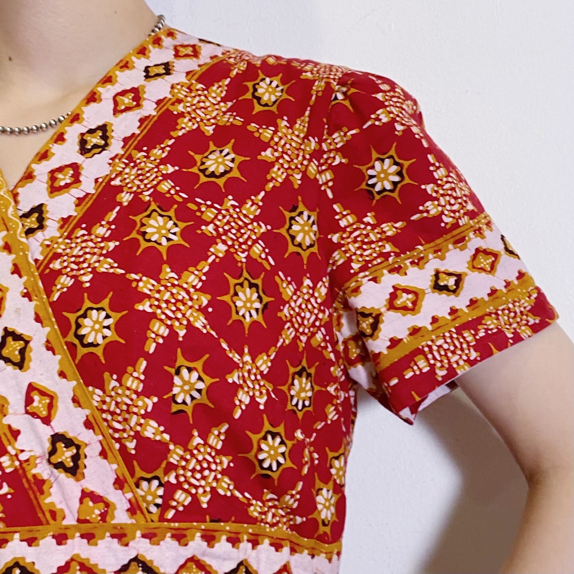 ロング丈に胸元はカシュクールになっており、大人可愛く着こなせますよ。