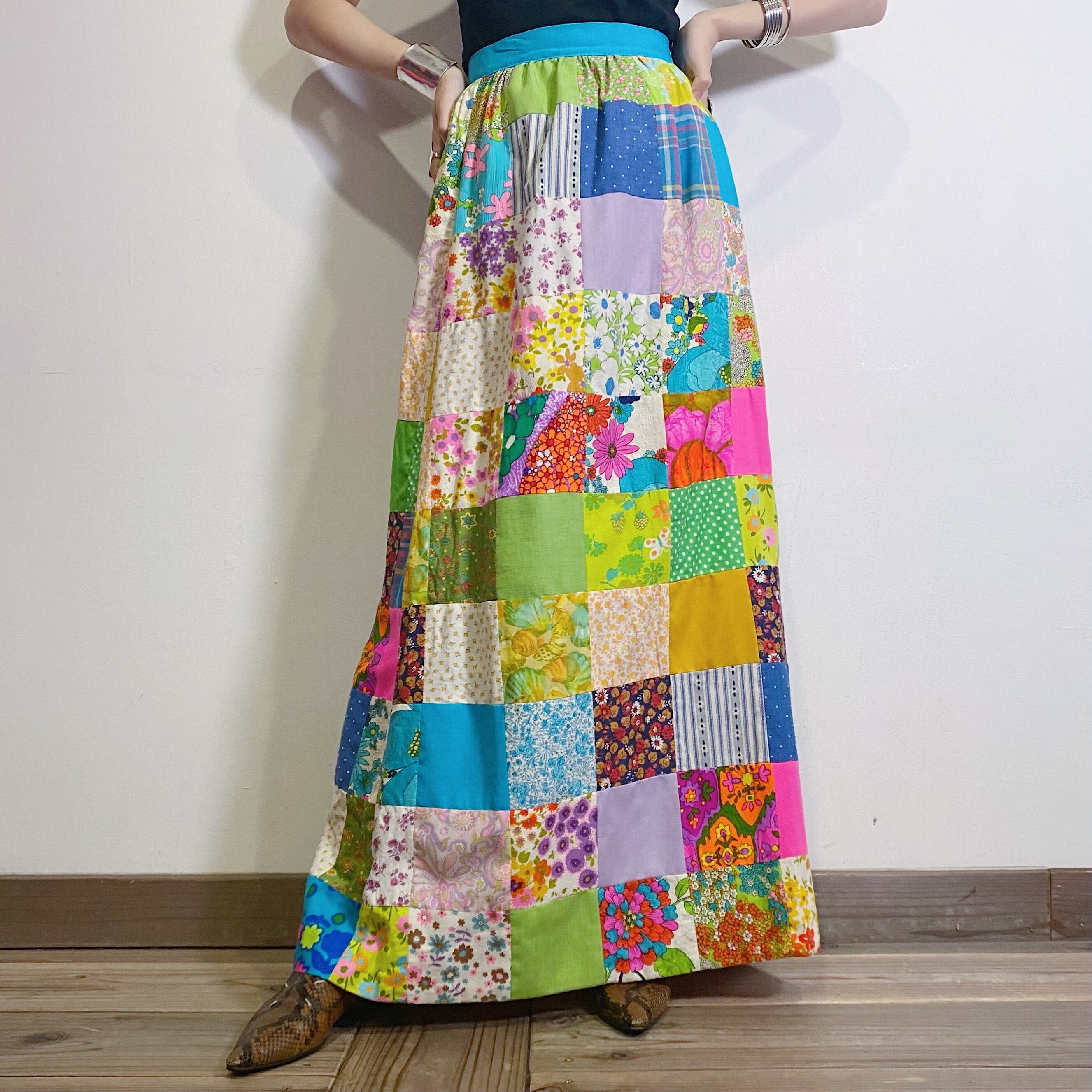 カラフルなリアルパッチワークが最高に可愛い、60~70年代のロングスカートです。