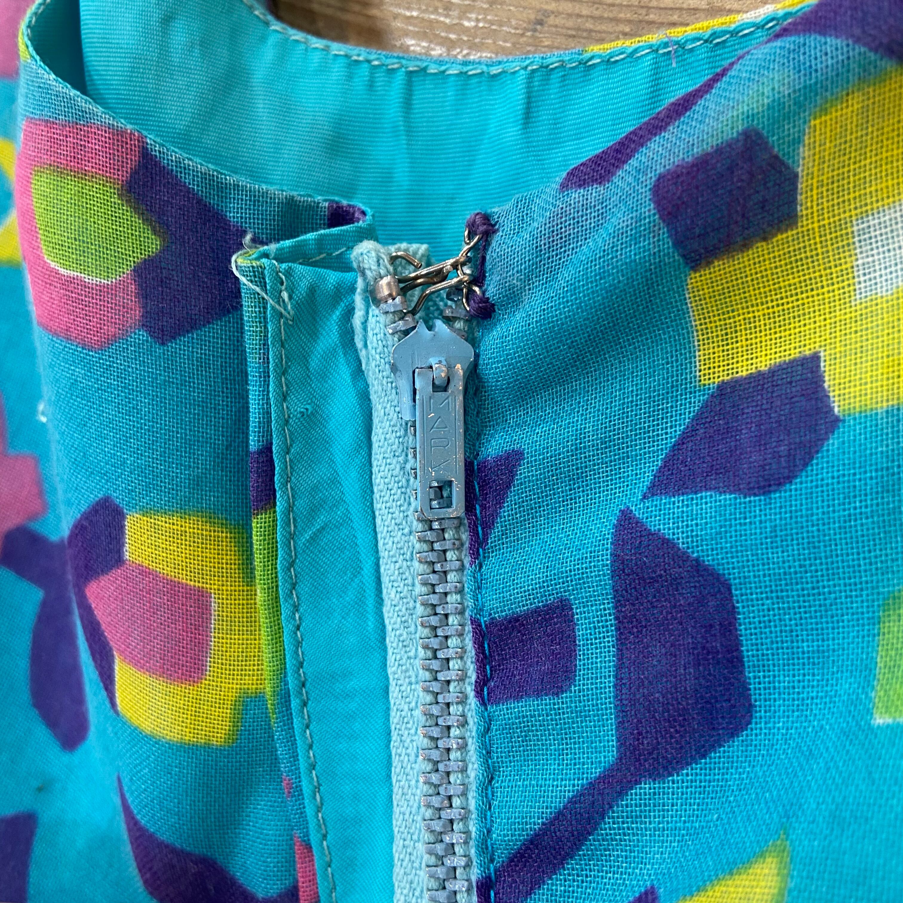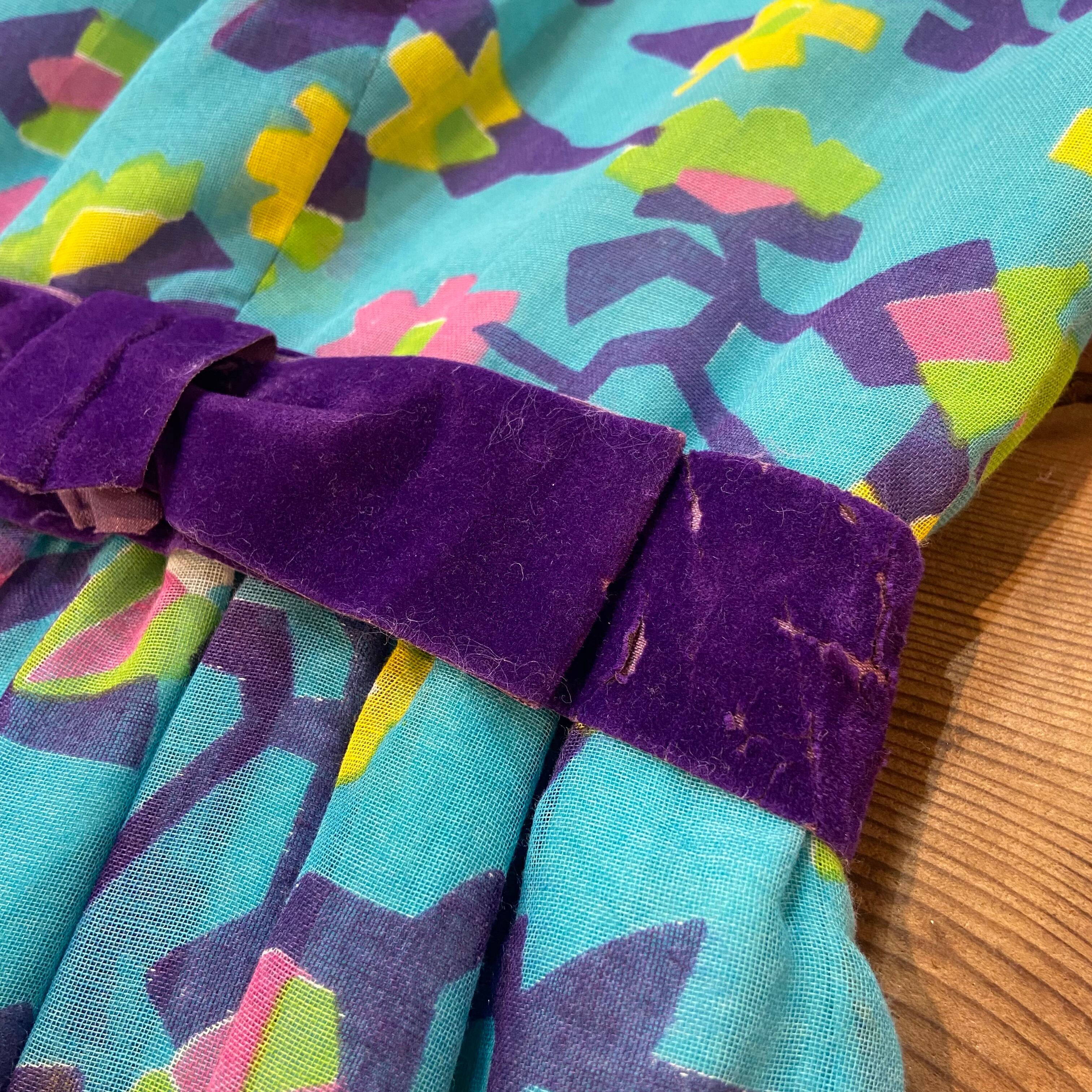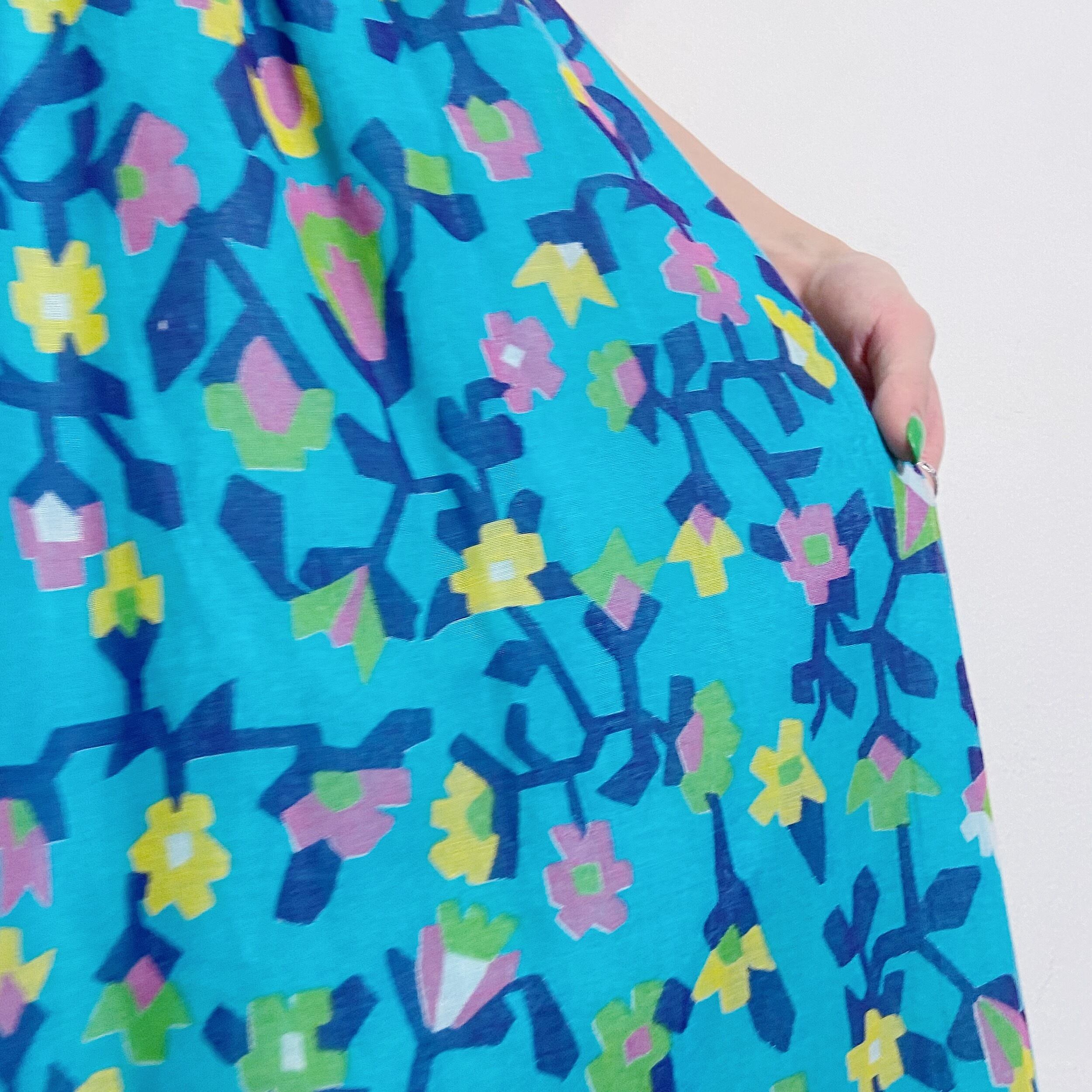 ターコイズカラーと紫の色合いが可愛い、60年代のロングワンピースです。
