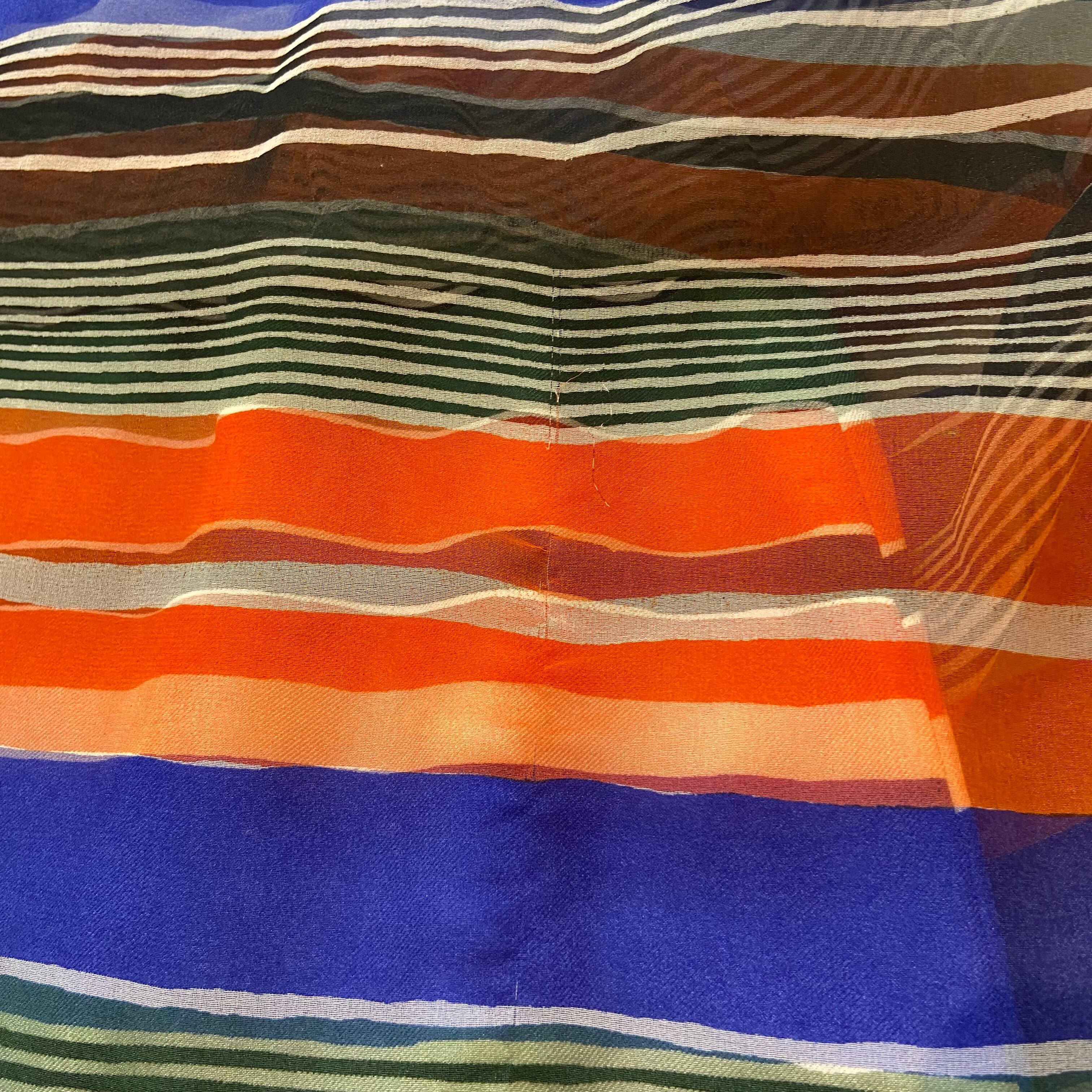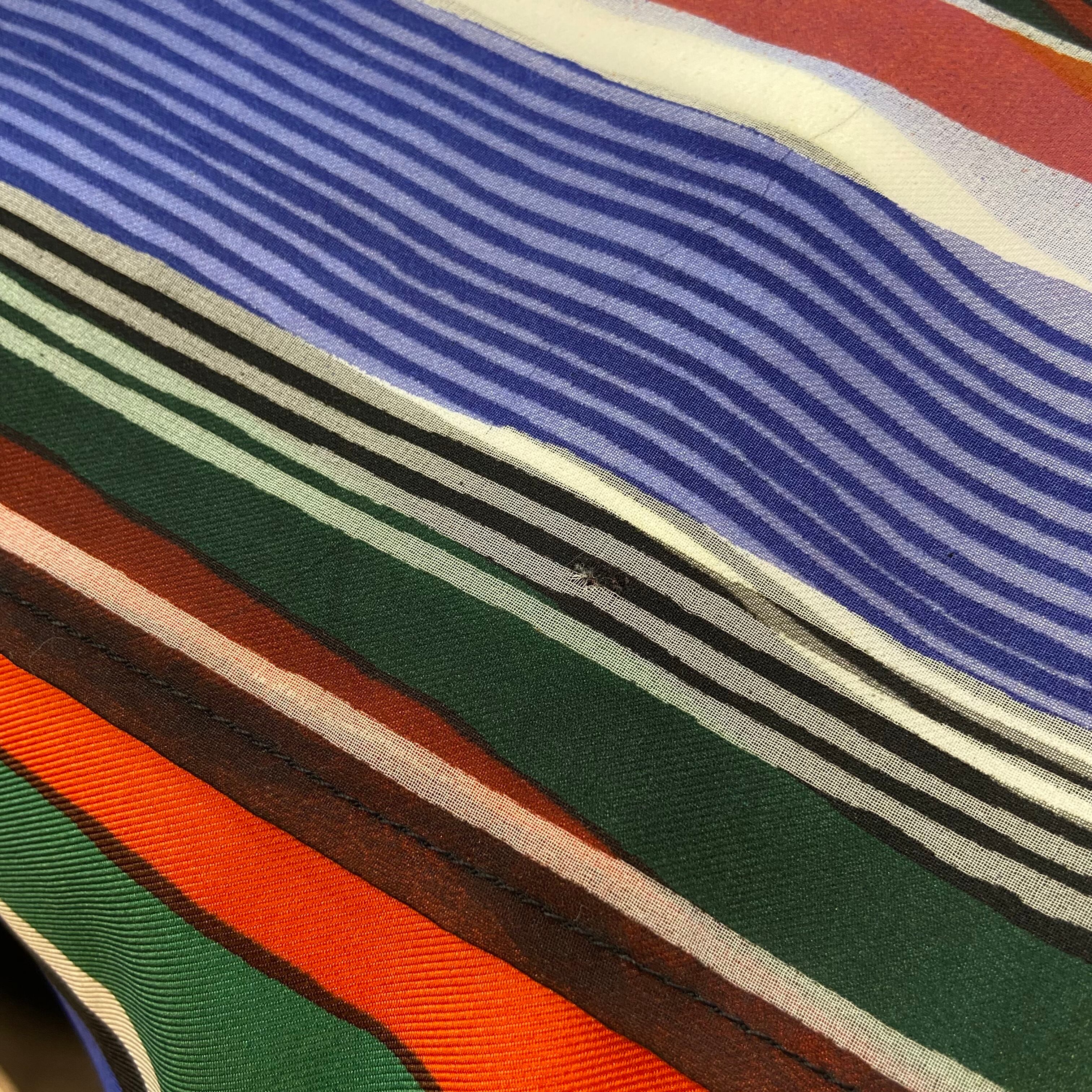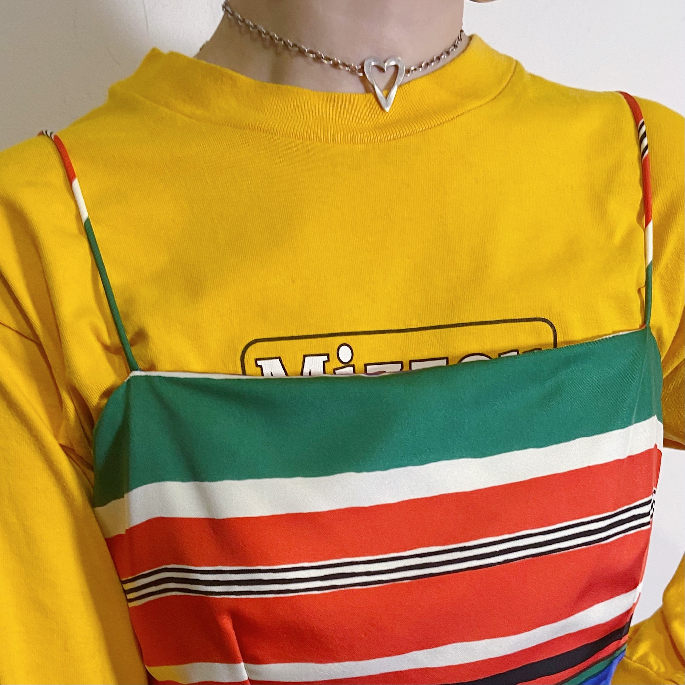 緑や青、オレンジなどの綺麗な色合いのボーダーが魅力的な、70年代ころのキャミワンピースです。