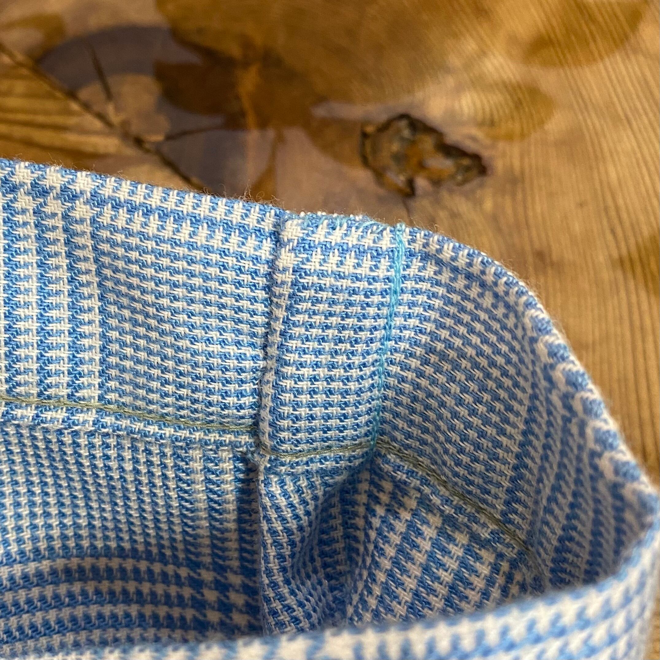 爽やかなサックスブルーのグレンチェックが可愛い、70年代のワイドパンツです。