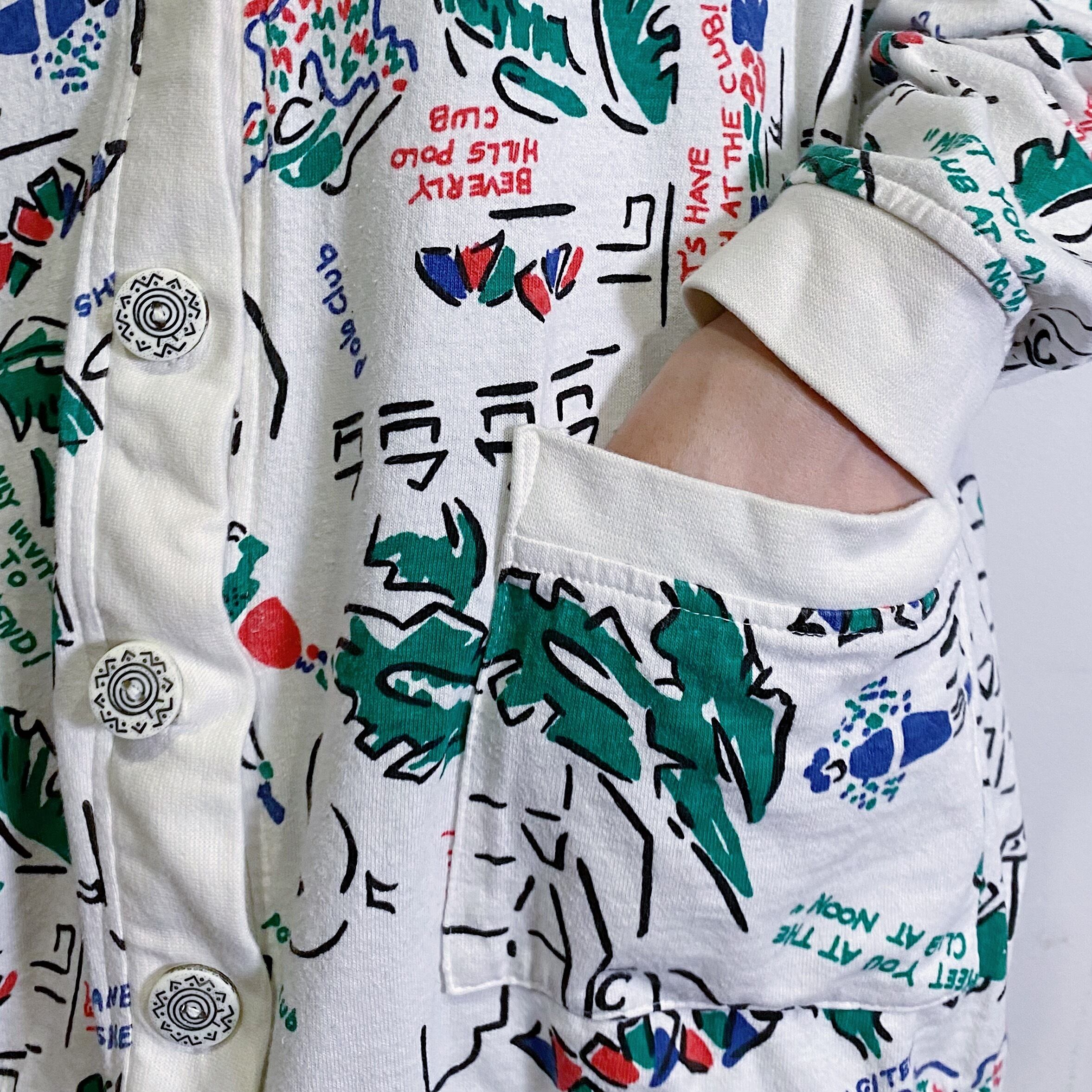 80sらしいユニークなテキスタイルが魅力のコットンカーディガンです。