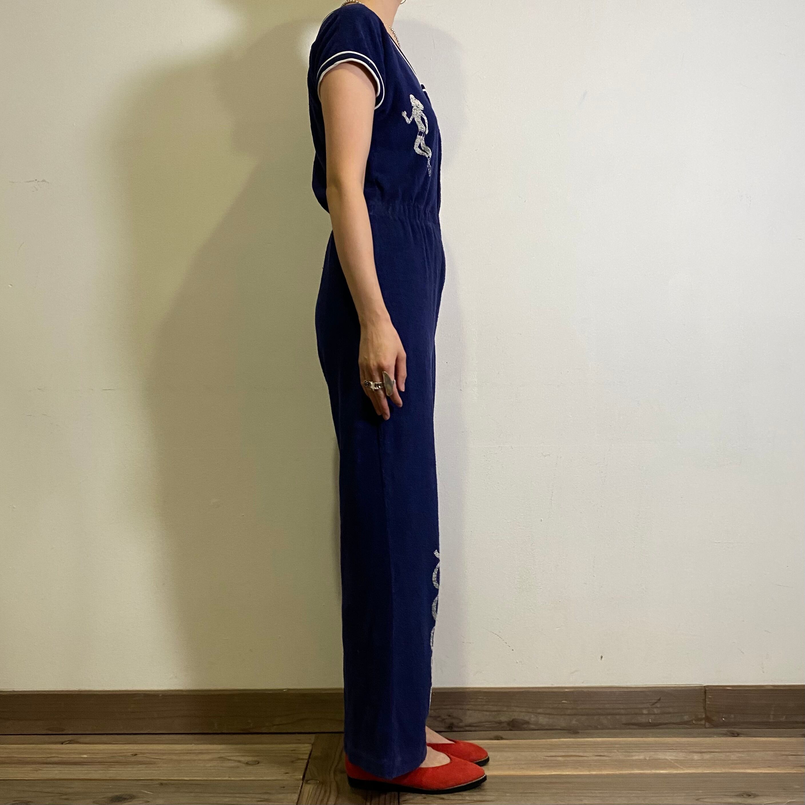 胸元にジョギングする女性がプリントされた、70年代のジャンプスーツです。