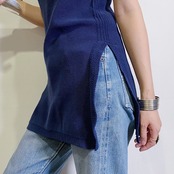 袖付きのワンピースなどの上からベスト感覚で合わせて、スリットを活かしたスタイルもおススメです。