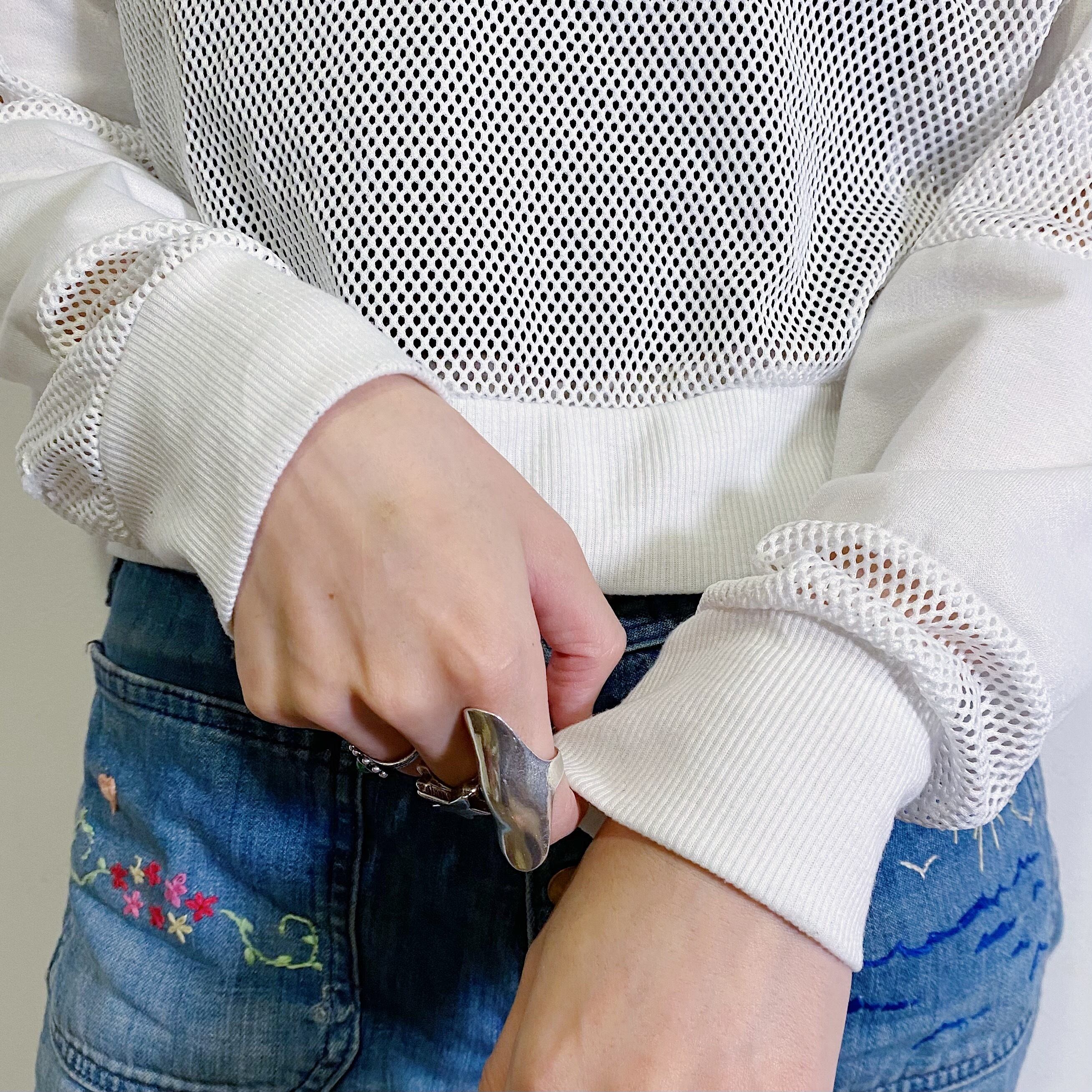 袖とウエスト部分のメッシュ切り替えが可愛い、80年代のトップスです。
