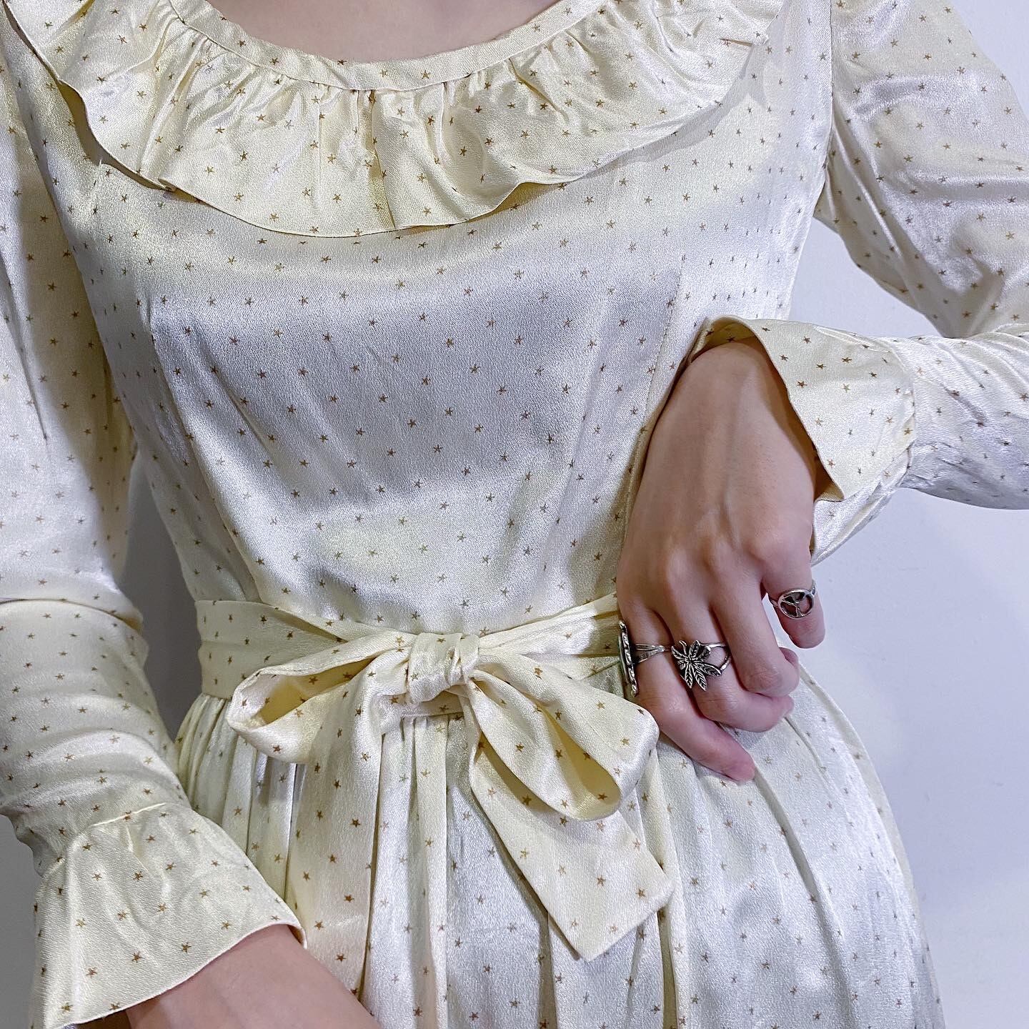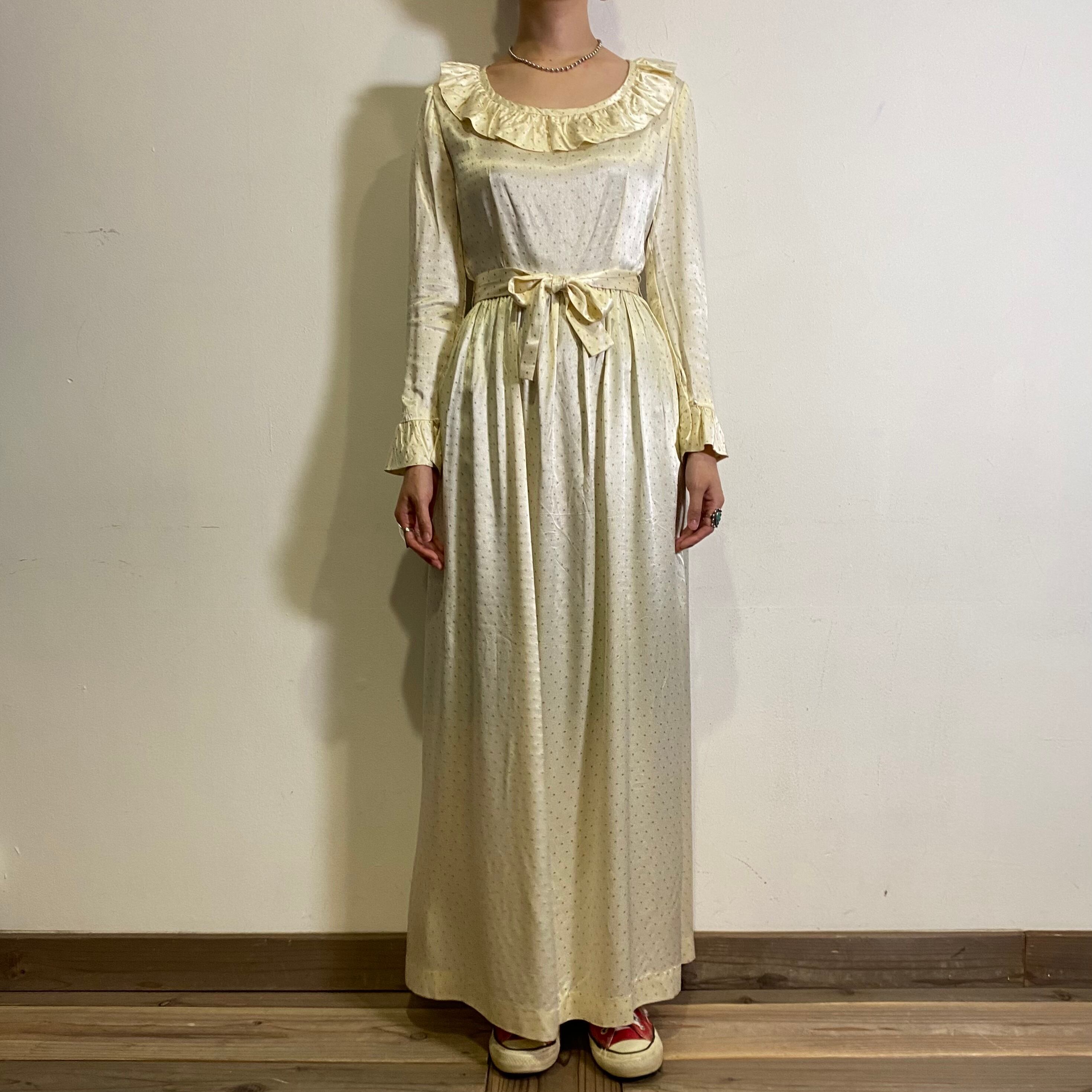 小さな星のピンドットのような総柄が可愛い、70年代のロングワンピースです。