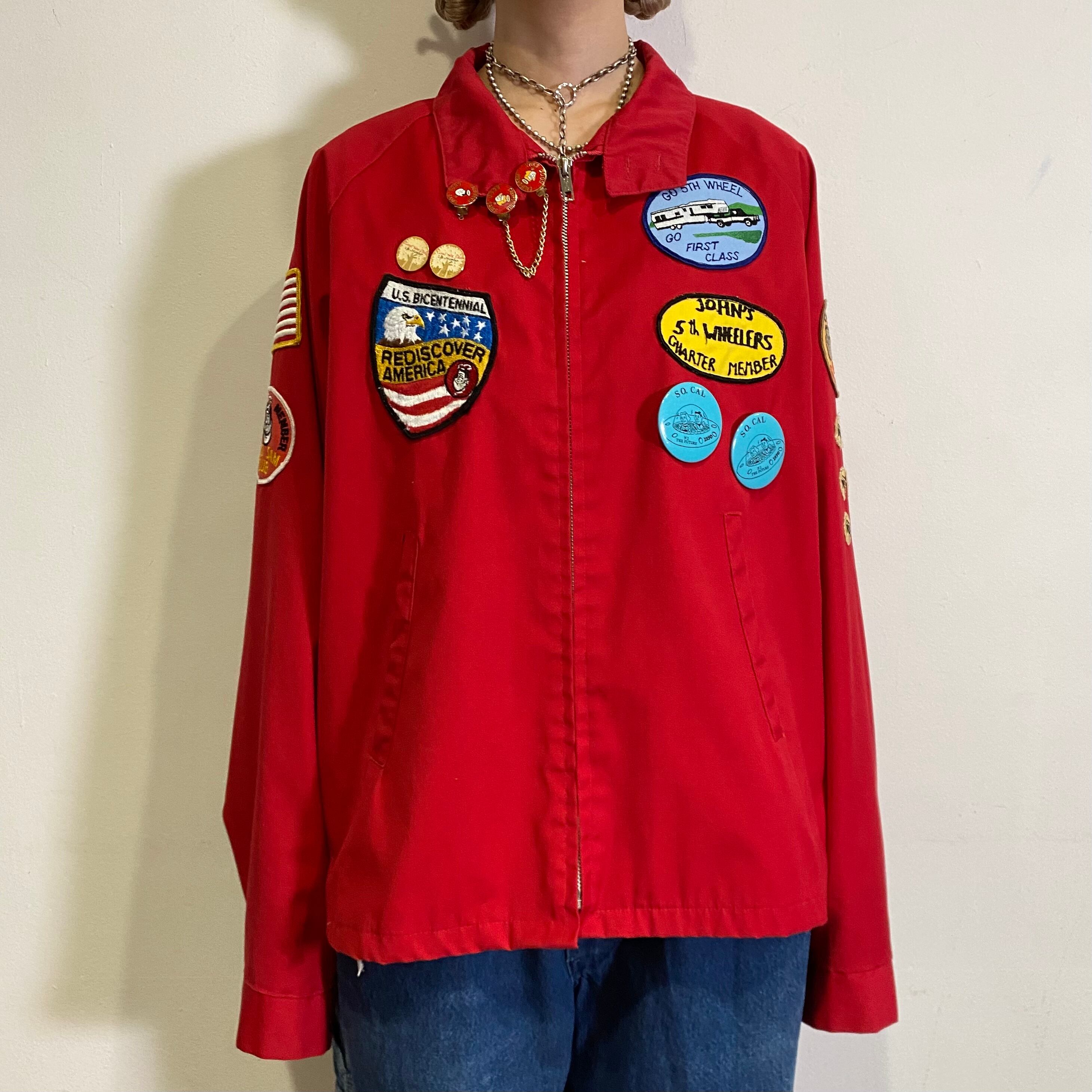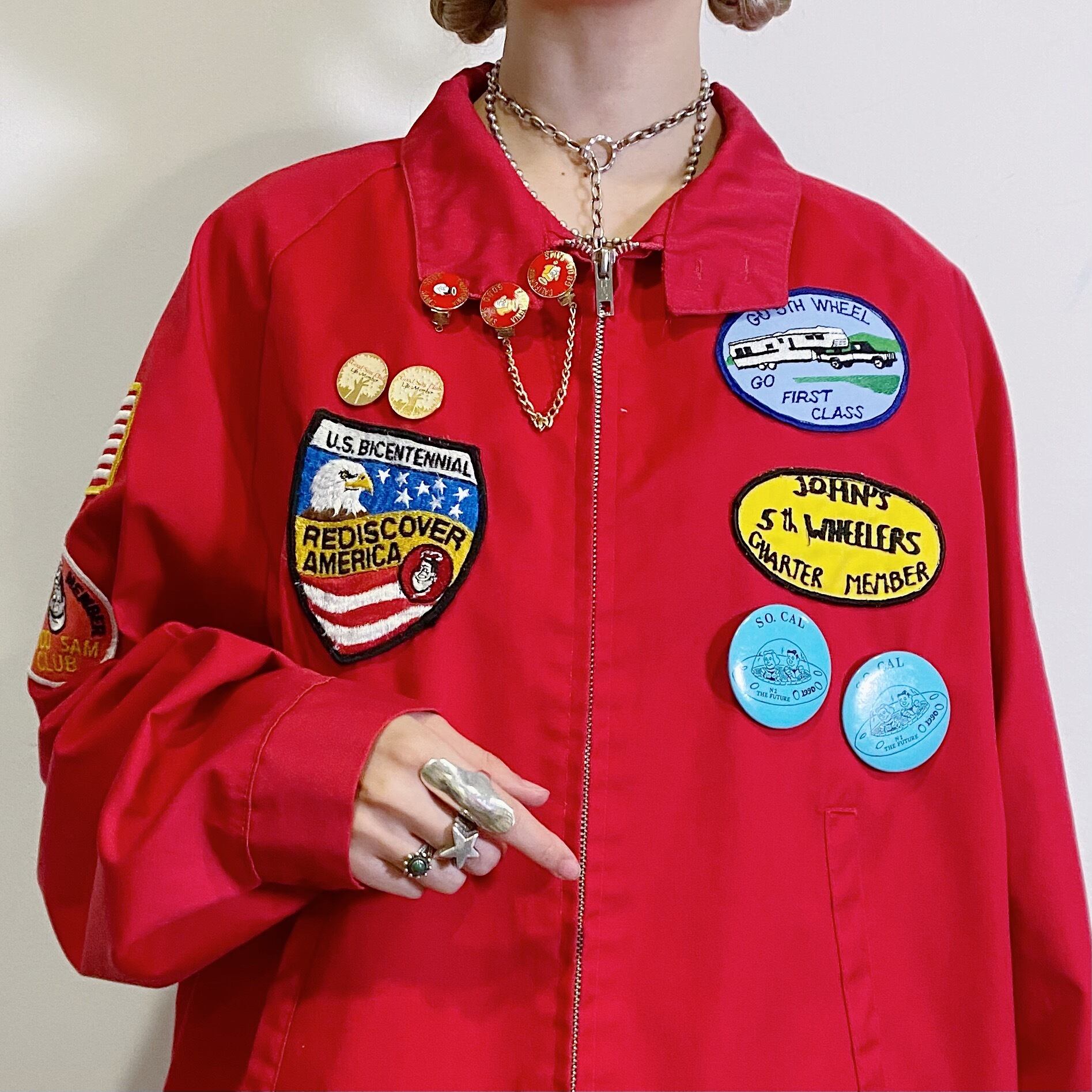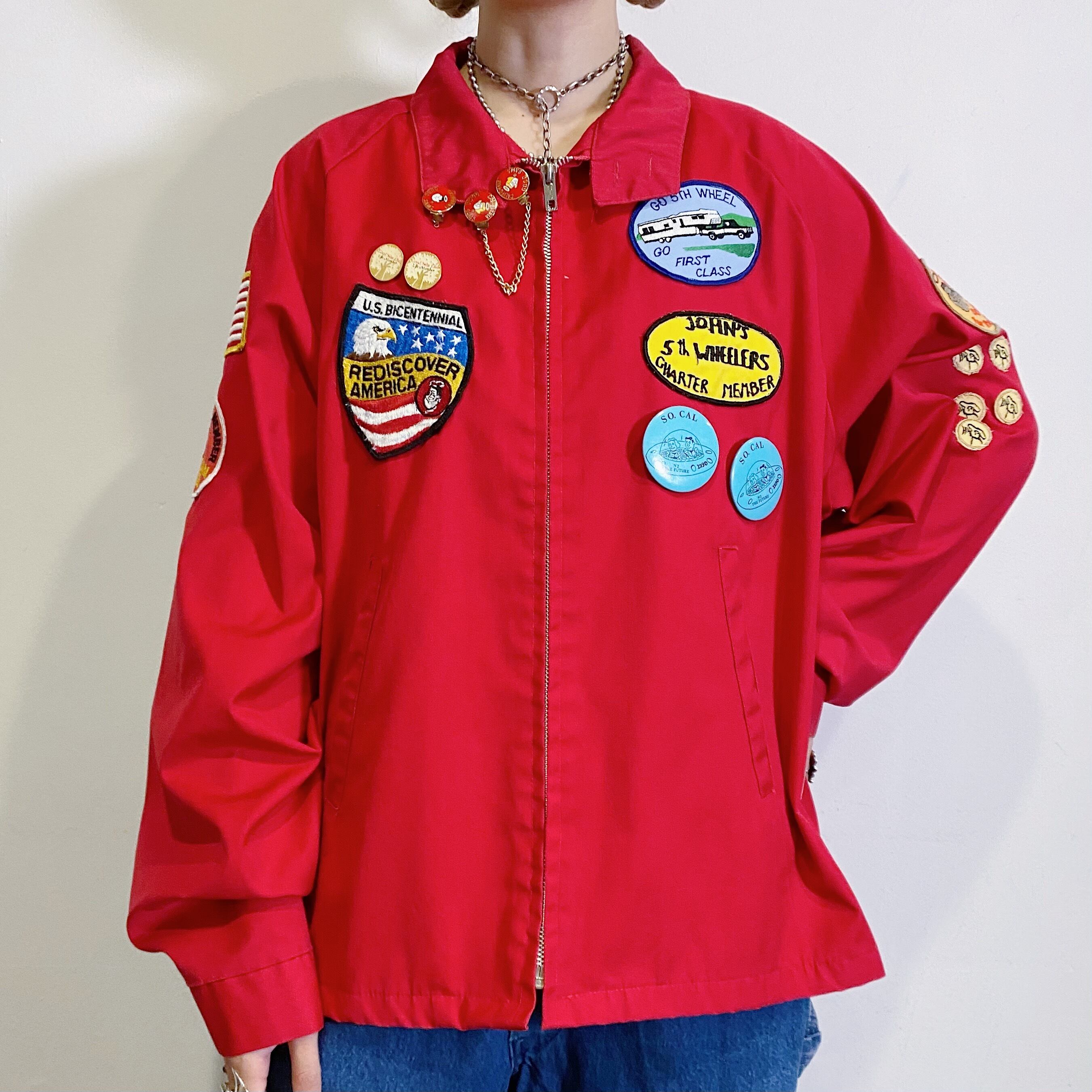 真っ赤なボディにいろんなワッペンやピンズ・缶バッジが付いたとても豪華な、60年代のジャケットです。