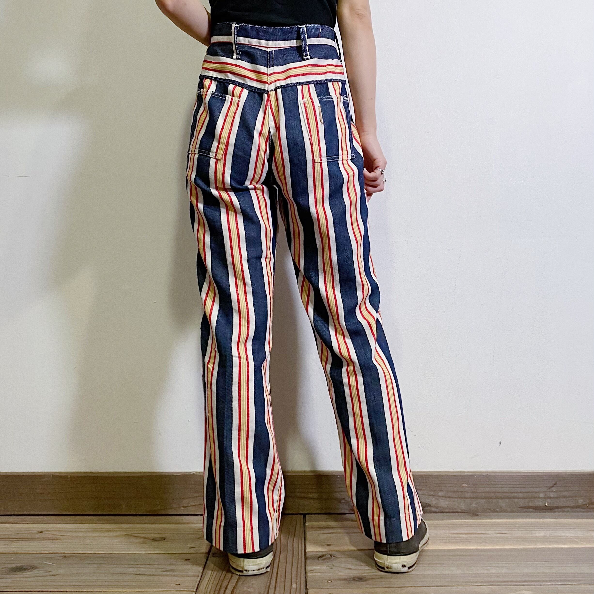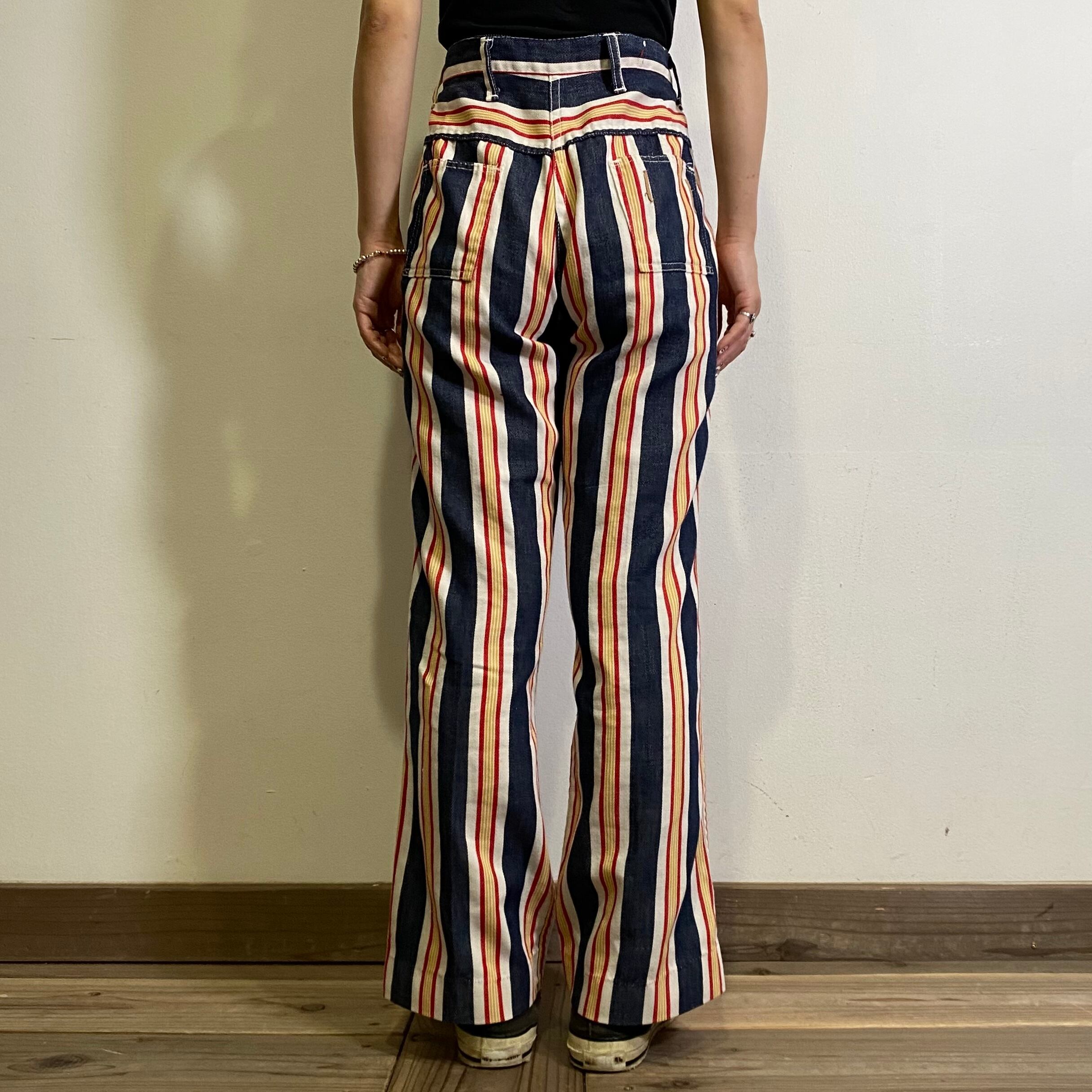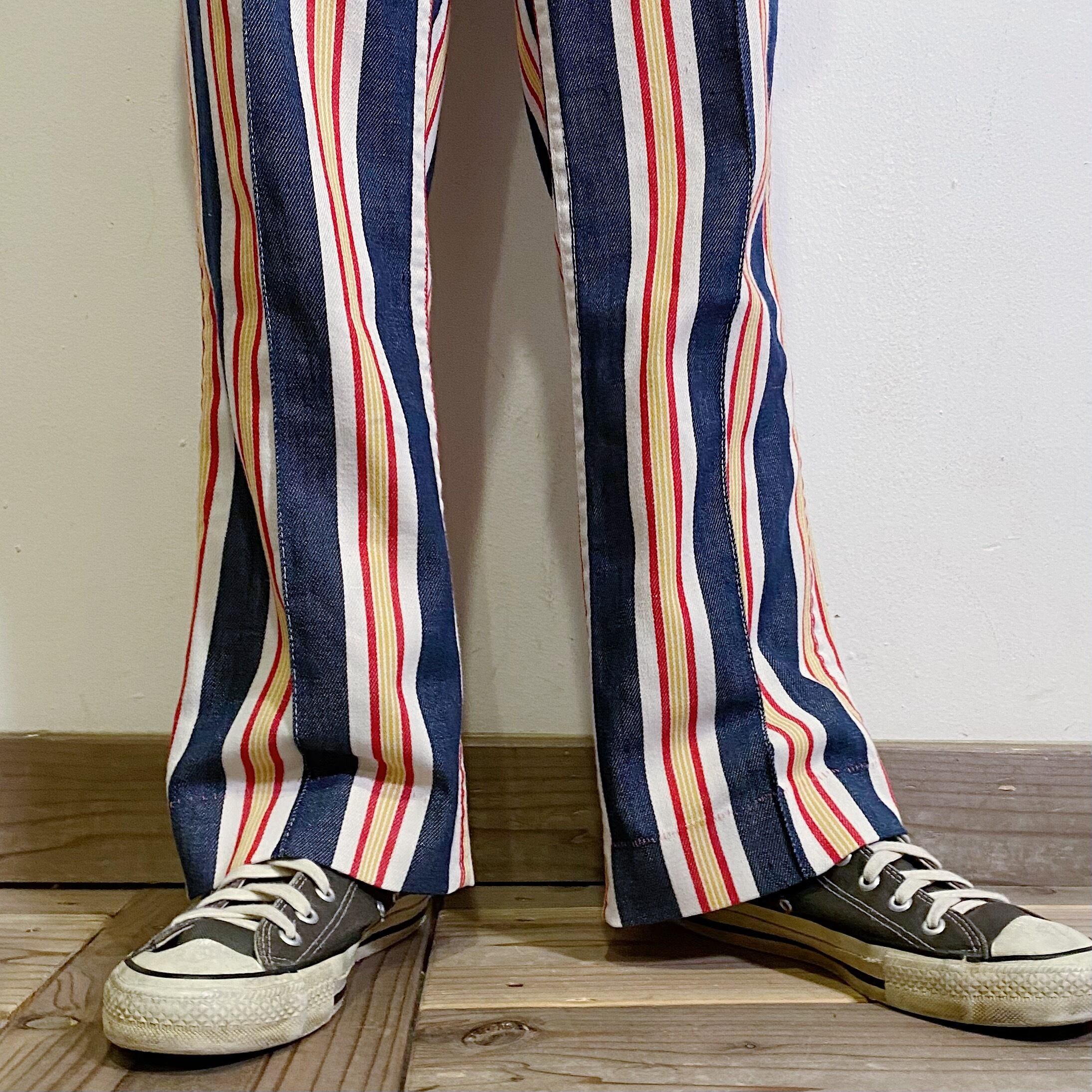 ネイビー・レッド・イエローカラーのストライプが最高に可愛い、60~70年代"H bar C"のフレアパンツです。