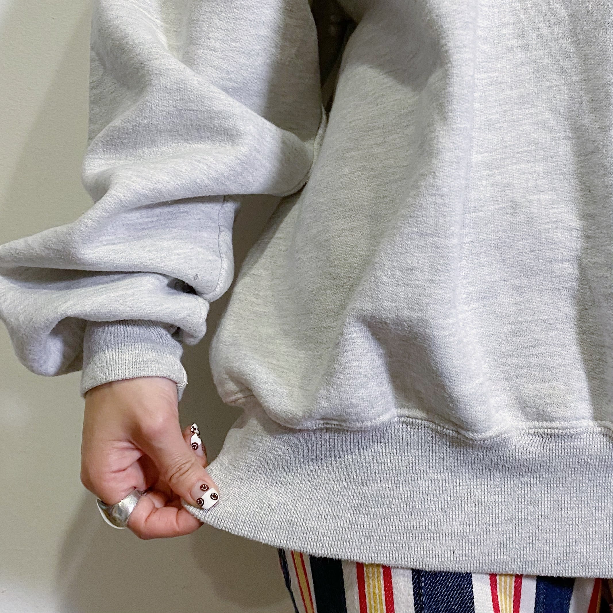 薄めの杢グレーにARMYプリントが可愛い、80年代のスウェットです。