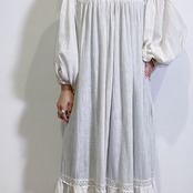 胸元のクロシェ編みやぽわんとしたお袖、裾のレースやティアードデザインがとってもキュート。
