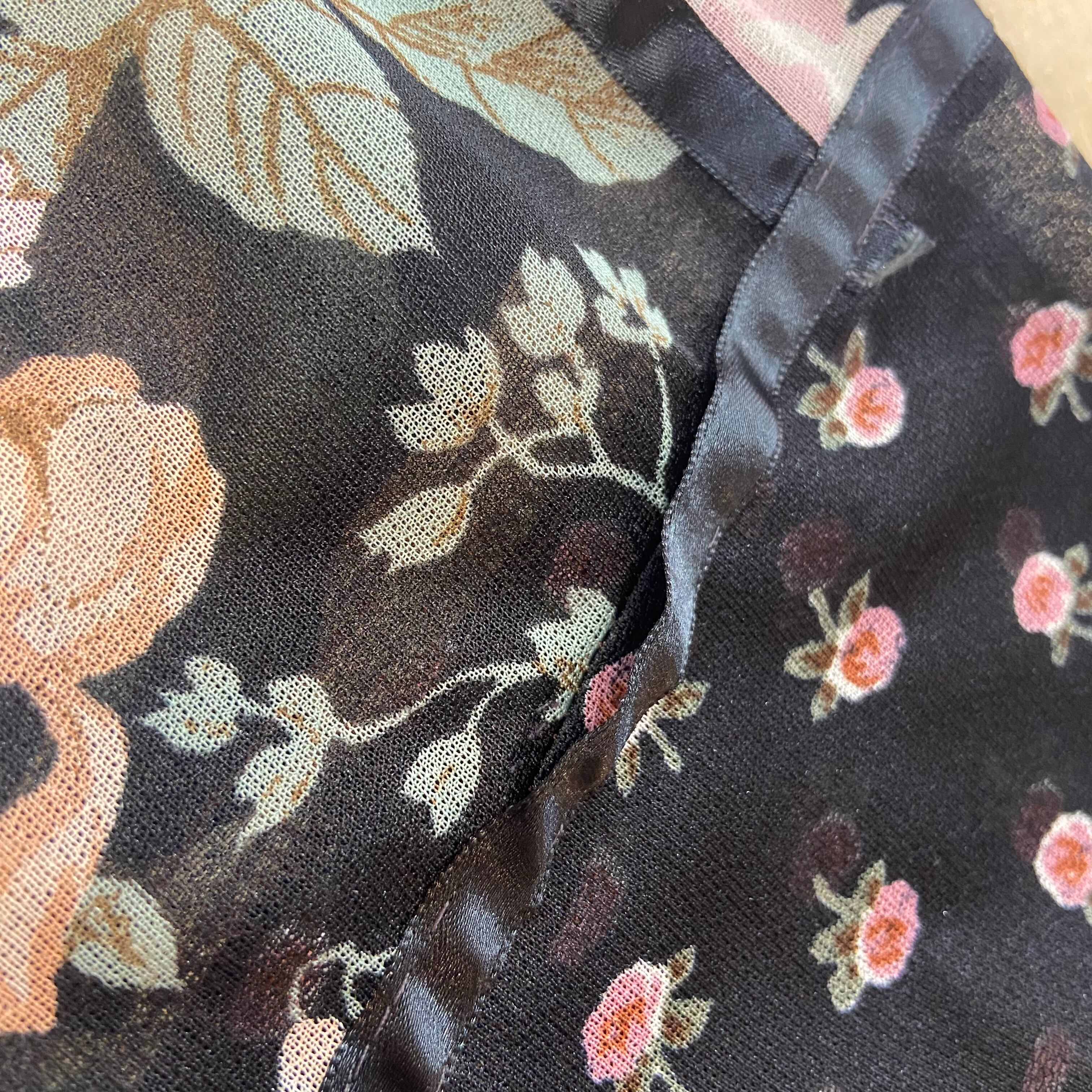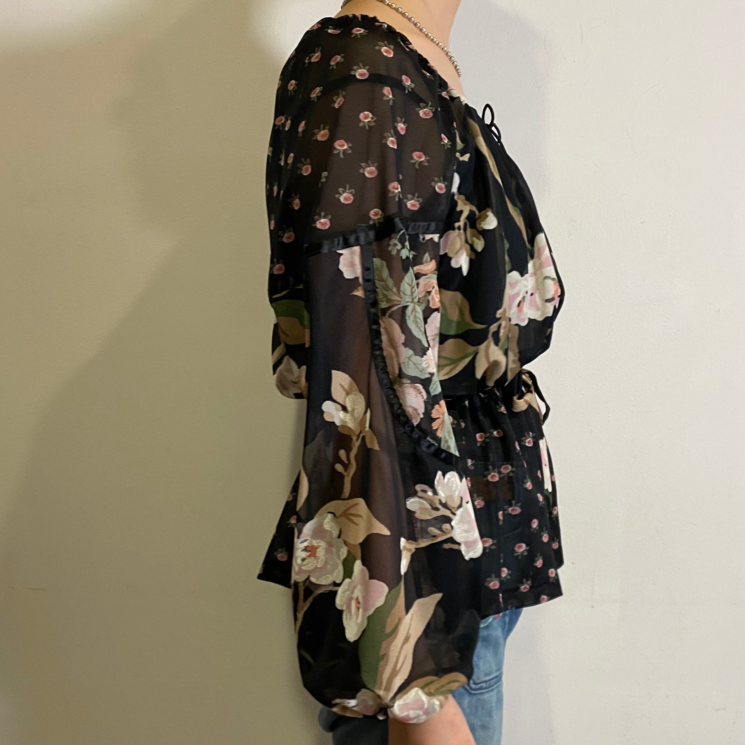 70s black flower printed tunic top