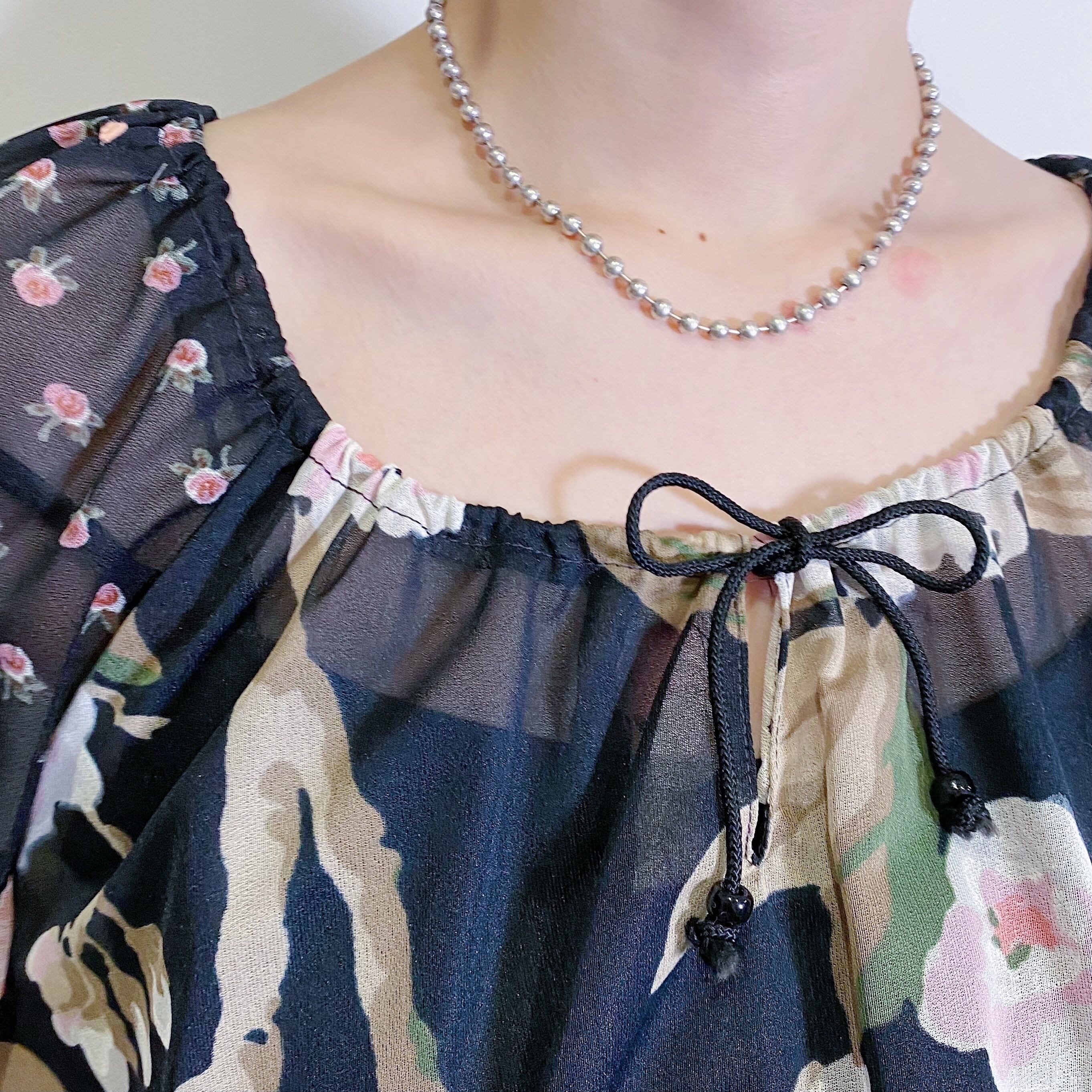 ブラックベースで着こなしやすく、透け感のあるシアーな素材感がとってもキュート。