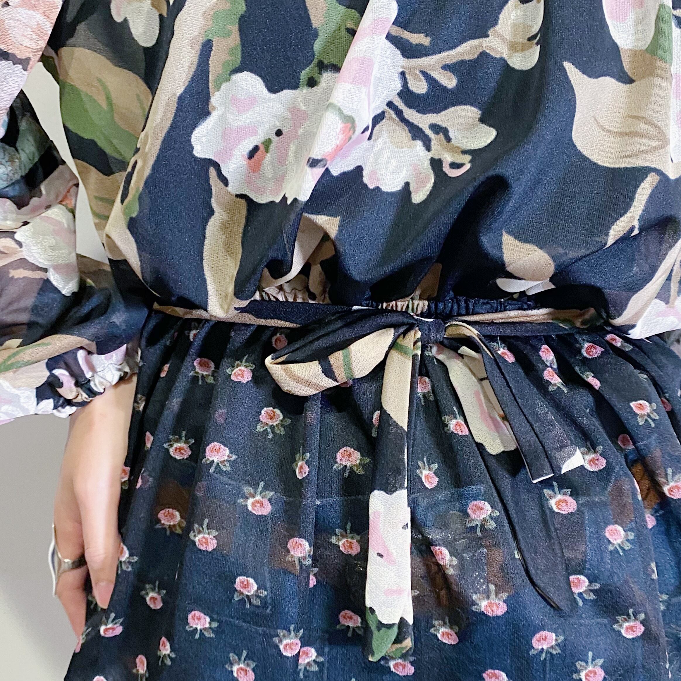 いろいろなパターンの花柄切り替えが可愛い、70年代のチュニックトップです。