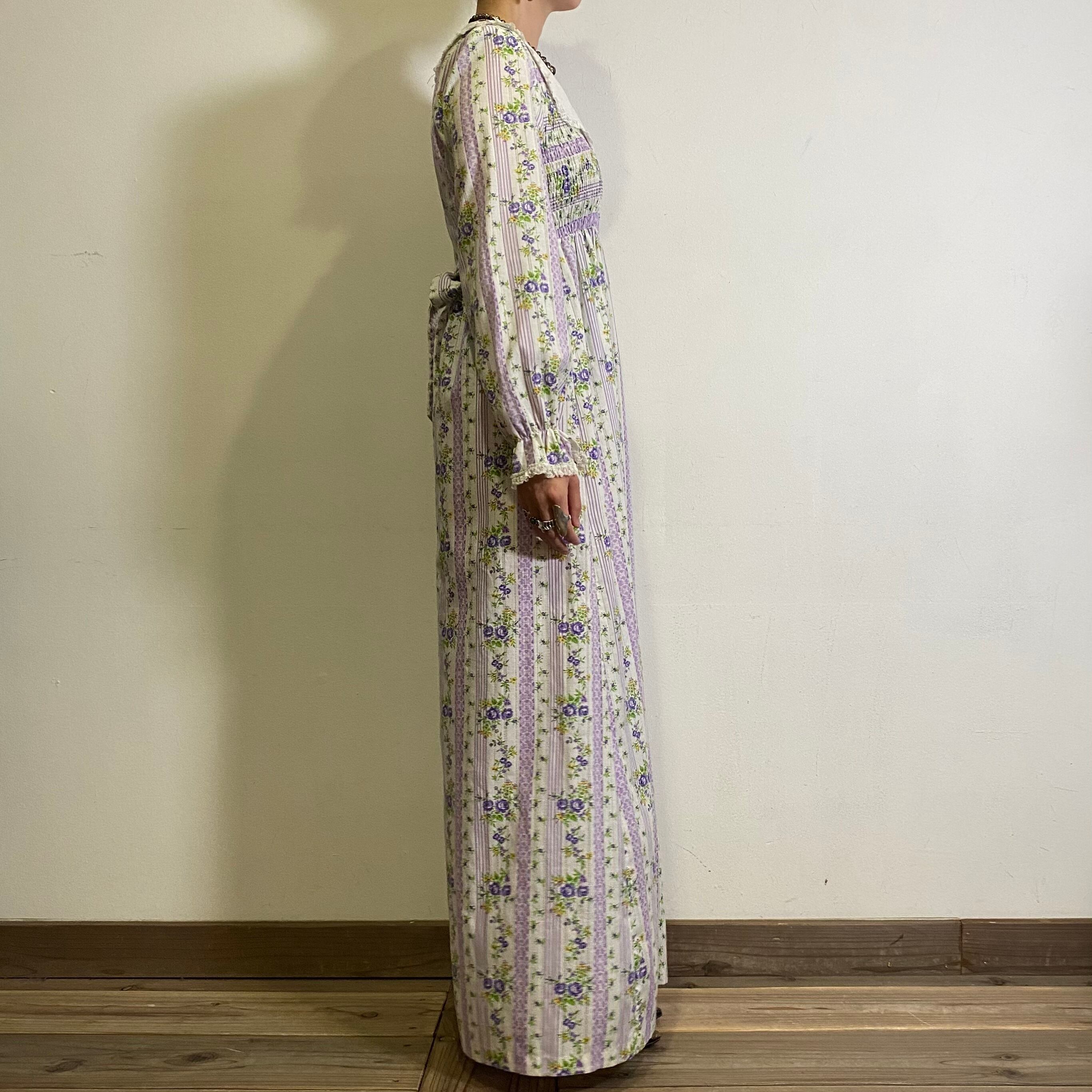70s white and purple flower printed long dress