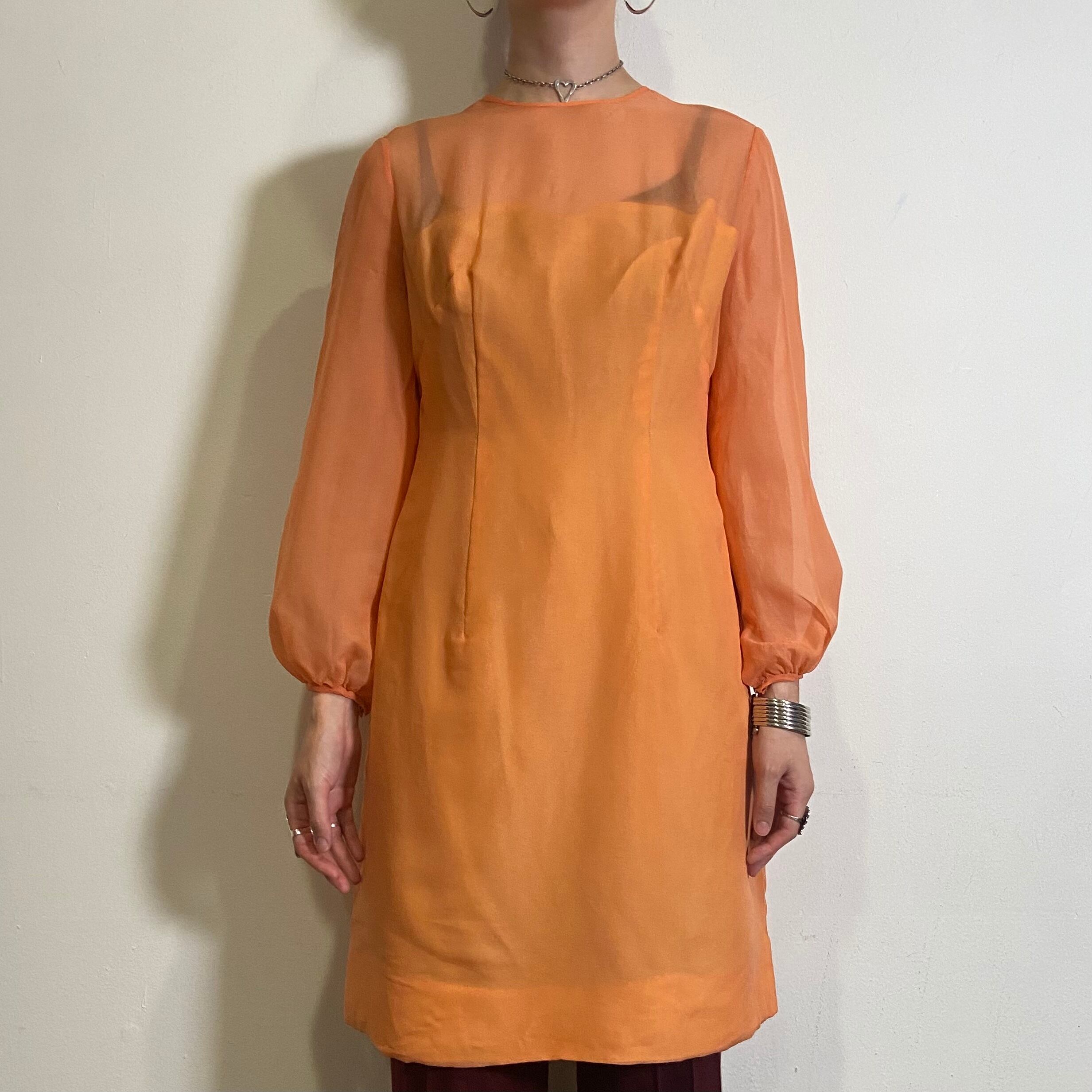オレンジの色合いとシアーな素材感が可愛い、70年代のミニワンピースです。