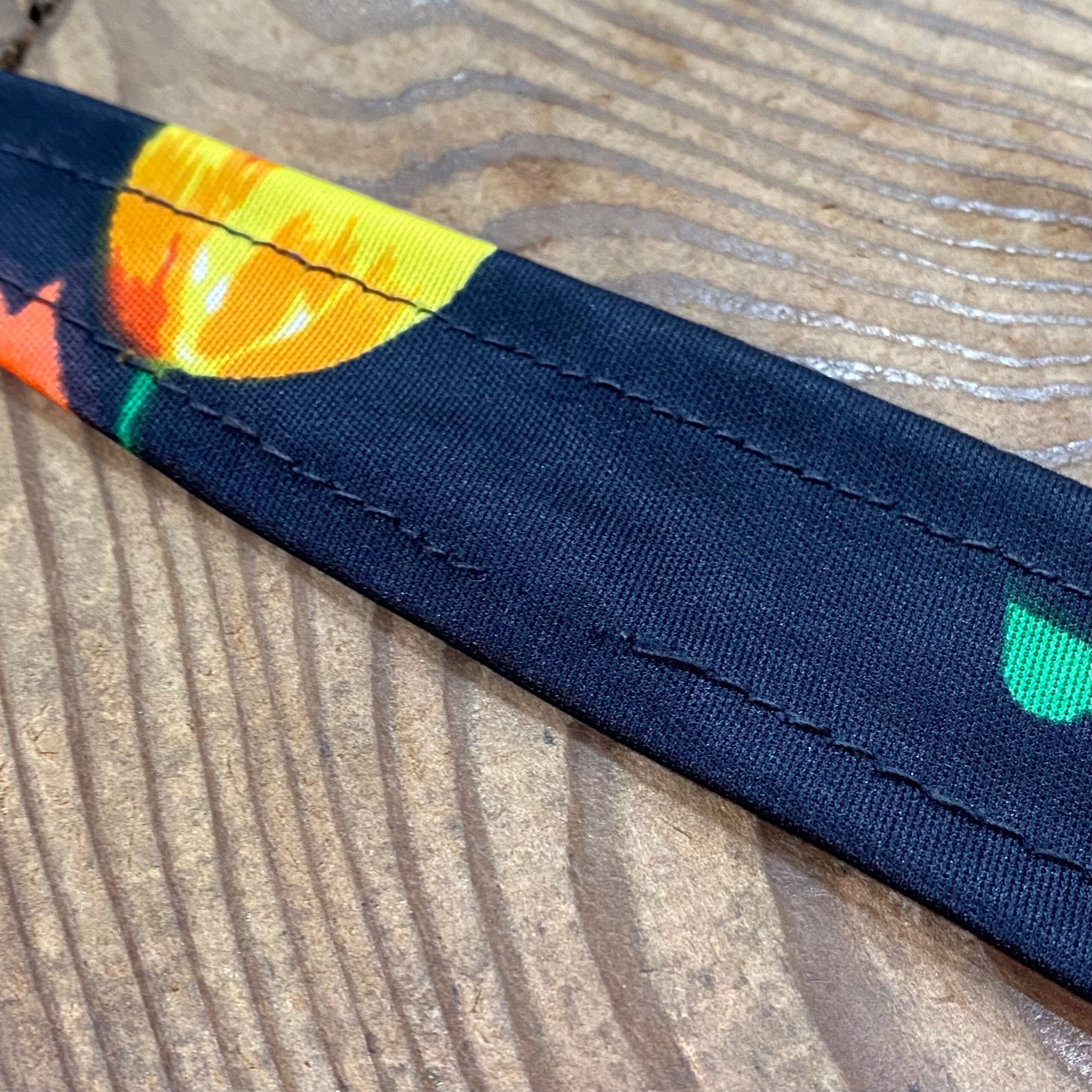 ブラックベースにカラフルな花柄が映える、70年代のノースリーブトップスです。