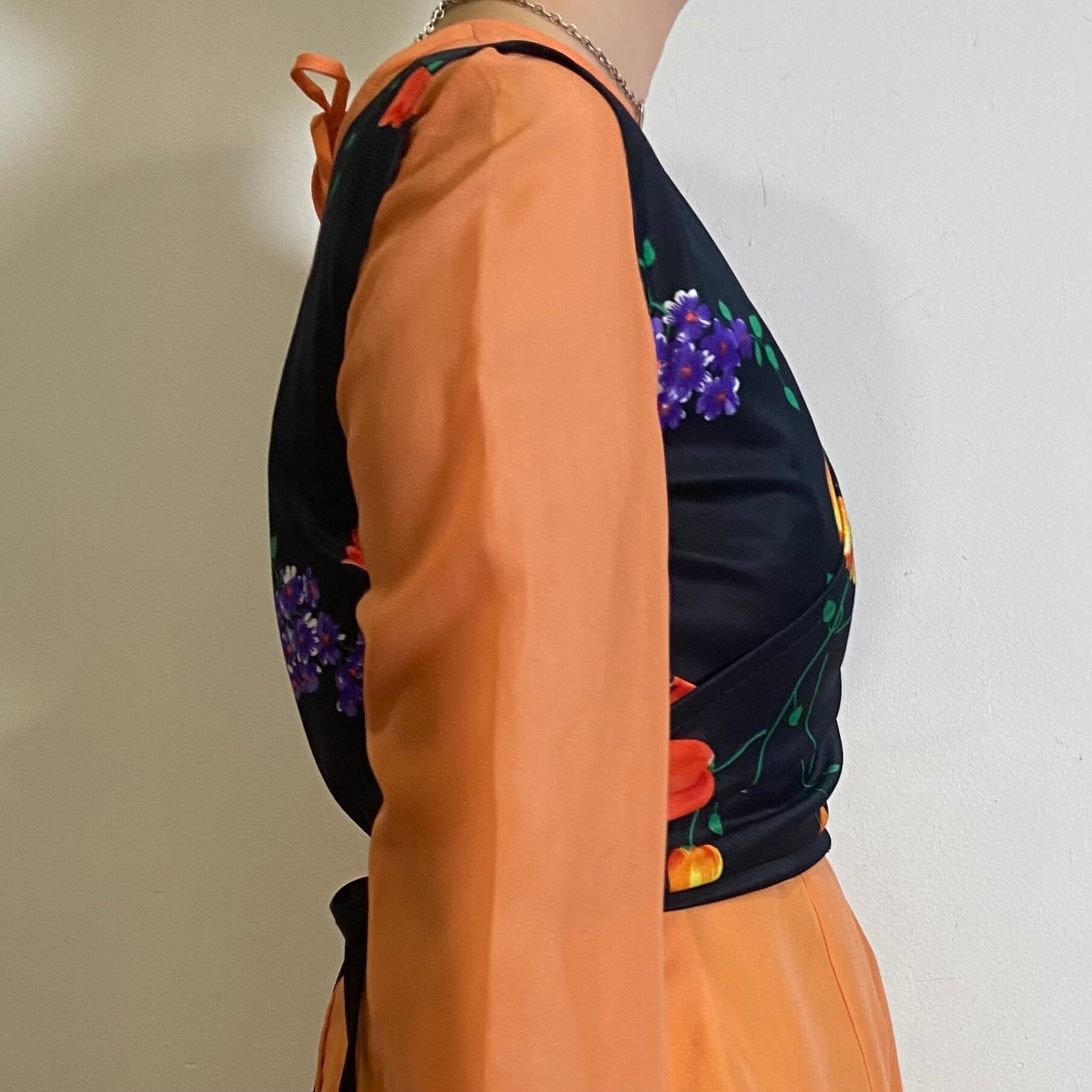 70s black flower printed 3way top