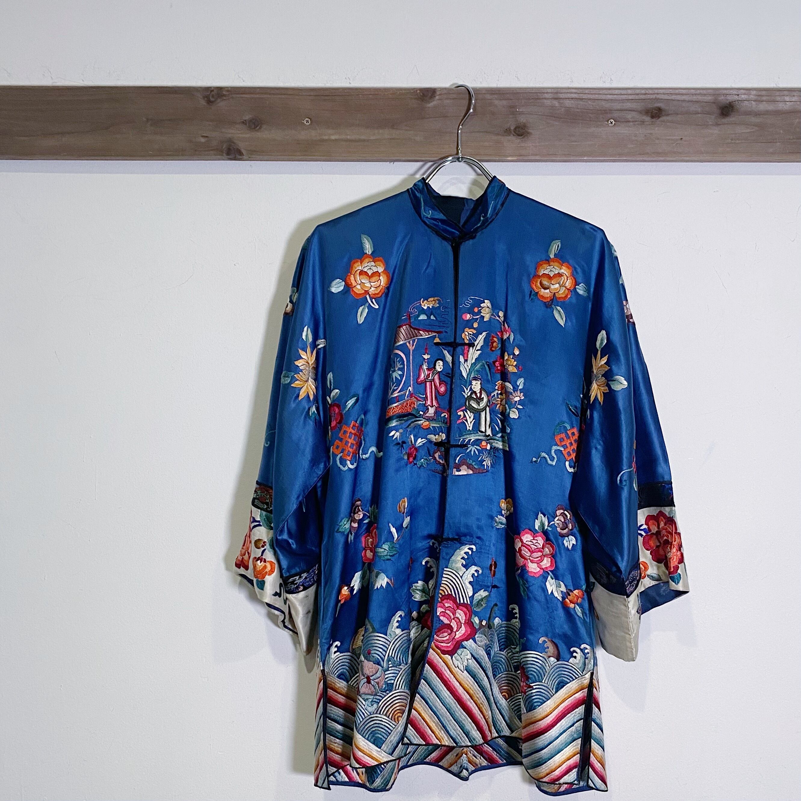 Navy China silk embroidery shirt