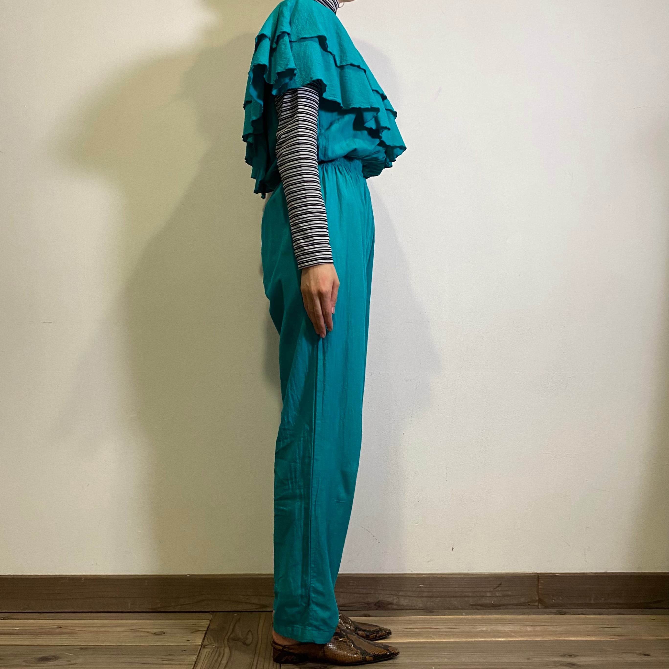 80s green frill jump suits