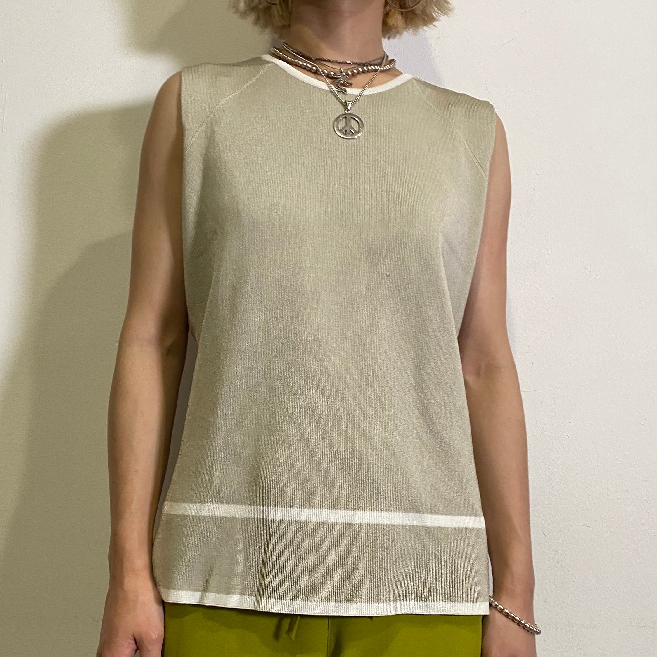 使い勝手の良さそうな、スモーキーグレーのノースリーブトップスです。