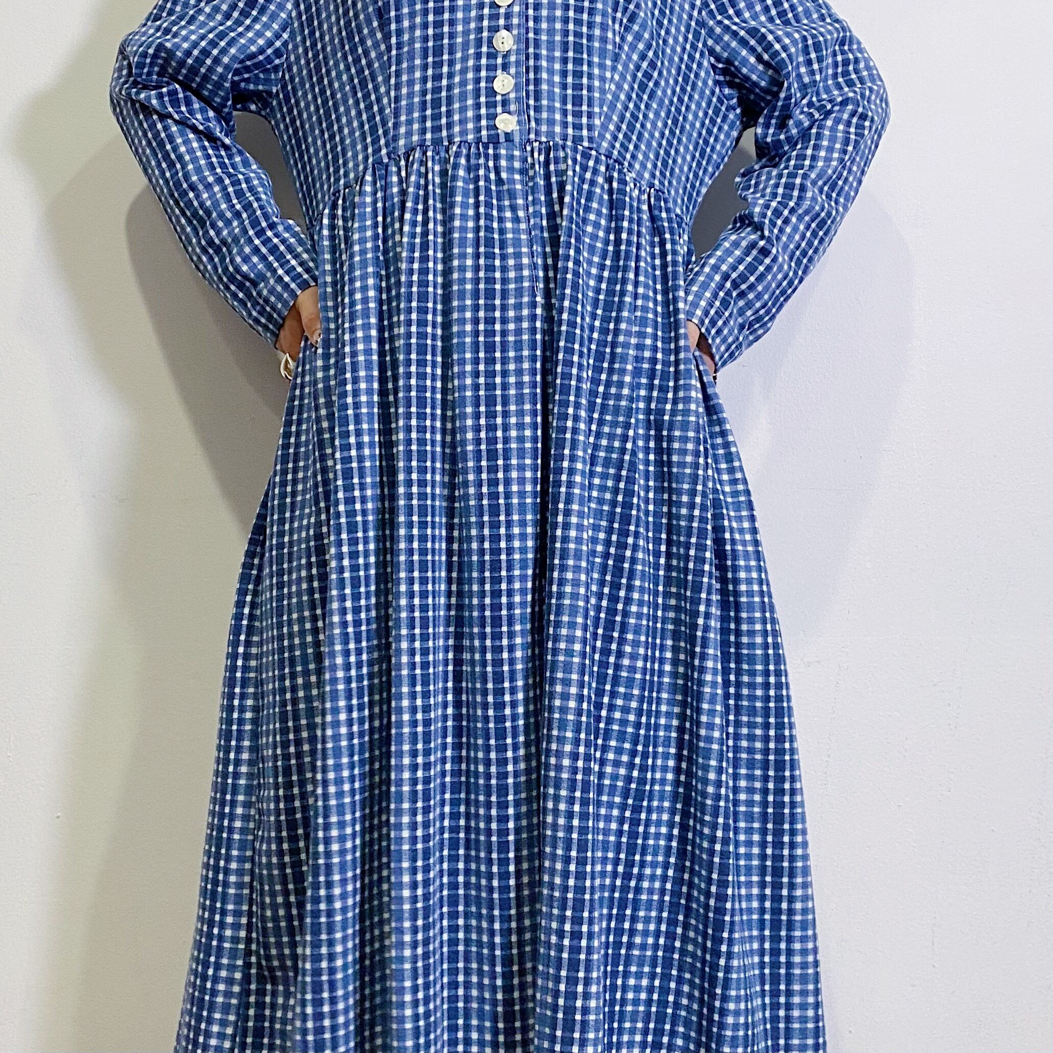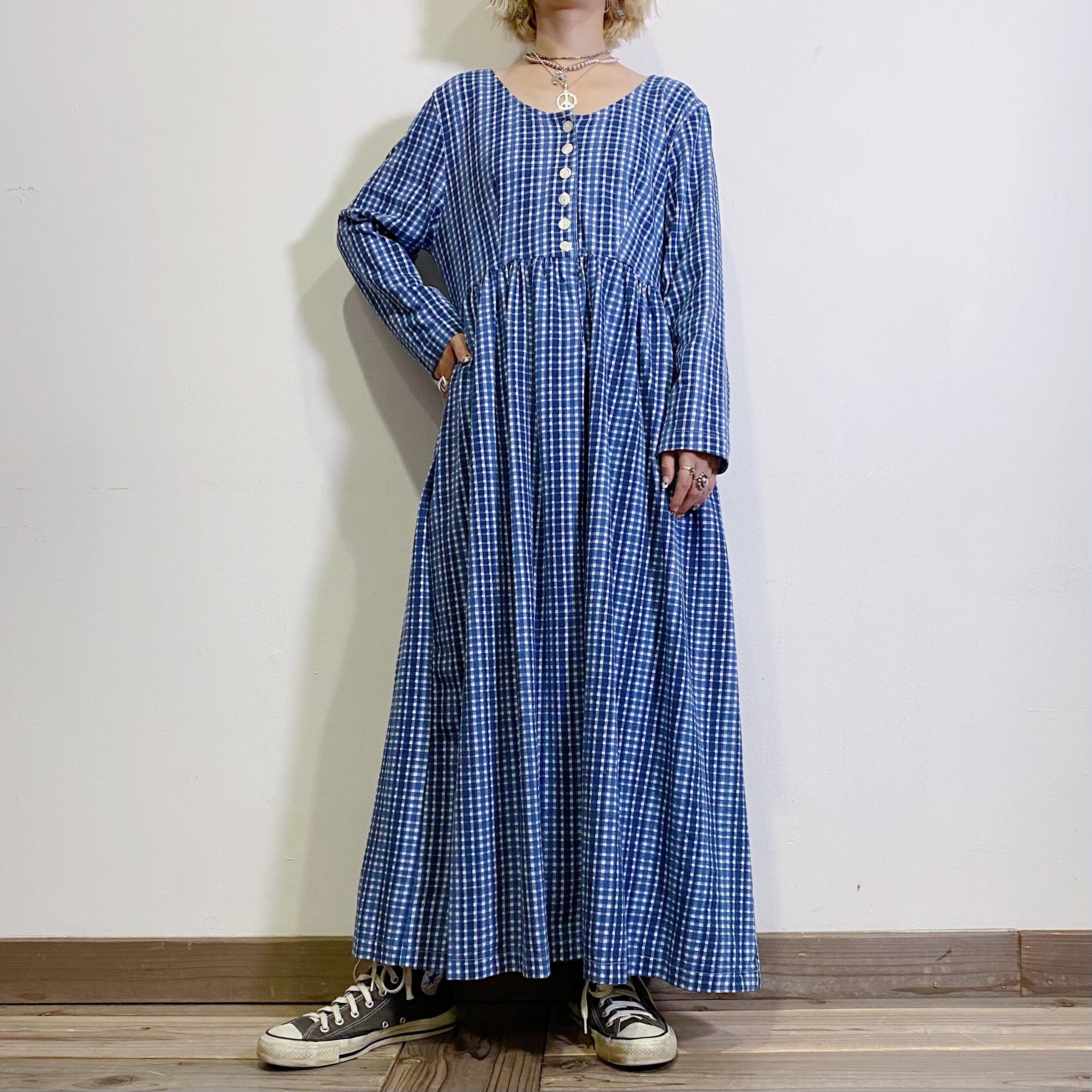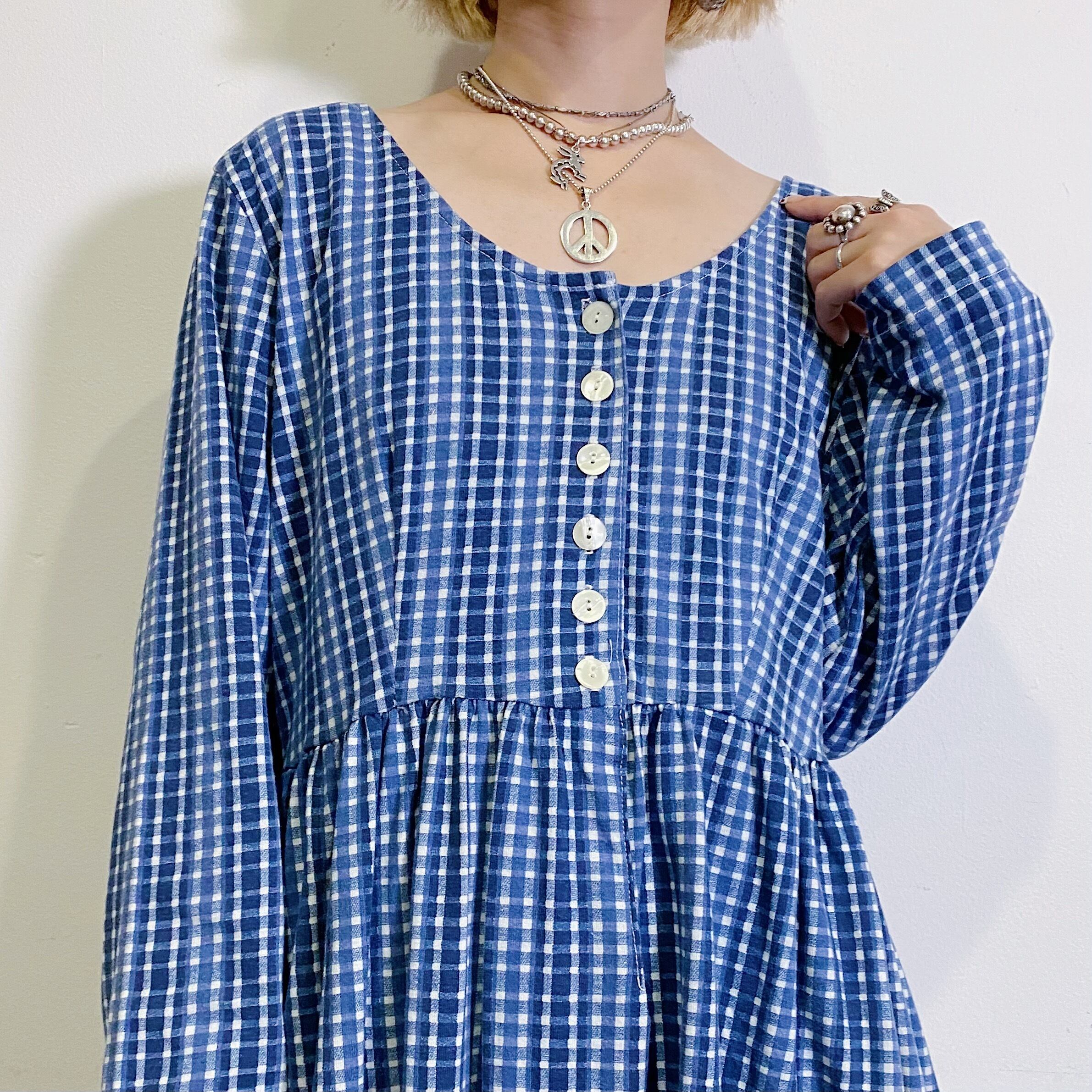 ホワイトとブルーのギンガムチェックがキュートな、80〜90年代のワンピースです。