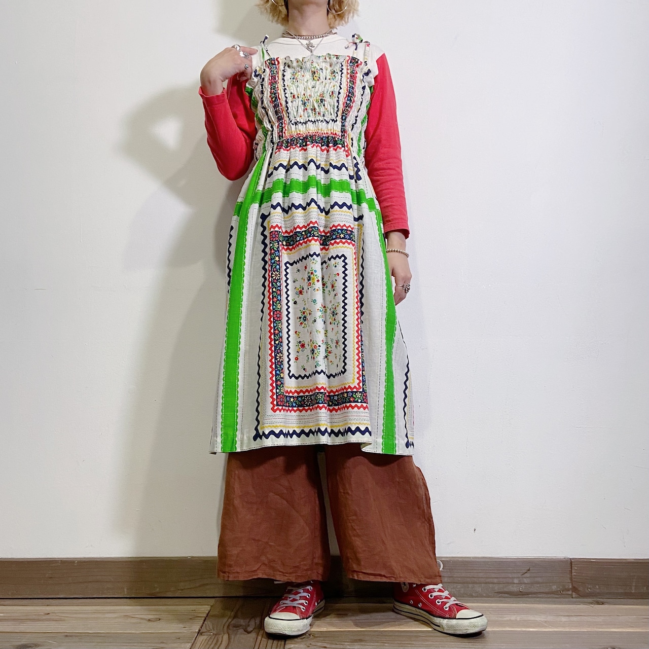 パンツメインの着こなしはもちろん、着用写真のような丈の短いワンピースの下に重ねたスタイルもおすすめ。