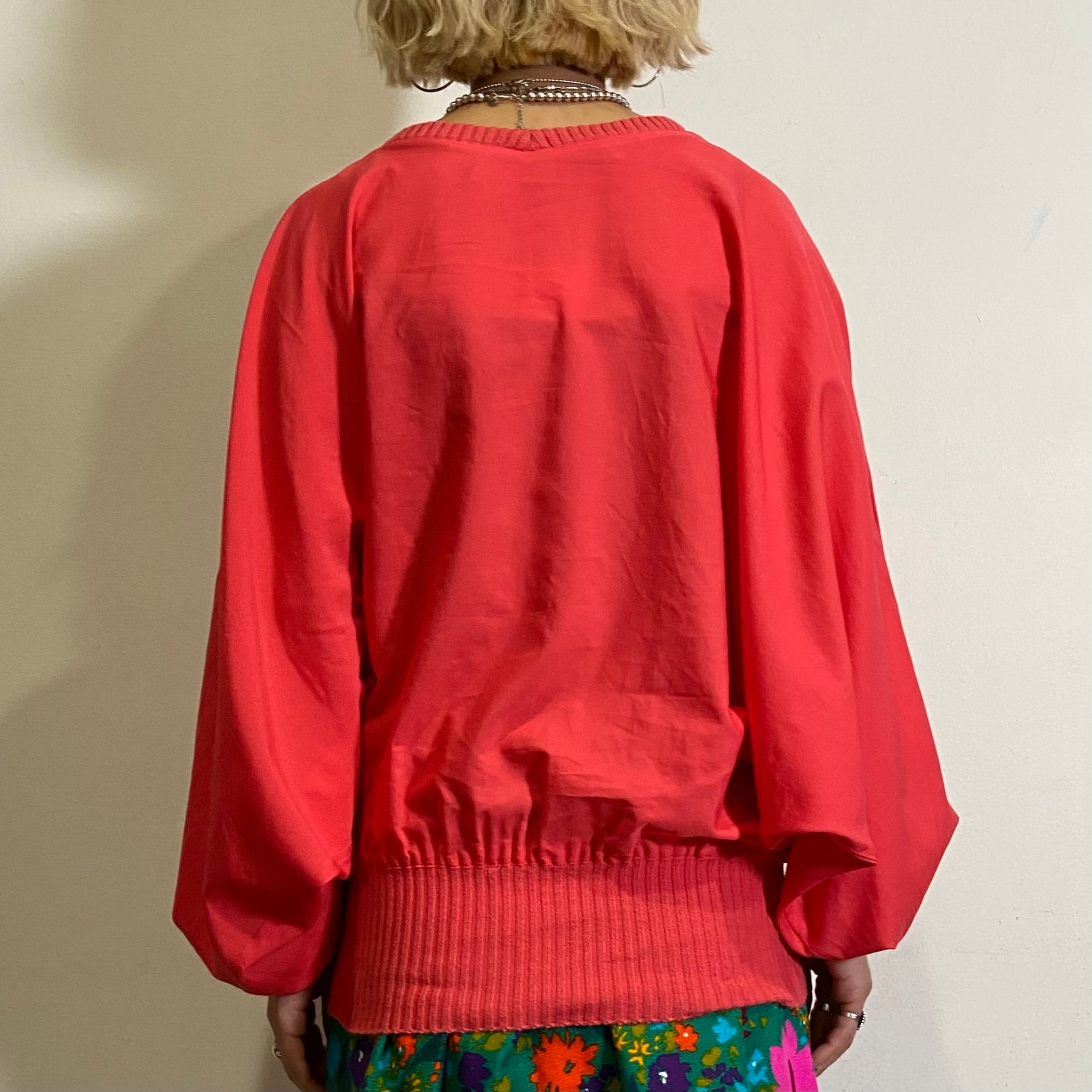 鮮やかなピンクカラーにドルマンスリーブやリブもポイントになった一枚。