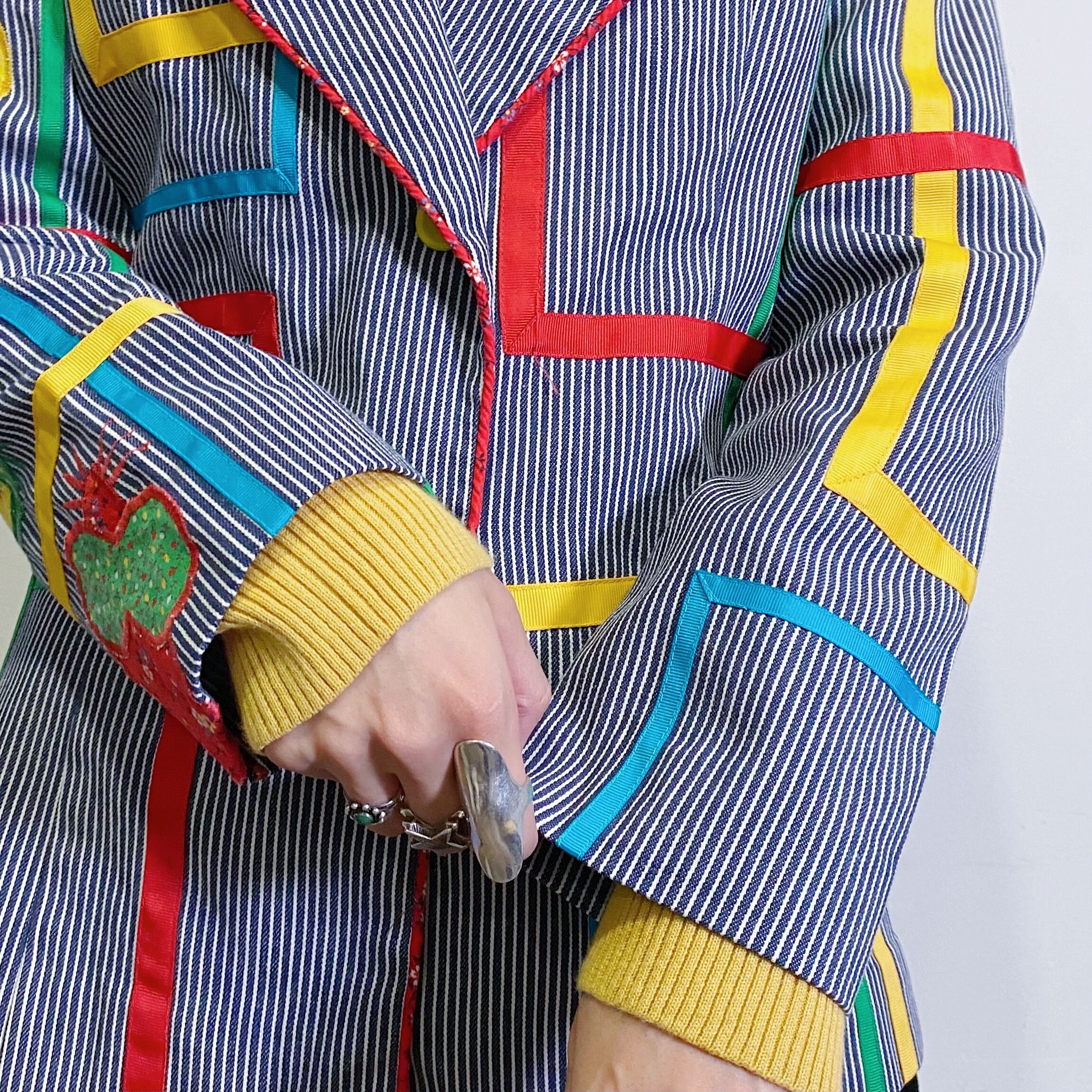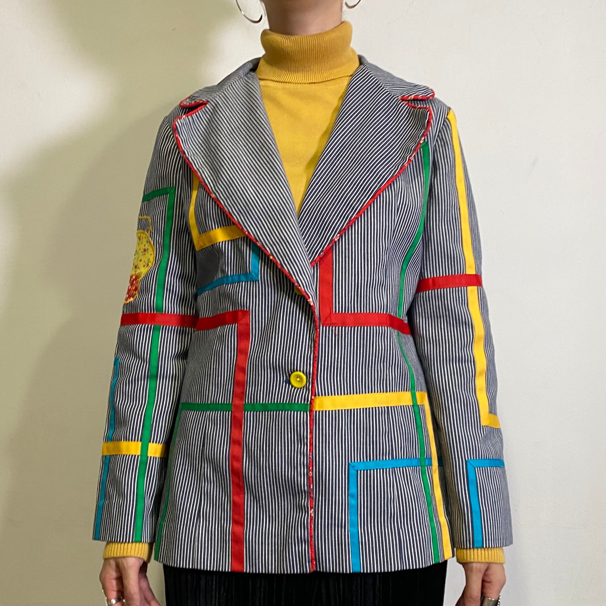 ヒッコリーにカラフルなテープデザインが可愛い、70年代のジャケットです。