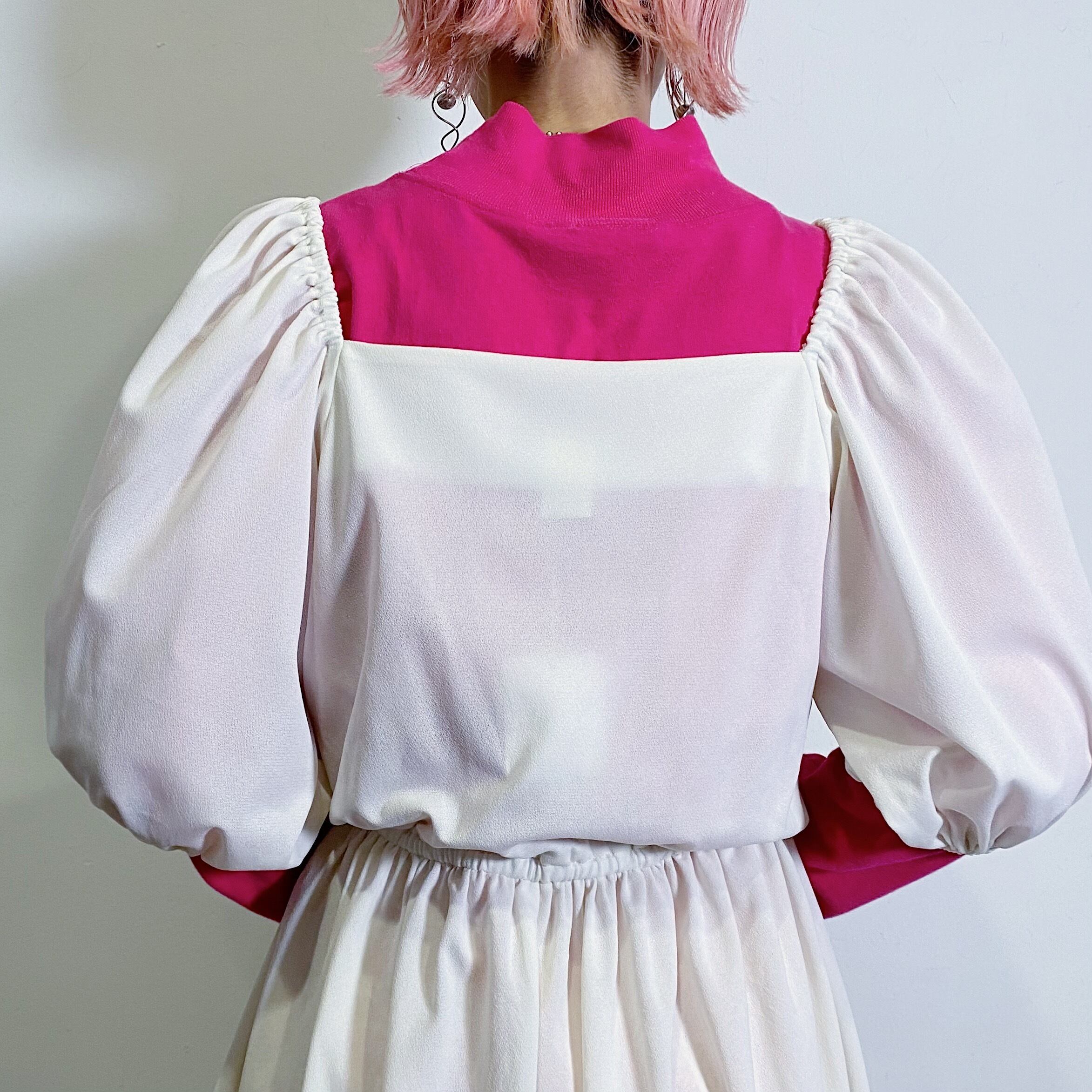 スクエアネックにバルーンスリーブ・ウエストがゴムで楽ちんな所など、魅力たっぷりです。