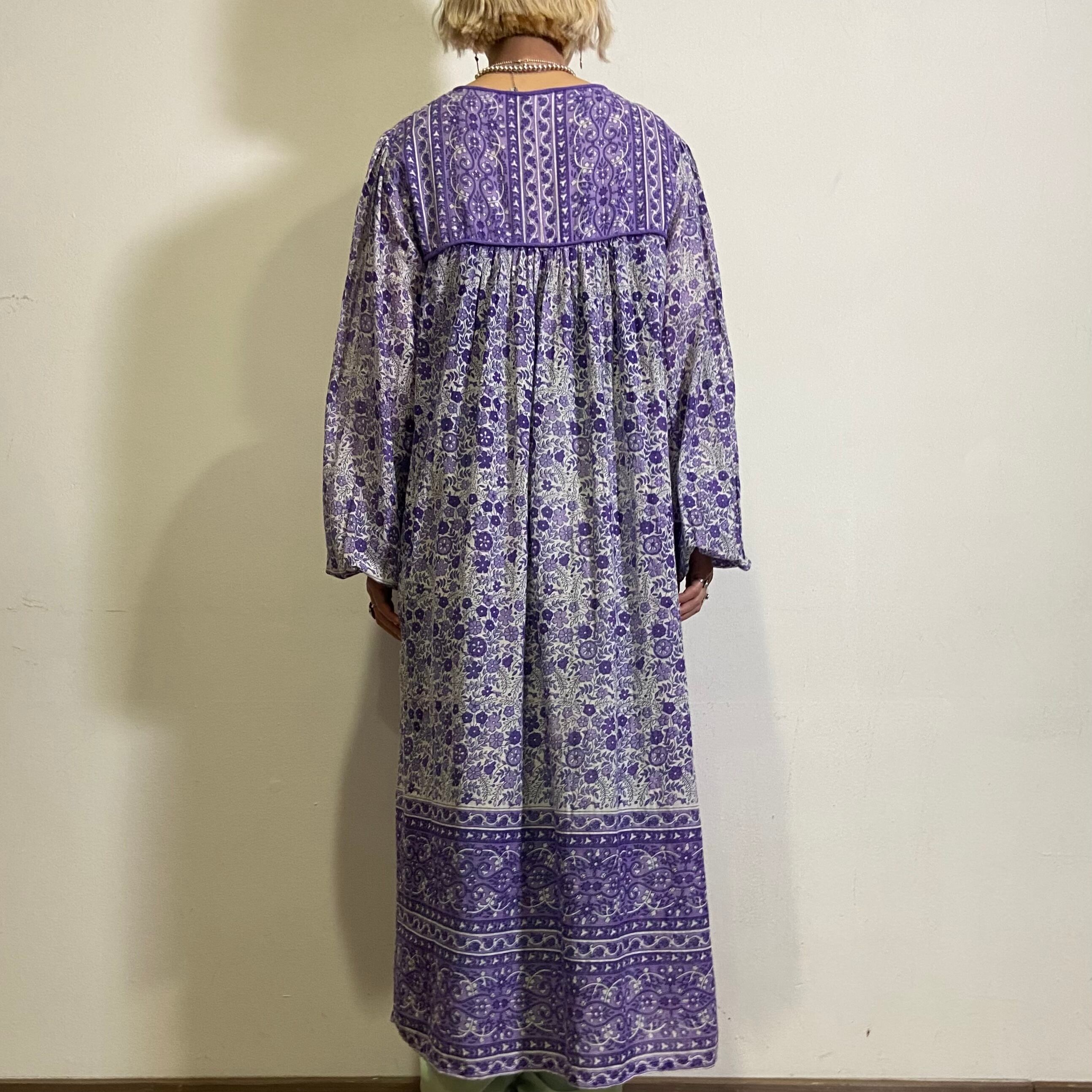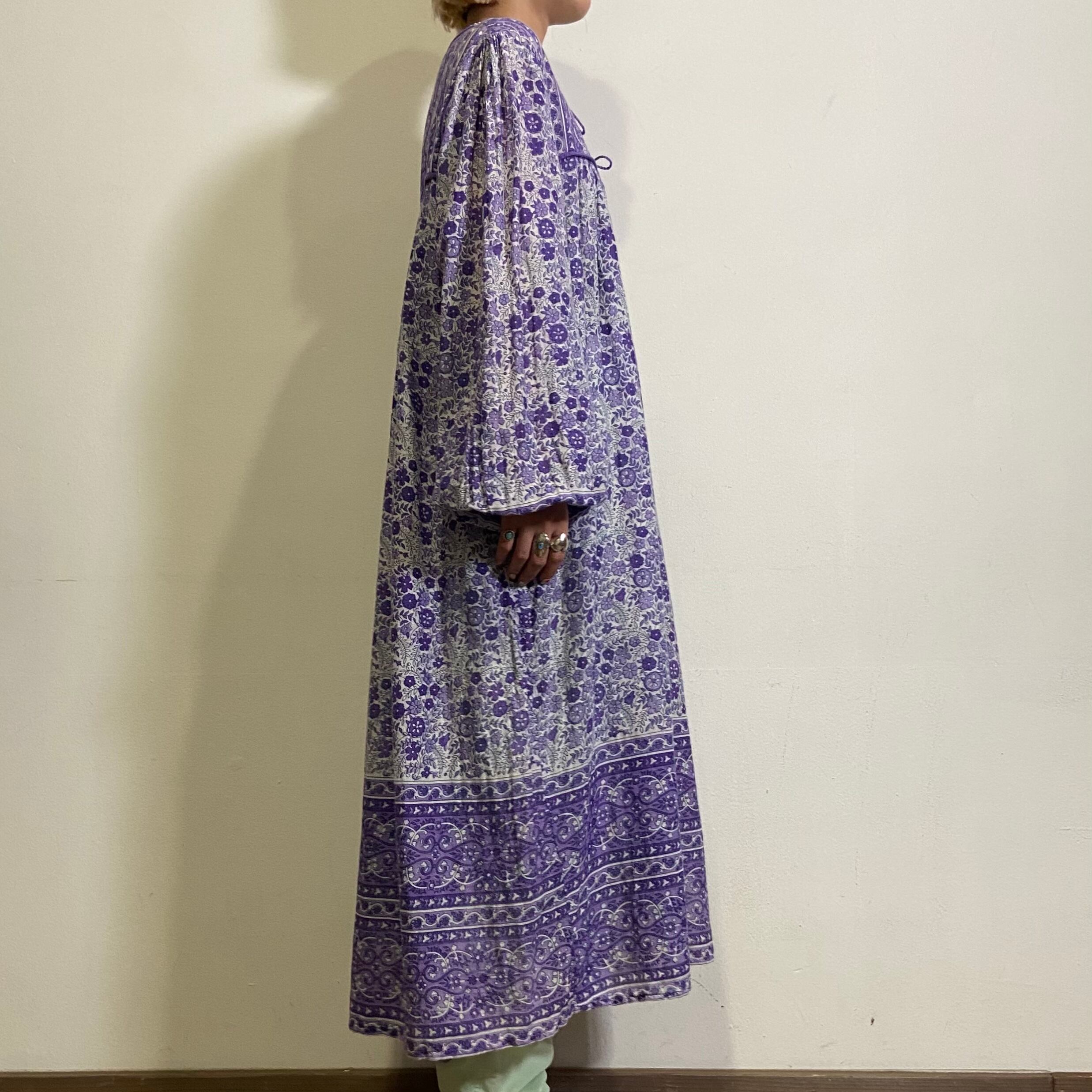 パープルの色合いが可愛い、70年代のインド綿ワンピースです。