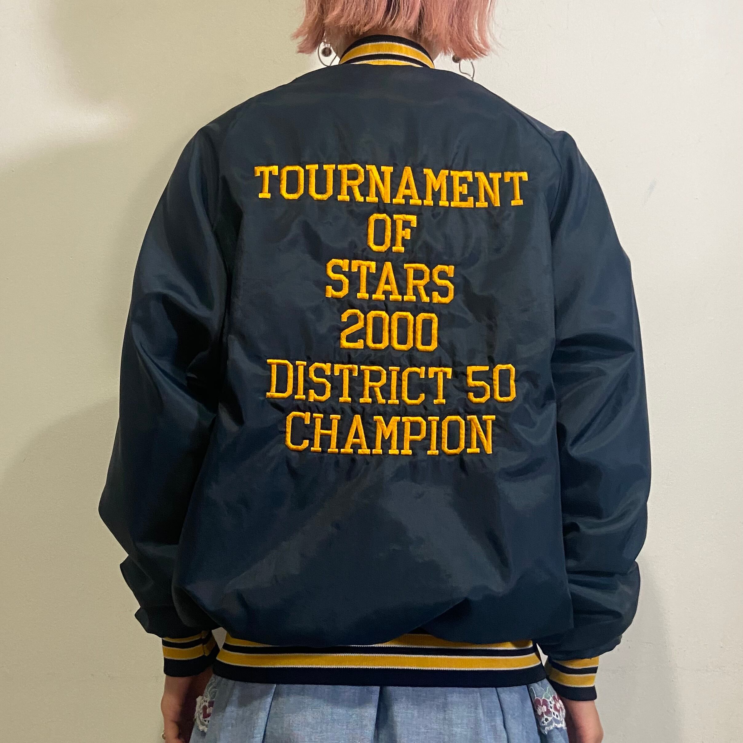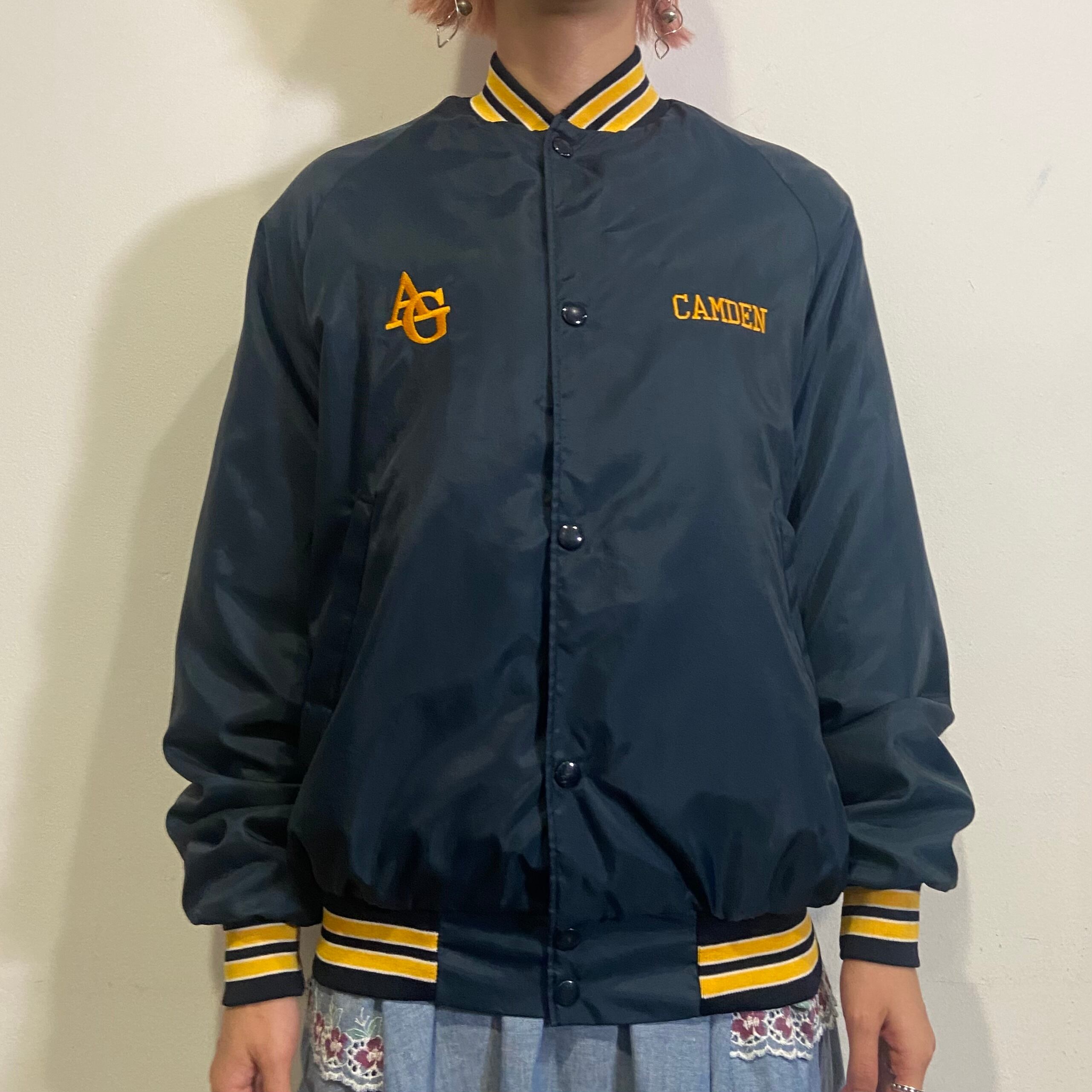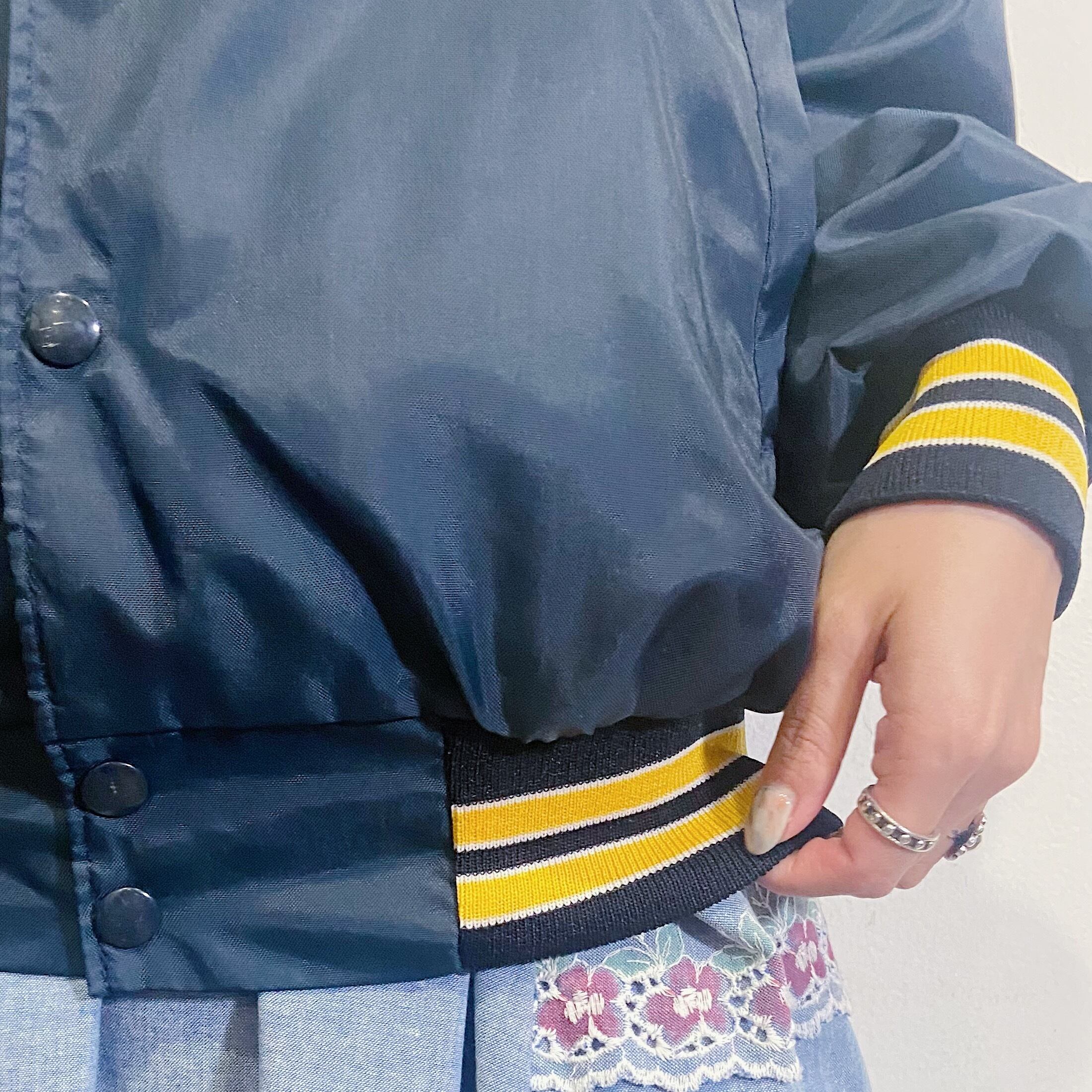 ネイビーとイエローのカラーが可愛い中綿ブルゾンです。